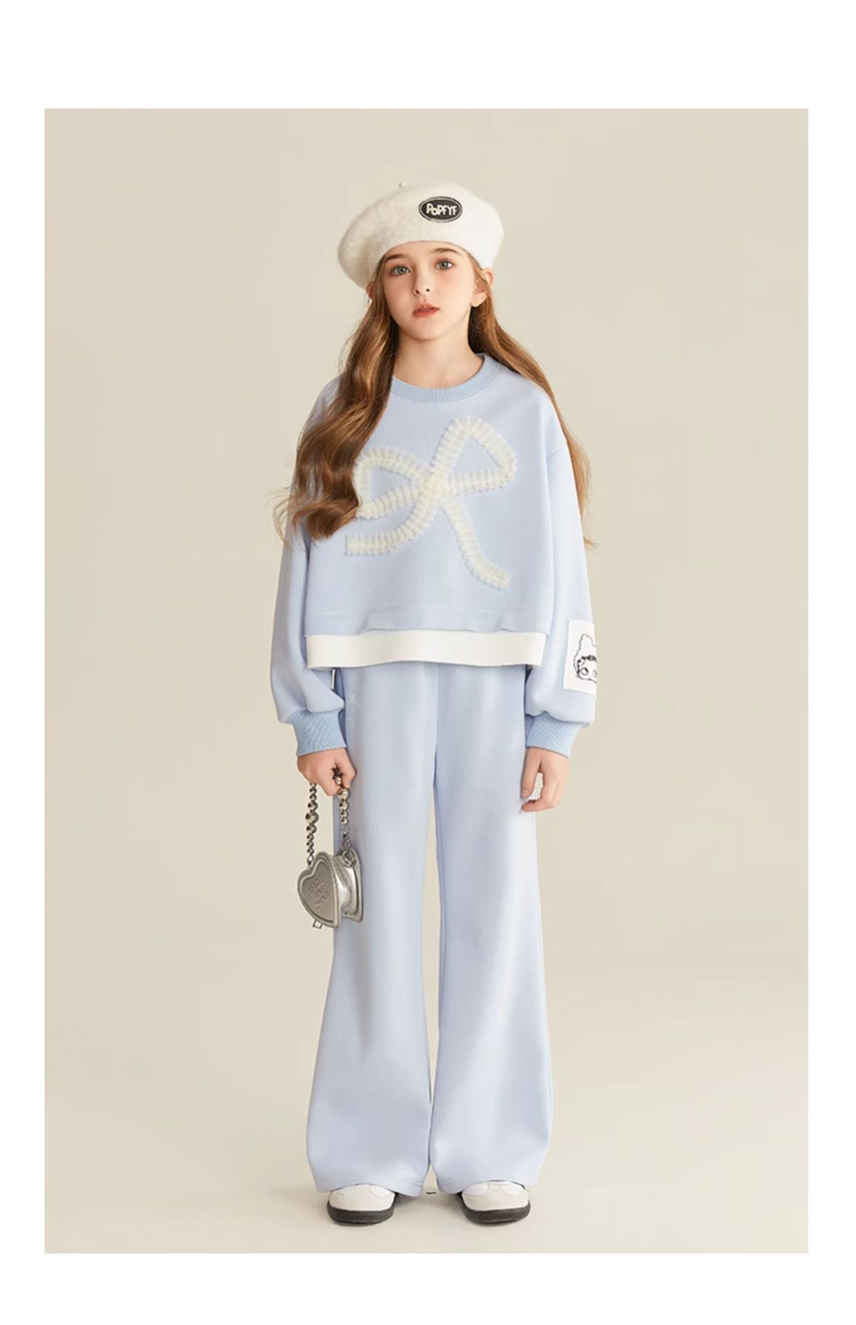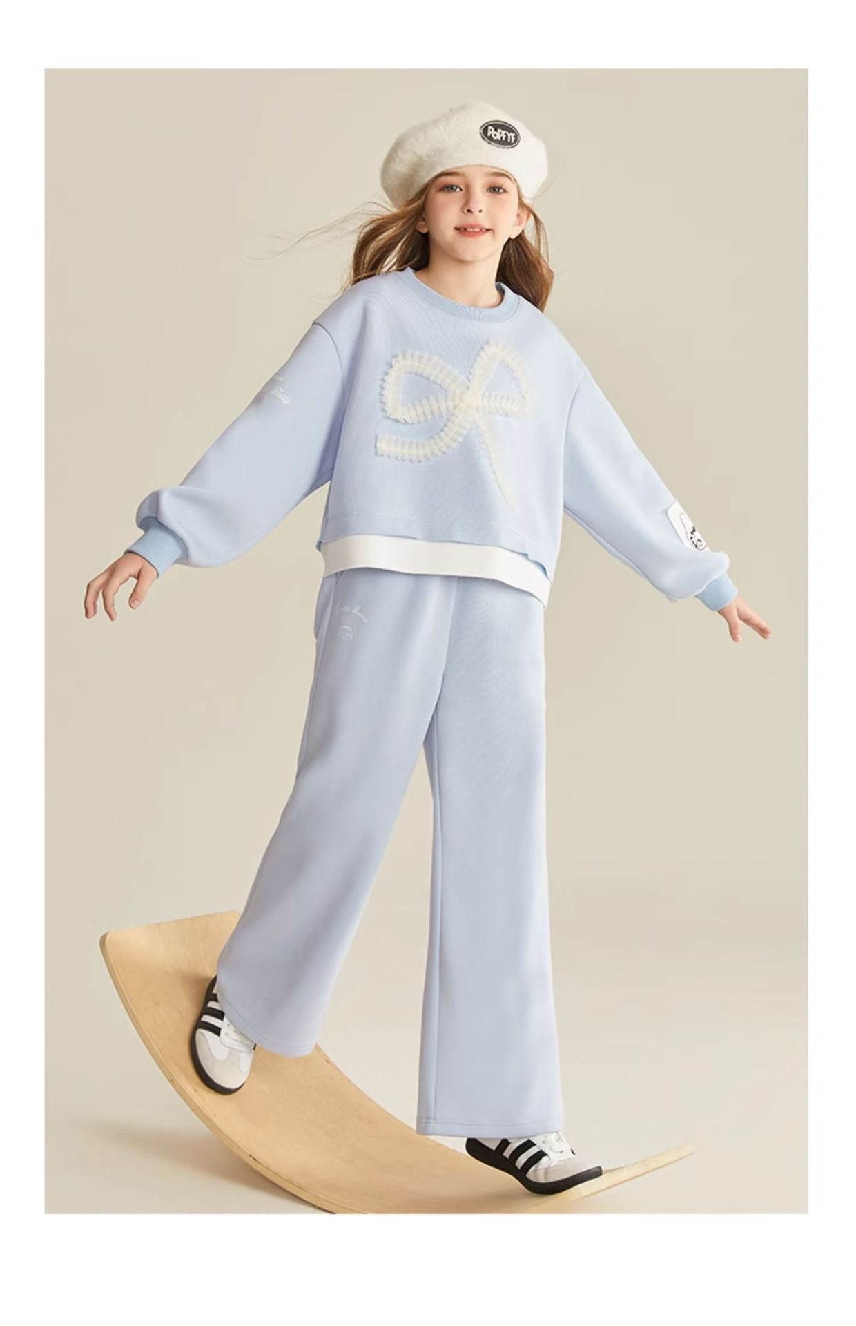 베티 아동복 소녀 봄과 가을 캐주얼 스포츠 스웨터 바지 투피스 세트 2025 새로운 소녀 어린이 세트