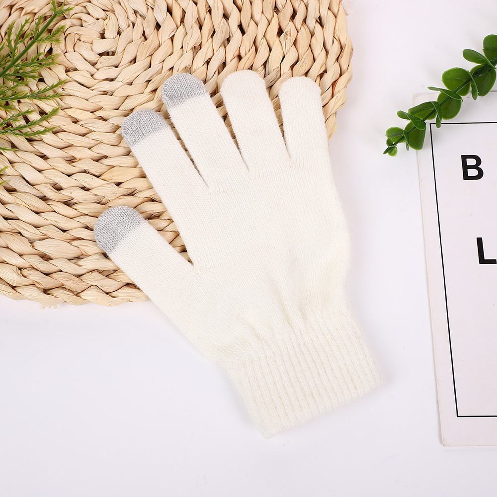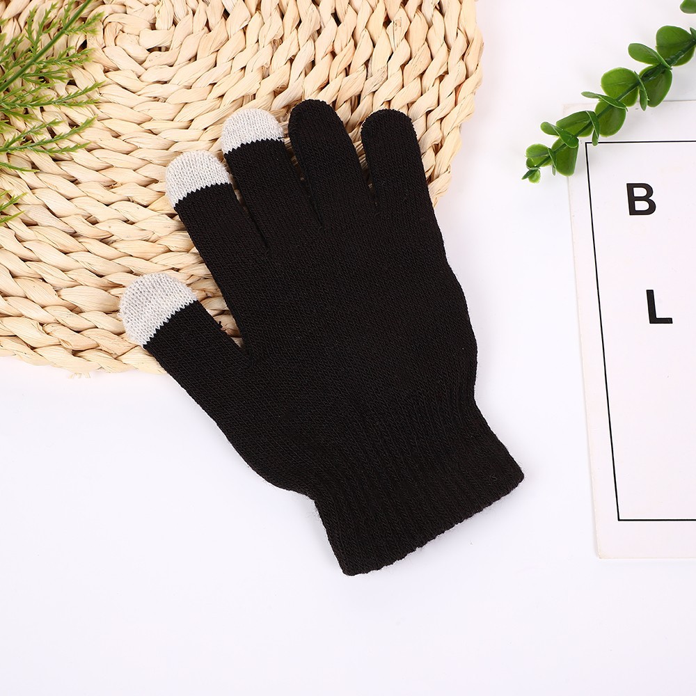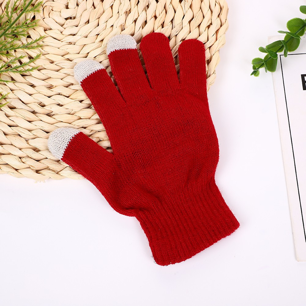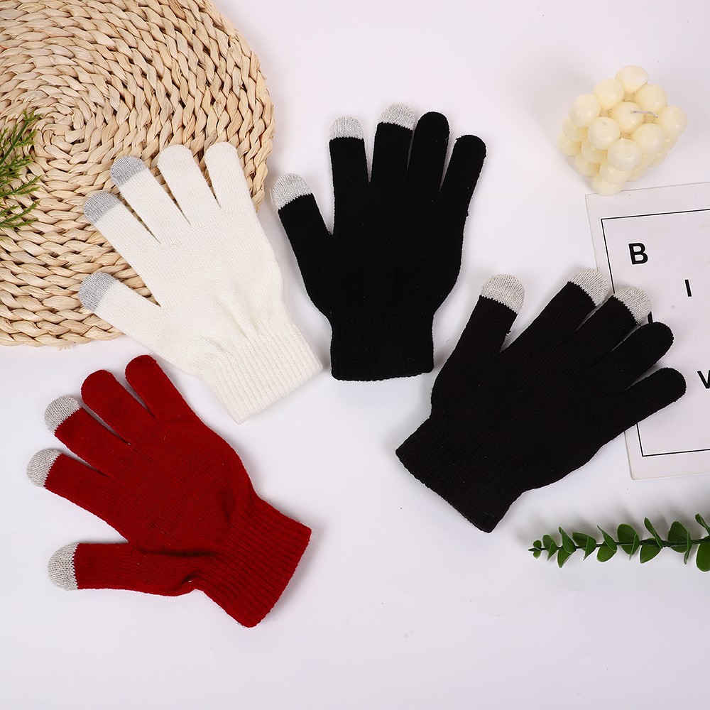 스크린 장갑 겨울 니트 따뜻한 두 손가락 터치 스크린 장갑 단색 5 손가락 장갑