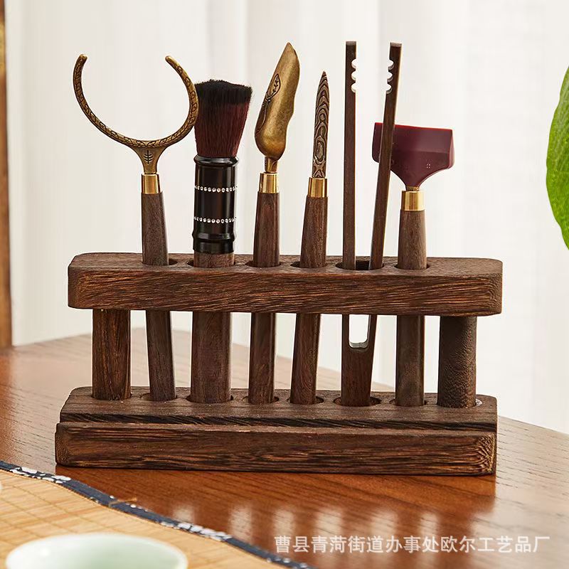 단단한 나무 다도 여섯 신사 싱글 랙 세트 랙 쿵푸 차 세트 액세서리 차 공급 도구 사다리 저장 랙