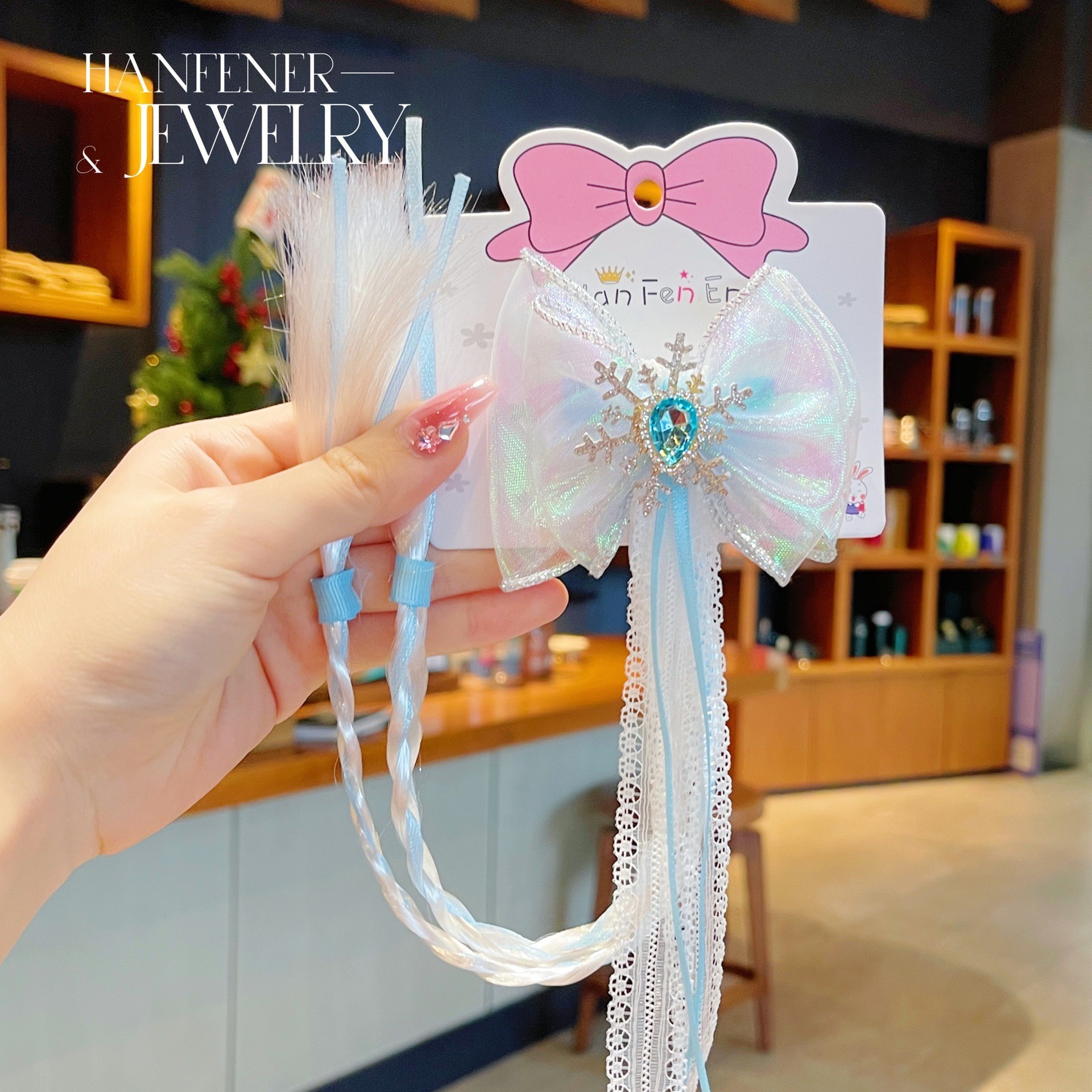 어린이 헤어핀 만화 활 가발 머리띠 절묘한 귀여운 공주 엘사 스타일 어린 소녀 어린이 헤어 액세서리