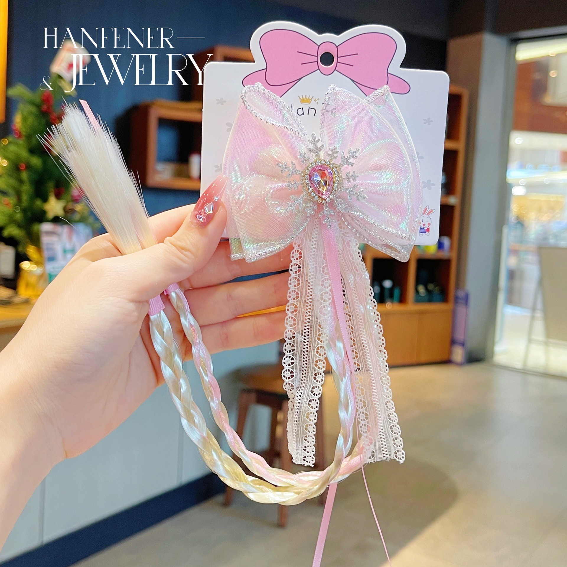어린이 헤어핀 만화 활 가발 머리띠 절묘한 귀여운 공주 엘사 스타일 어린 소녀 어린이 헤어 액세서리스토어 가기