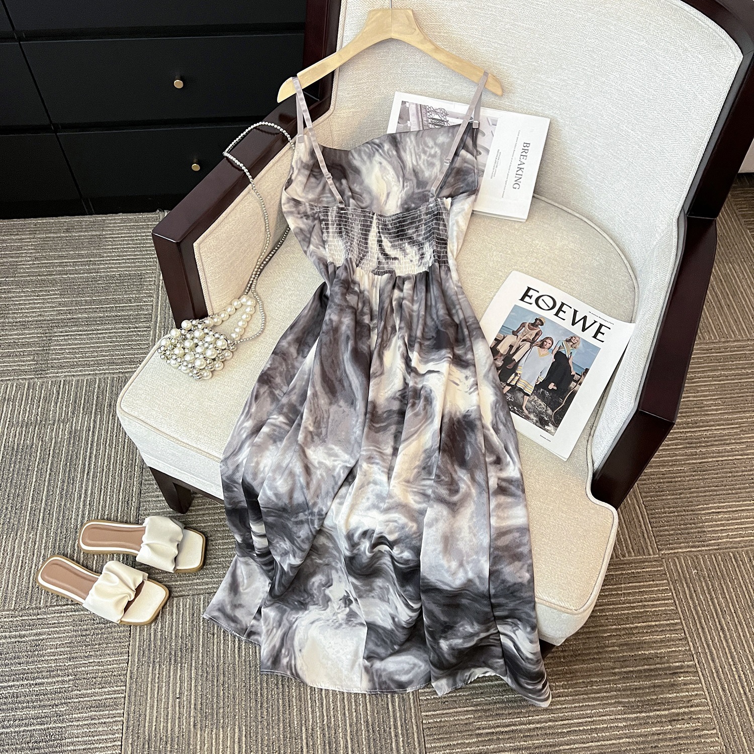 새로운 중국 스타일 빈티지 슬링 원피스 여성 여름 2025 새로운 하이 엔드 우아한 허리 칙 긴 스커트스토어 가기