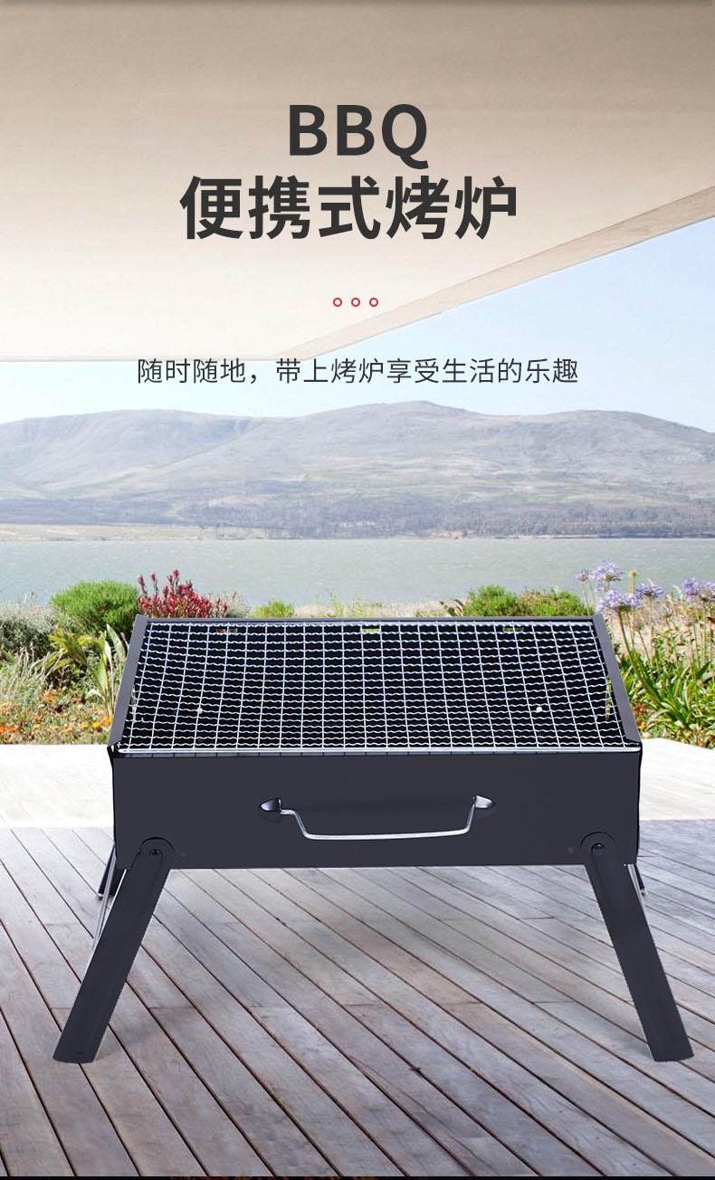 정사각형 캠핑 홈 야드 바베큐 그릴 야외 휴대용 숯불 바베큐 그릴 무연 숯불 그릴 전체 세트스토어 가기