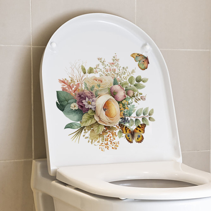 국경 간 여행 및 건강 CH33171 손으로 그린 나비 꽃 벽 스티커 화장실 뚜껑 장식 방수 셀프 접착 스티커