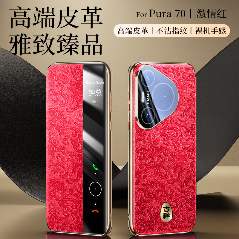 화웨이 Pura70pro 전화 케이스, 일반 가죽 마그네틱 흡입 플립 커버 70 울트라 스마트 창 안티 드롭 보호 커버스토어 가기