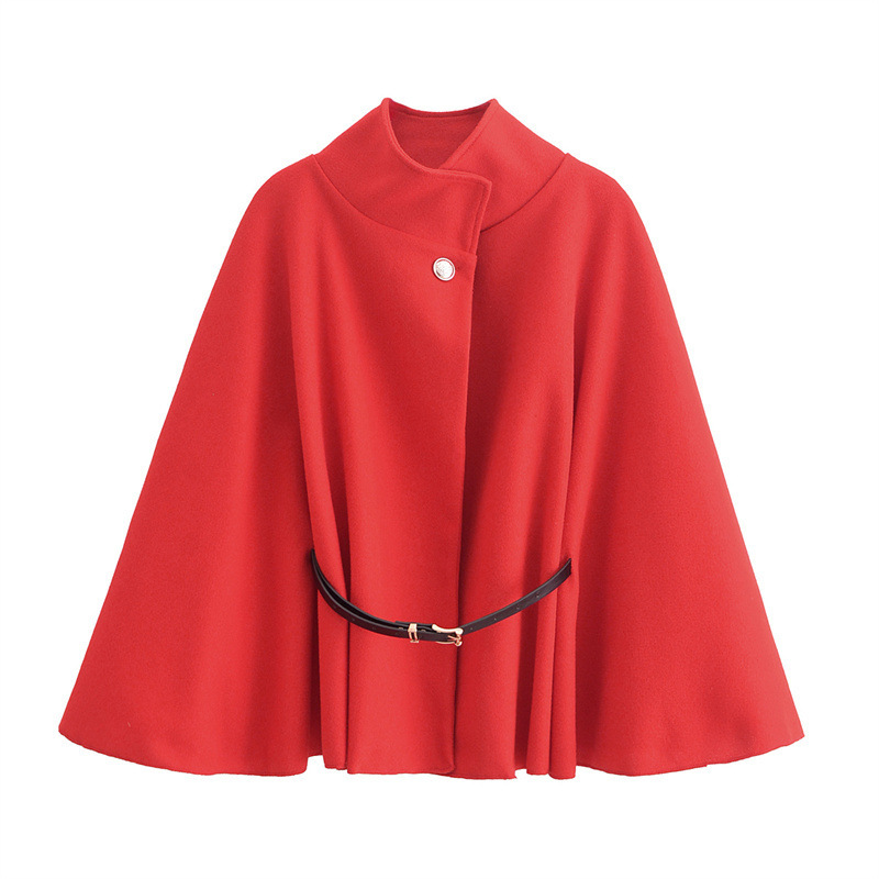 대외 무역 목록! 겨울 새 스타일 케이프 코트 여성용 재킷 타이트 허리 스트랩 디자인 센스 틈새 성격 슬림