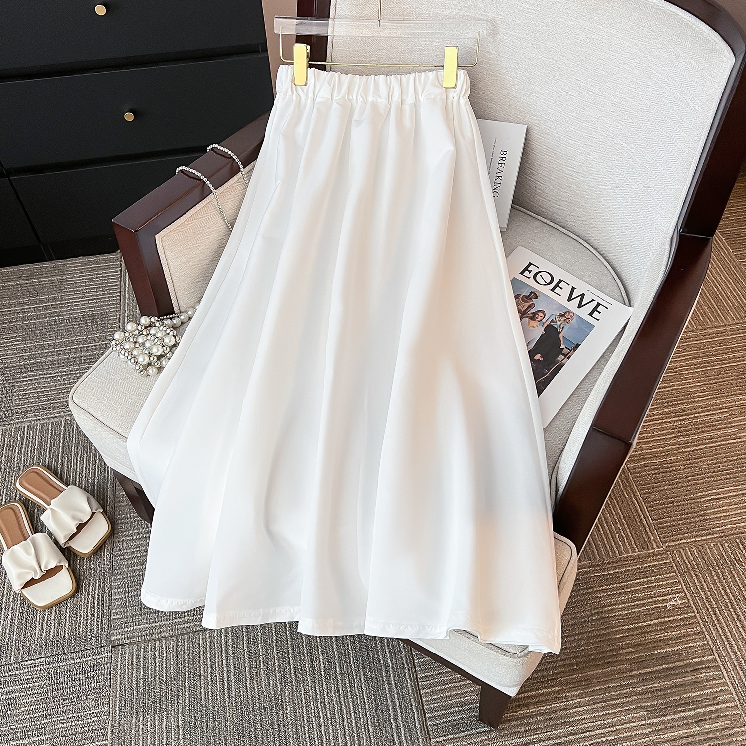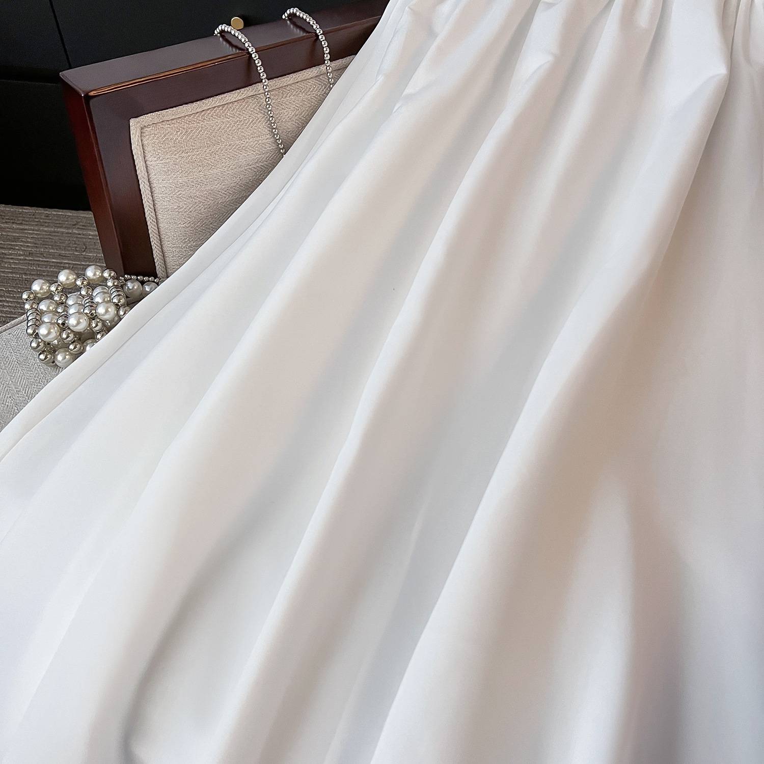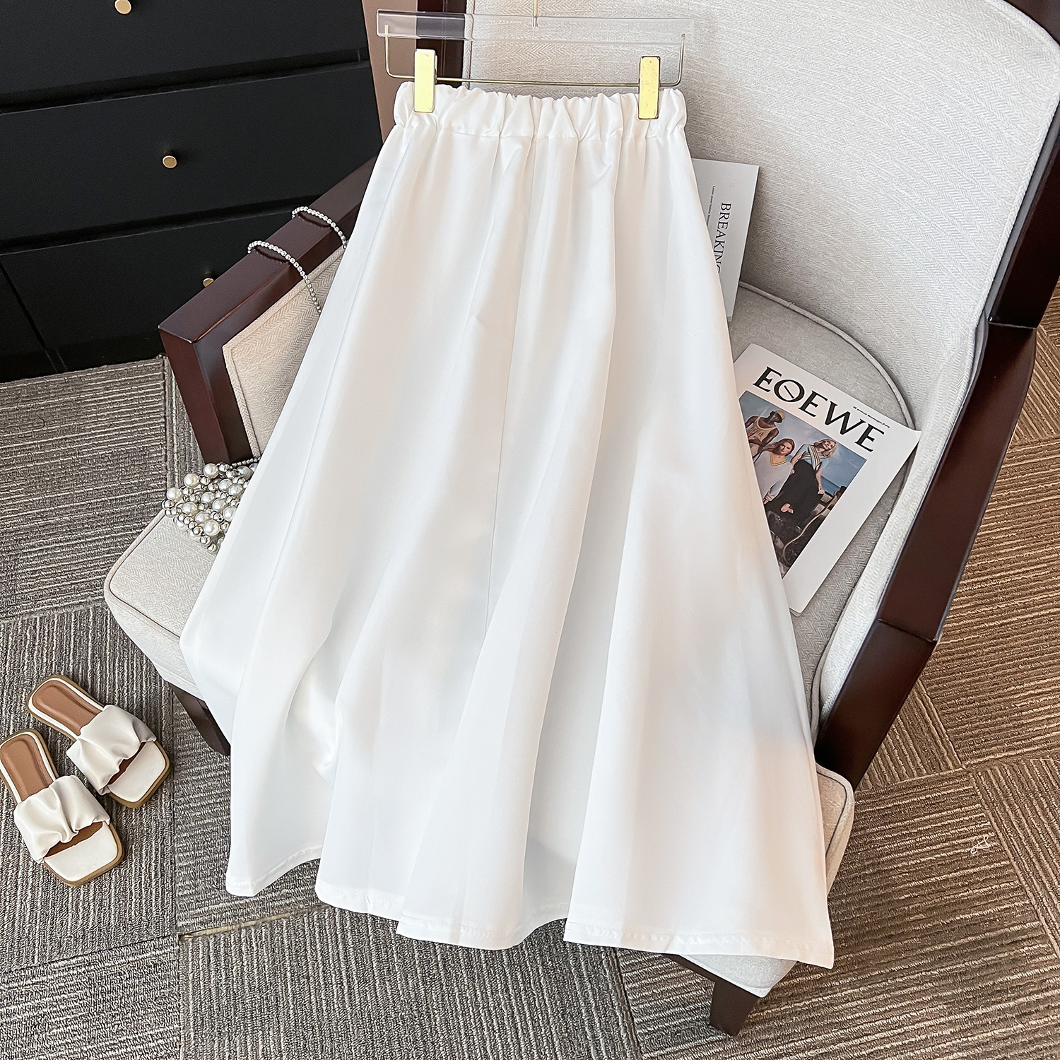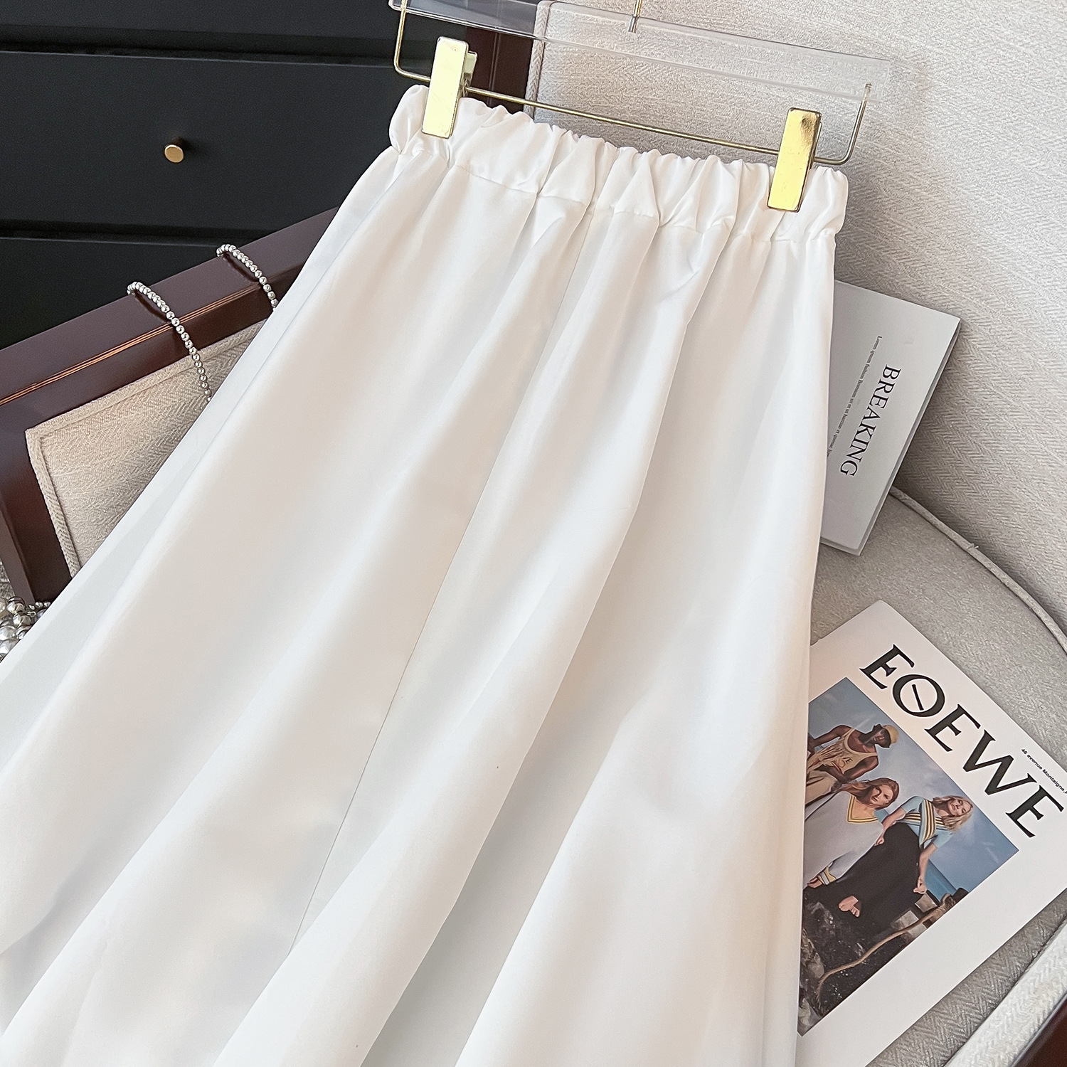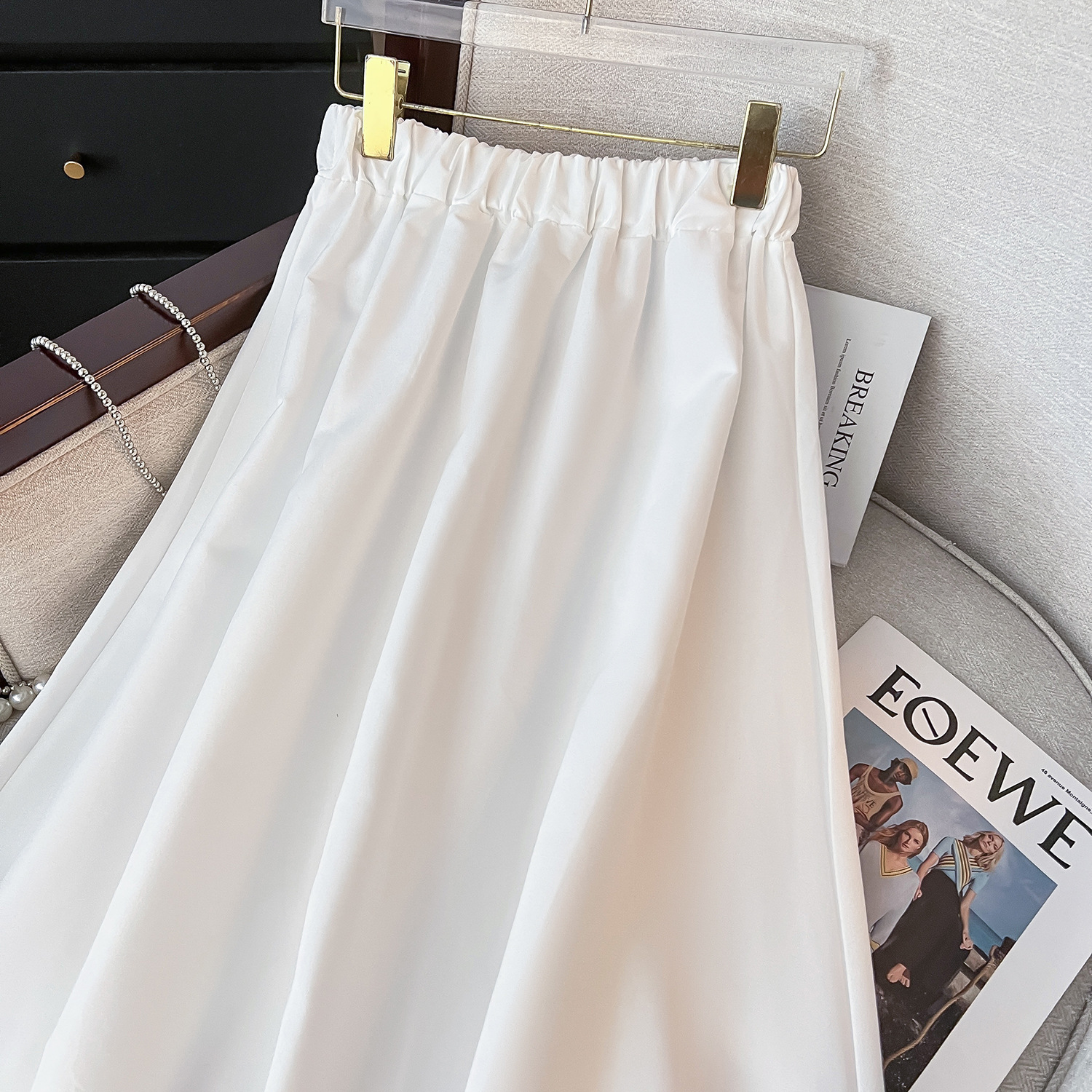 프렌치 스타일 화이트 젠틀 우아한 투약 슬림 스커트 여성 여름 쿨 디자인 대형 우산 치마