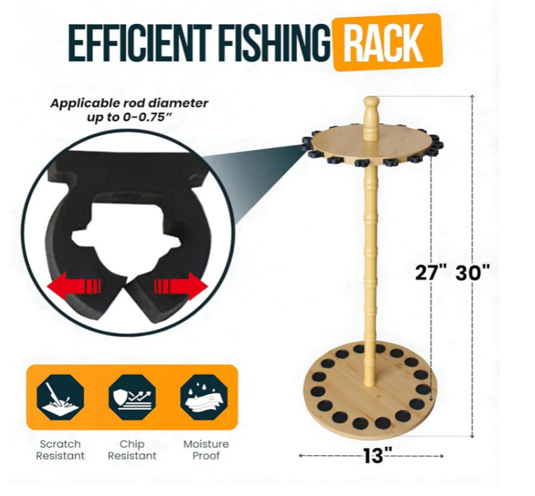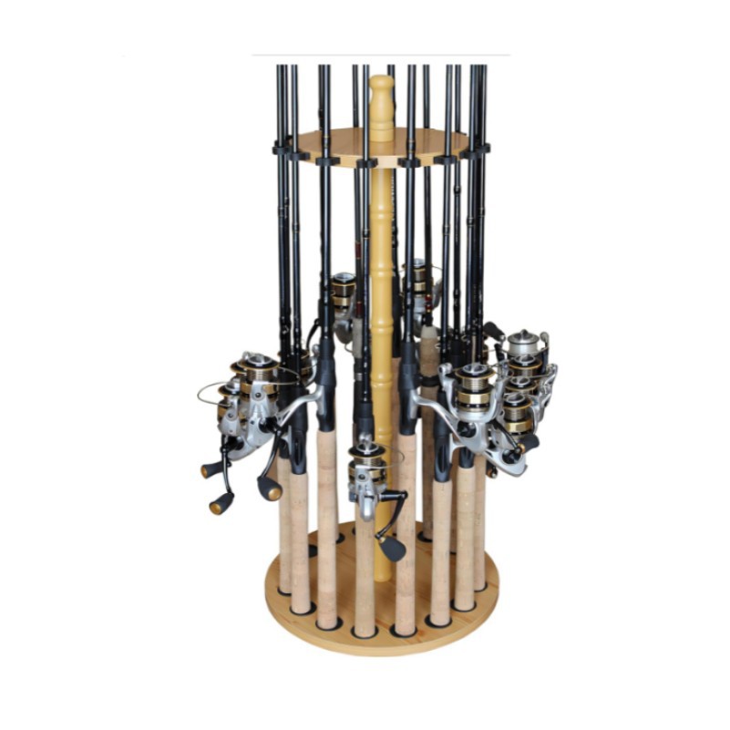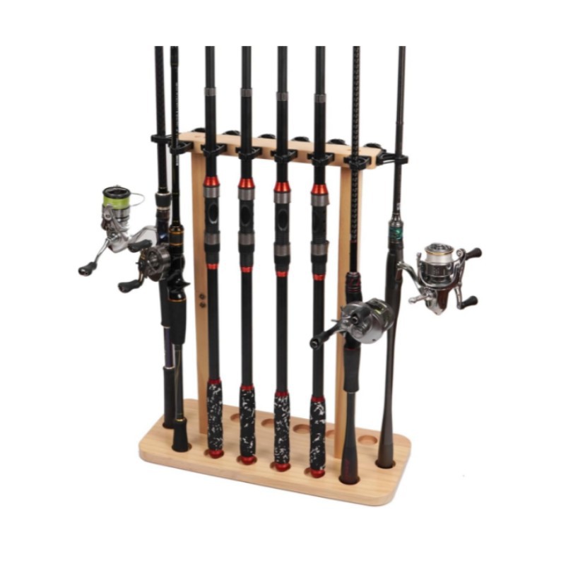 나무 낚싯대 저장 랙 더블 레이어 그리드 Luya 낚싯대 및 그물 저장 랙 바닥형 당구 대구 저장 랙