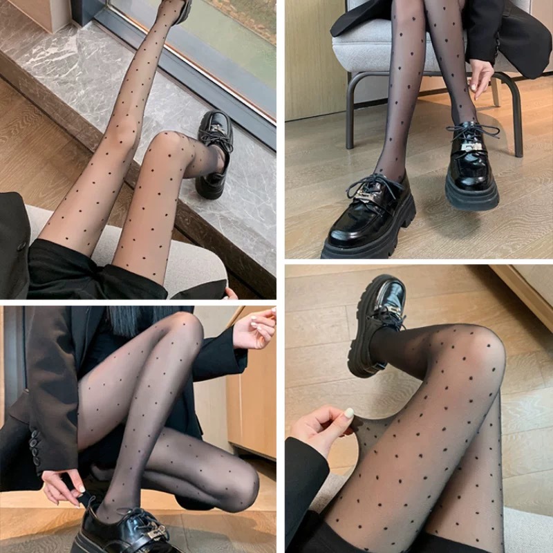 Yan 소녀 웨이브 도트 블랙 실크 스타킹 여성의 안티 훅 실크 착용 초박형 4 시즌 얇은 블랙 실크 0D 높은 투과성 비 후크 실크스토어 가기