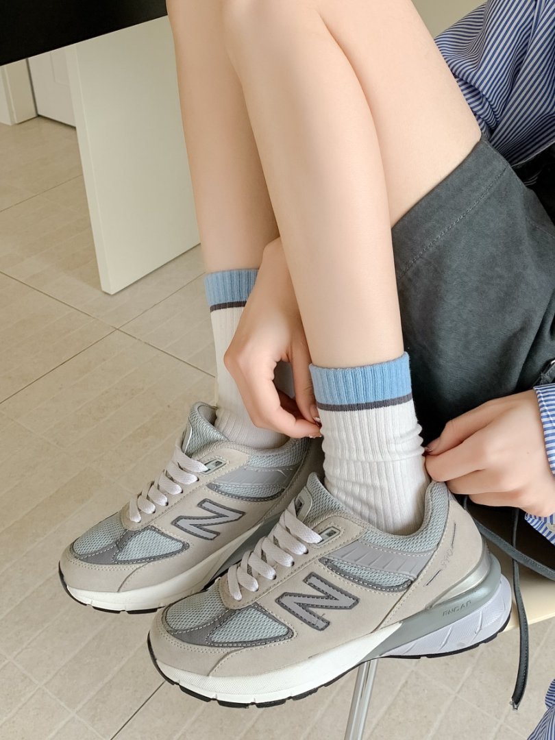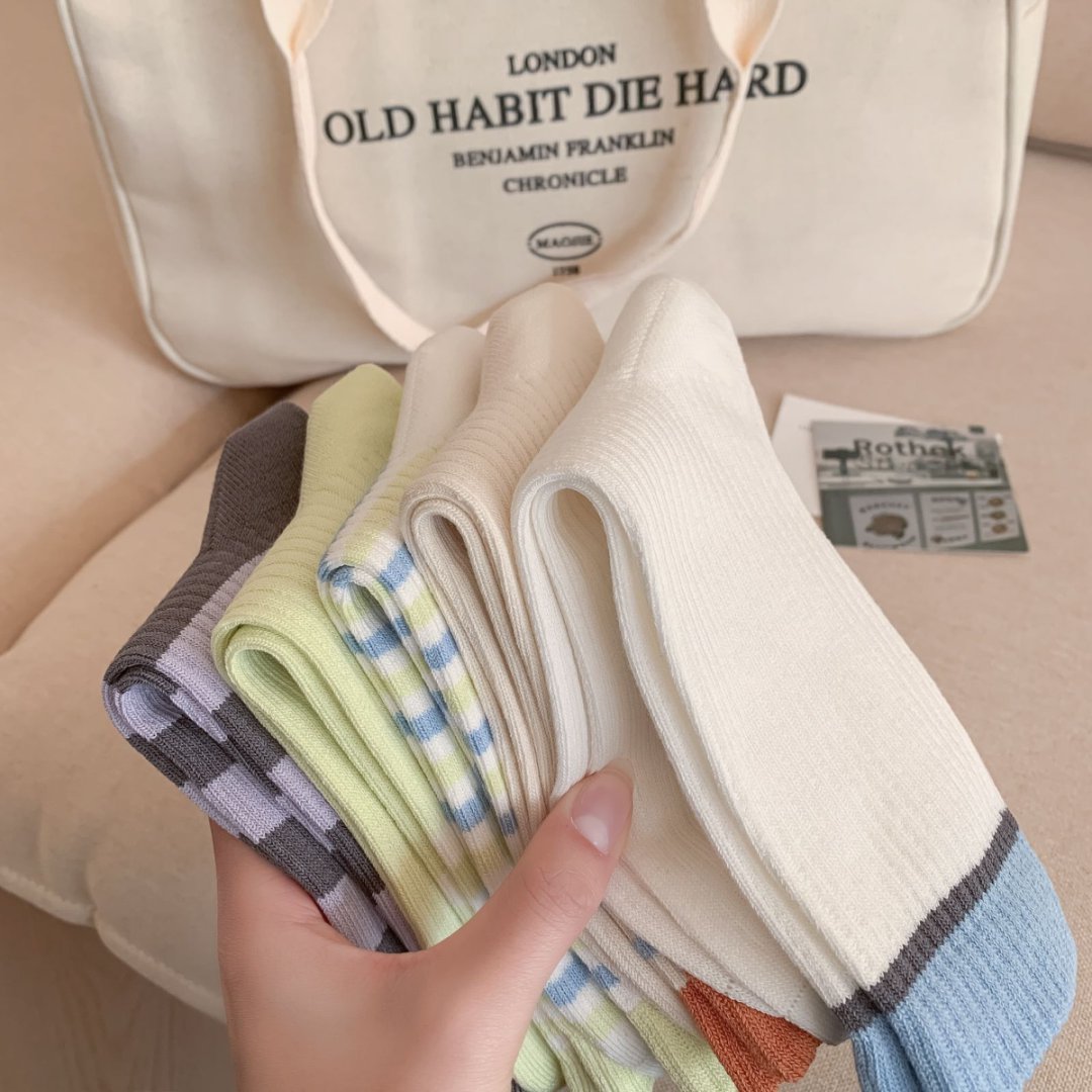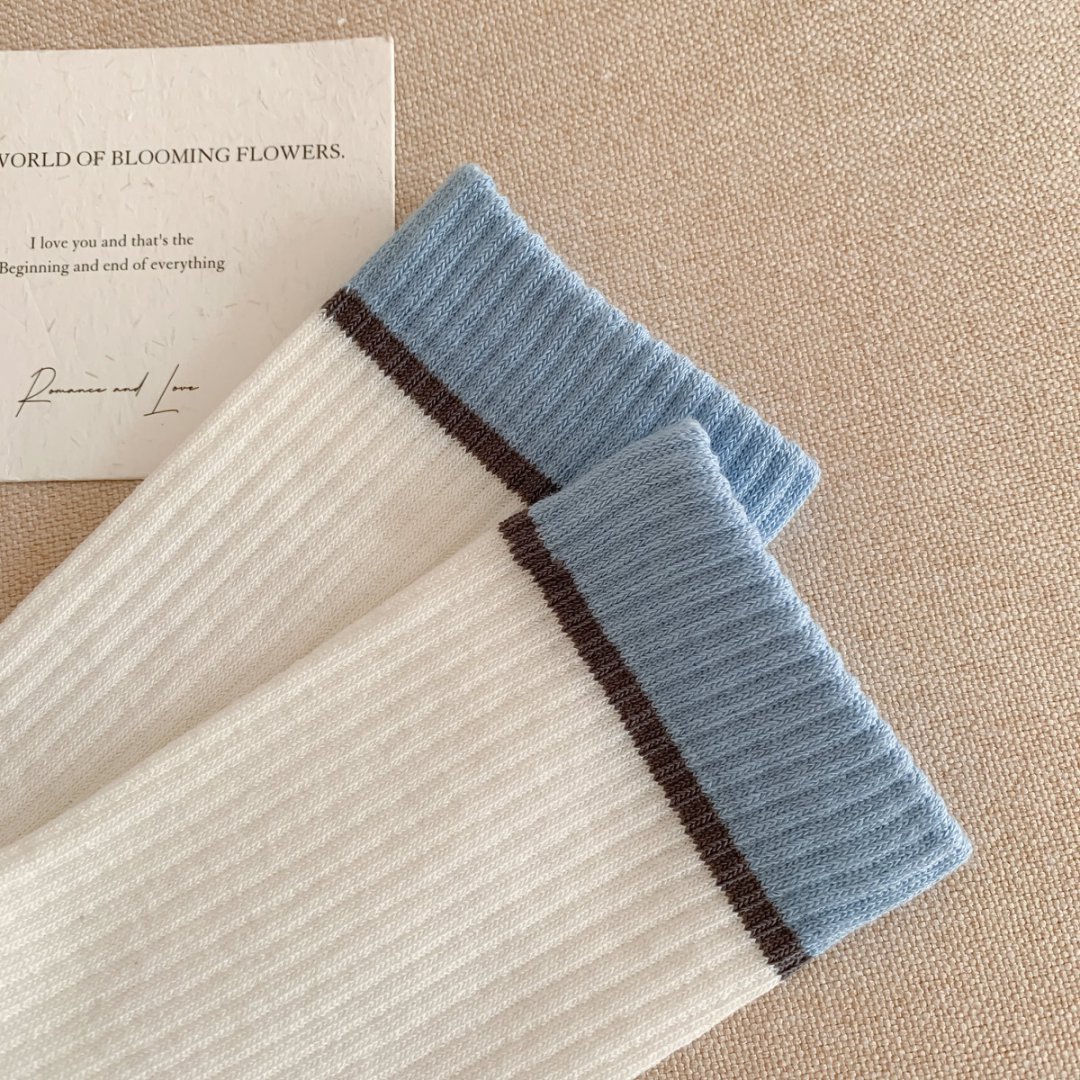 커스텀 코튼 양말 여성용 모조 더블 바늘 한국 줄무늬 미드 튜브 양말 땀 흡수 통기성 소프트 편안한 캐주얼 양말