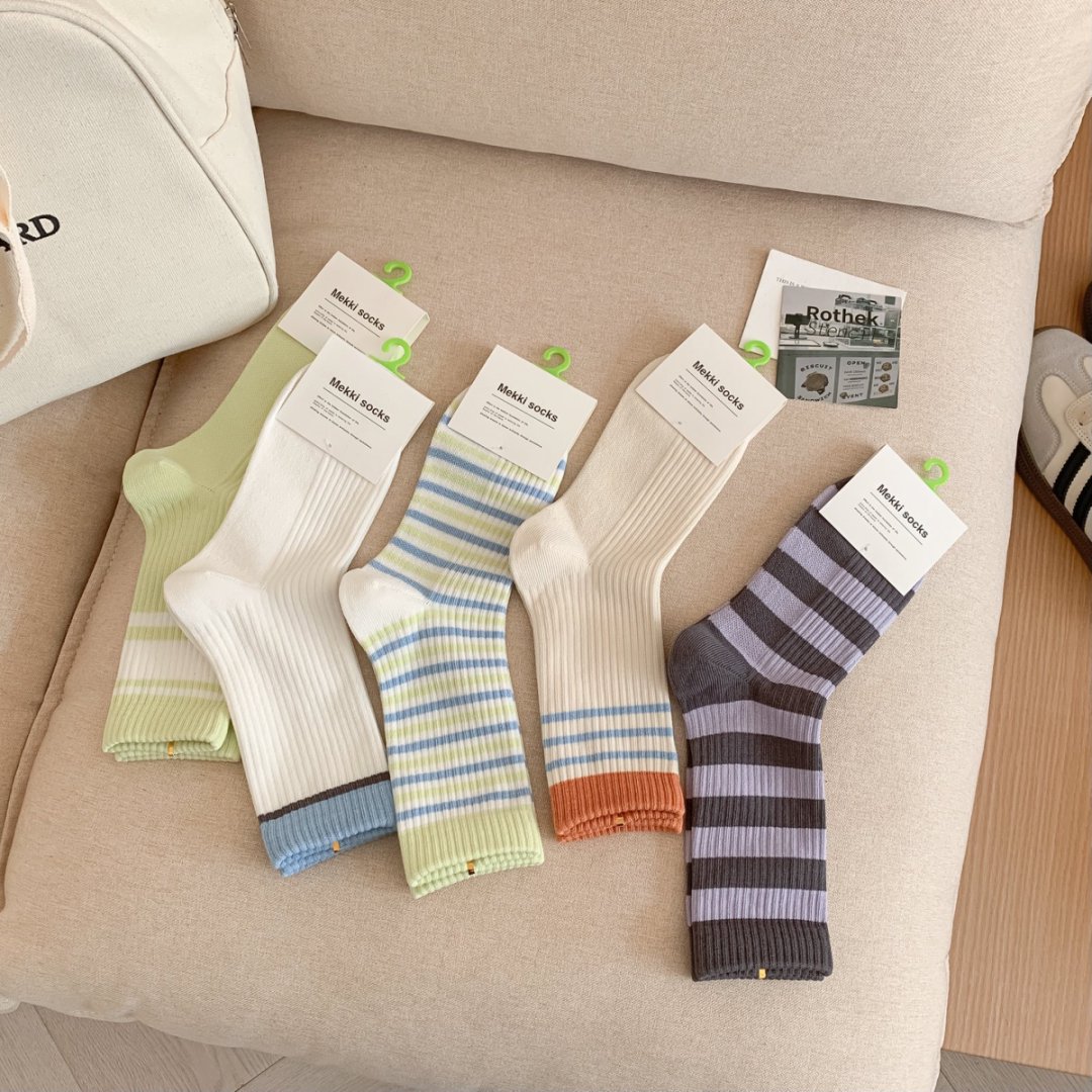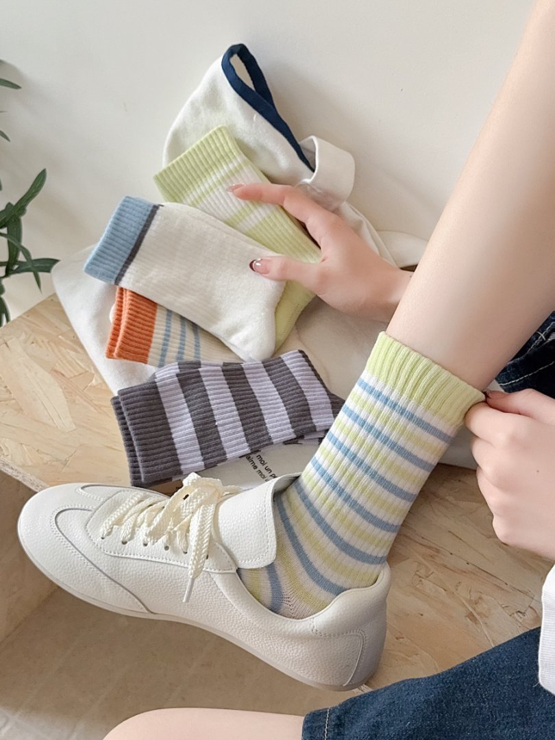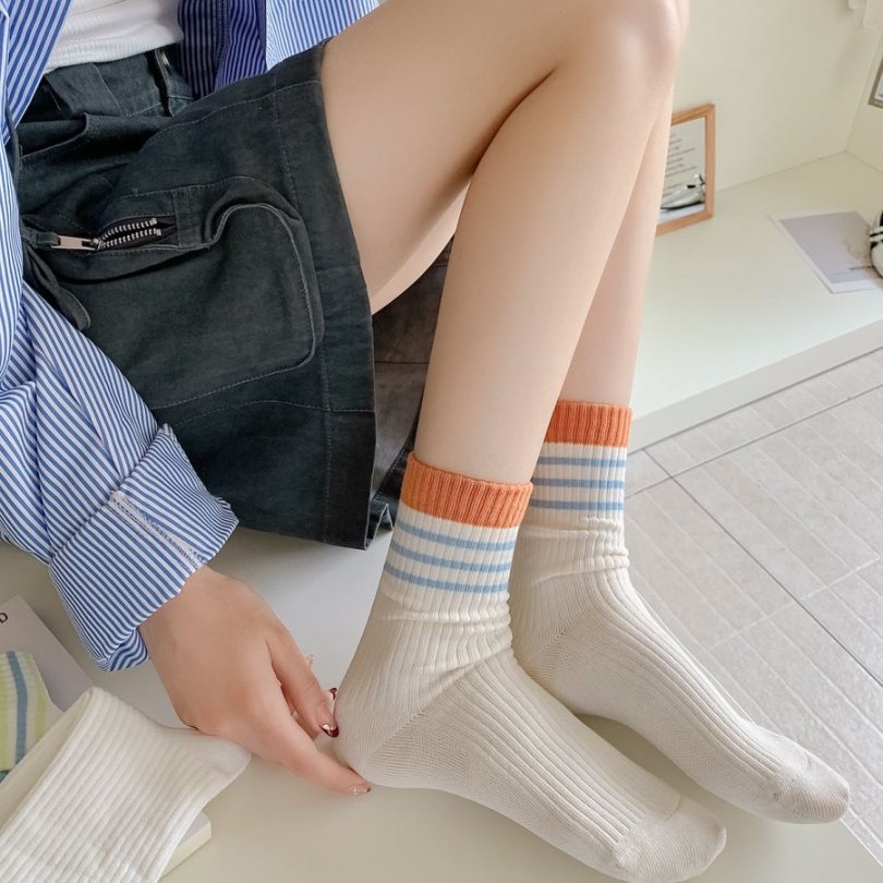커스텀 코튼 양말 여성용 모조 더블 바늘 한국 줄무늬 미드 튜브 양말 땀 흡수 통기성 소프트 편안한 캐주얼 양말스토어 가기