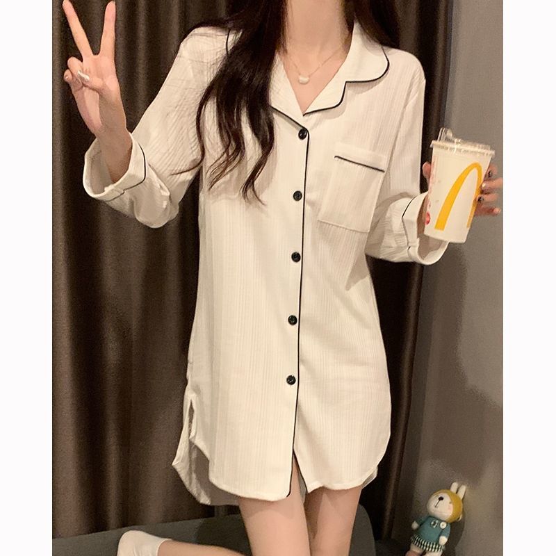 잠옷 긴팔 파자마 드레스 여성 봄, 가을 작은 카디건 여름 캐주얼 홈웨어 스커트 하이 엔드 2025 신규스토어 가기