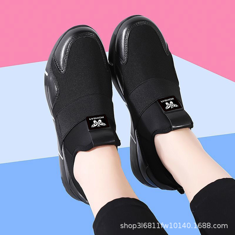 블랙 운동화 새로운 통기성 슬립 온 여성 신발 하이 엔드 캐주얼 워킹 슈즈 스포츠 남성과 여성의 게으른 신발스토어 가기
