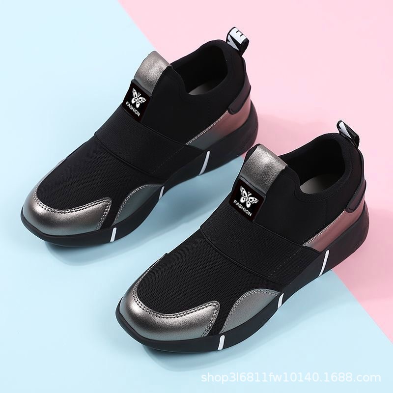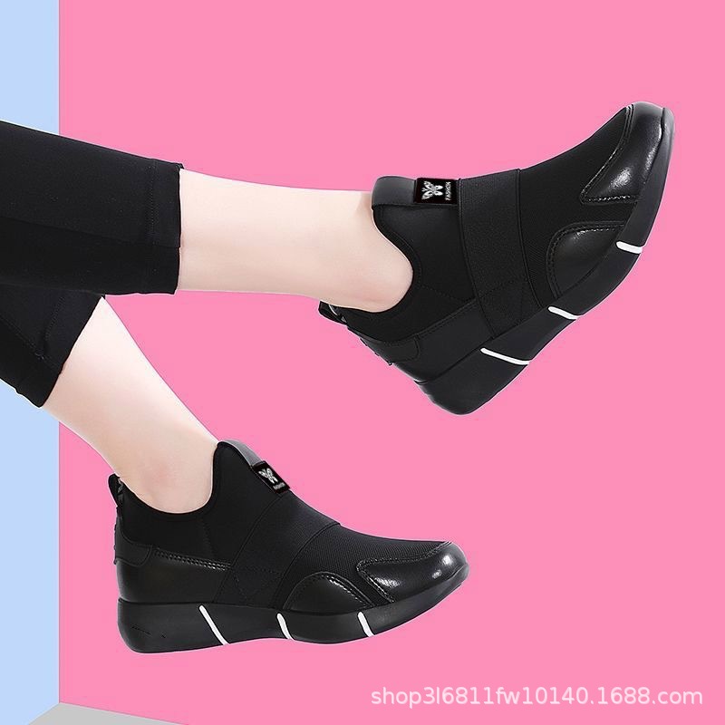 블랙 운동화 새로운 통기성 슬립 온 여성 신발 하이 엔드 캐주얼 워킹 슈즈 스포츠 남성과 여성의 게으른 신발
