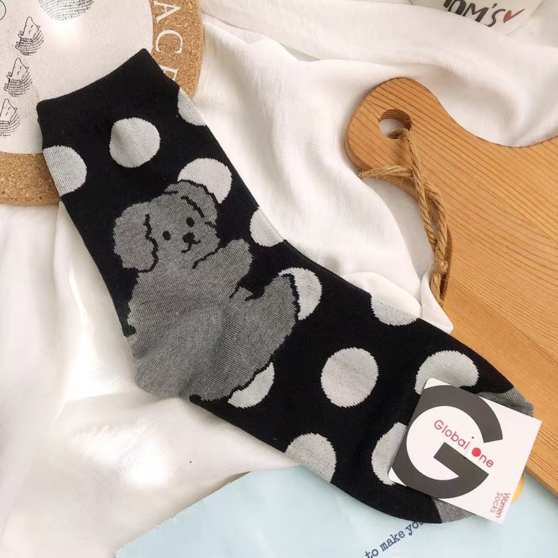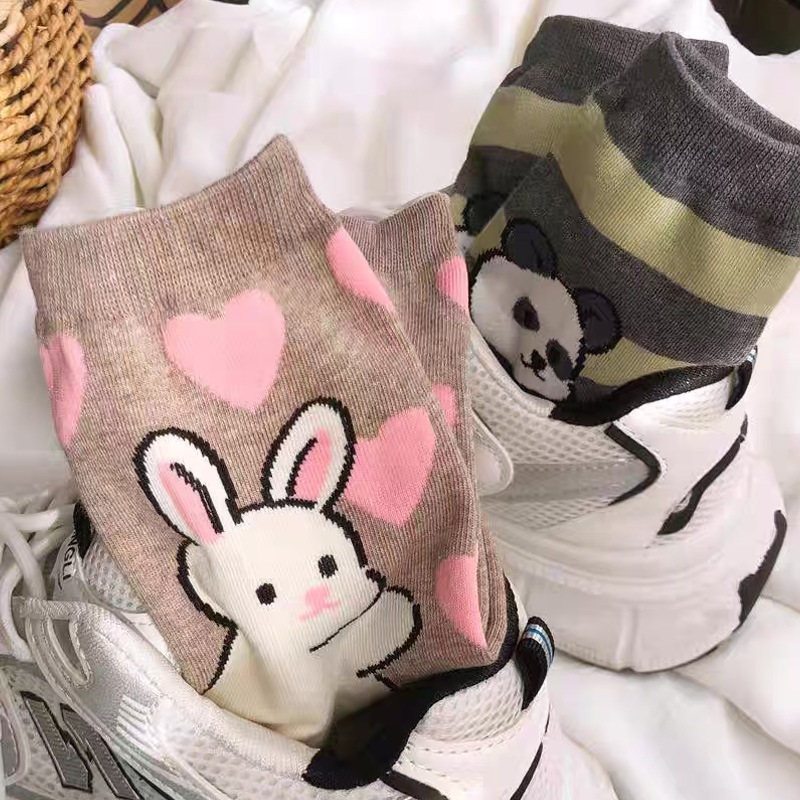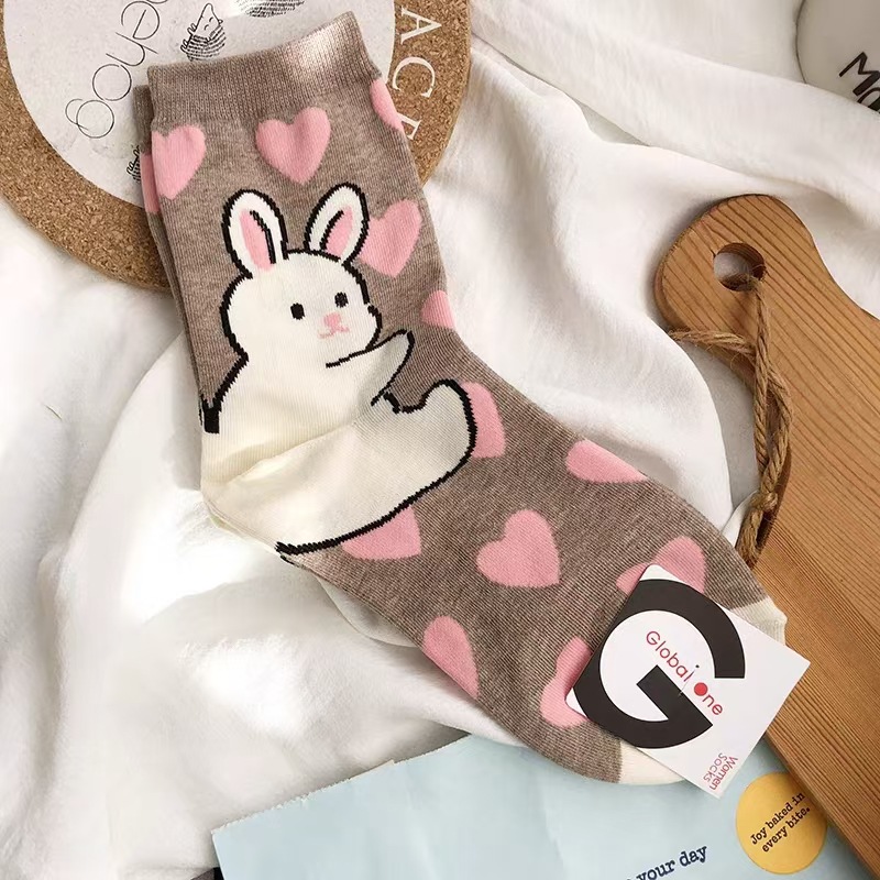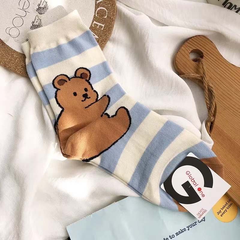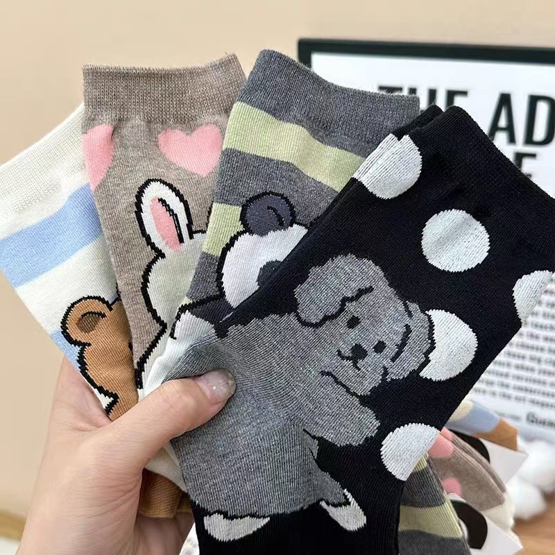 중간 허리 숙녀 한국 양말 만화 양각 동물 중간 허리 숙녀 면화 양말 가을 새로운면 소녀
