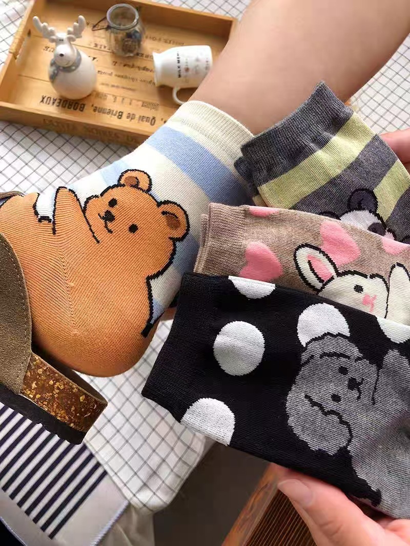 중간 허리 숙녀 한국 양말 만화 양각 동물 중간 허리 숙녀 면화 양말 가을 새로운면 소녀스토어 가기