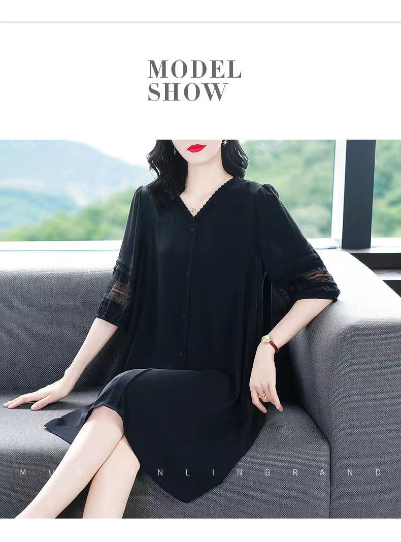 2024 여름 새로운 패션 스커트 뚱뚱한 느슨한 배꼽 슬림 플러스 사이즈 여성의 어머니 쉬폰 원피스스토어 가기
