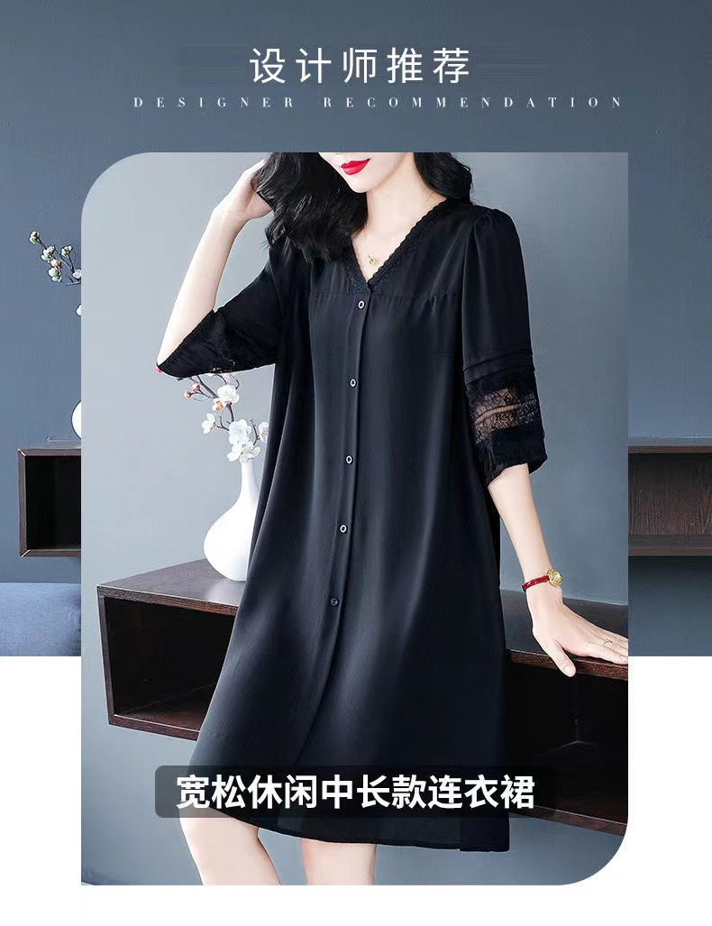2024 여름 새로운 패션 스커트 뚱뚱한 느슨한 배꼽 슬림 플러스 사이즈 여성의 어머니 쉬폰 원피스
