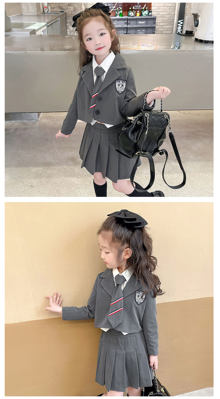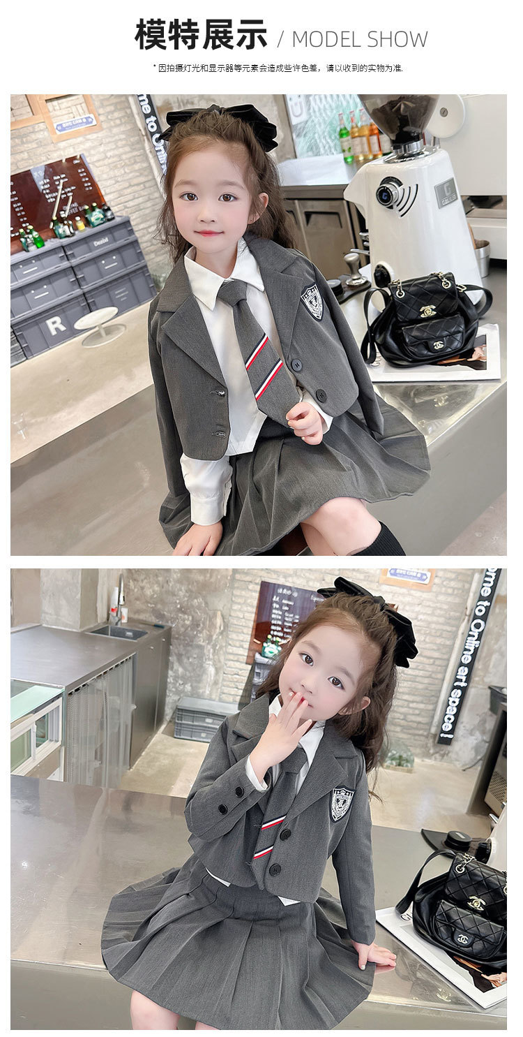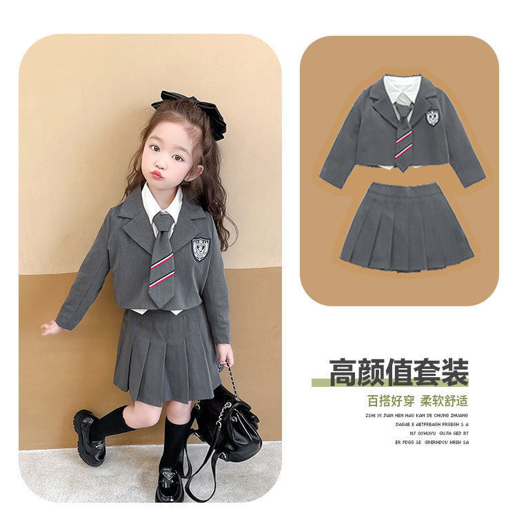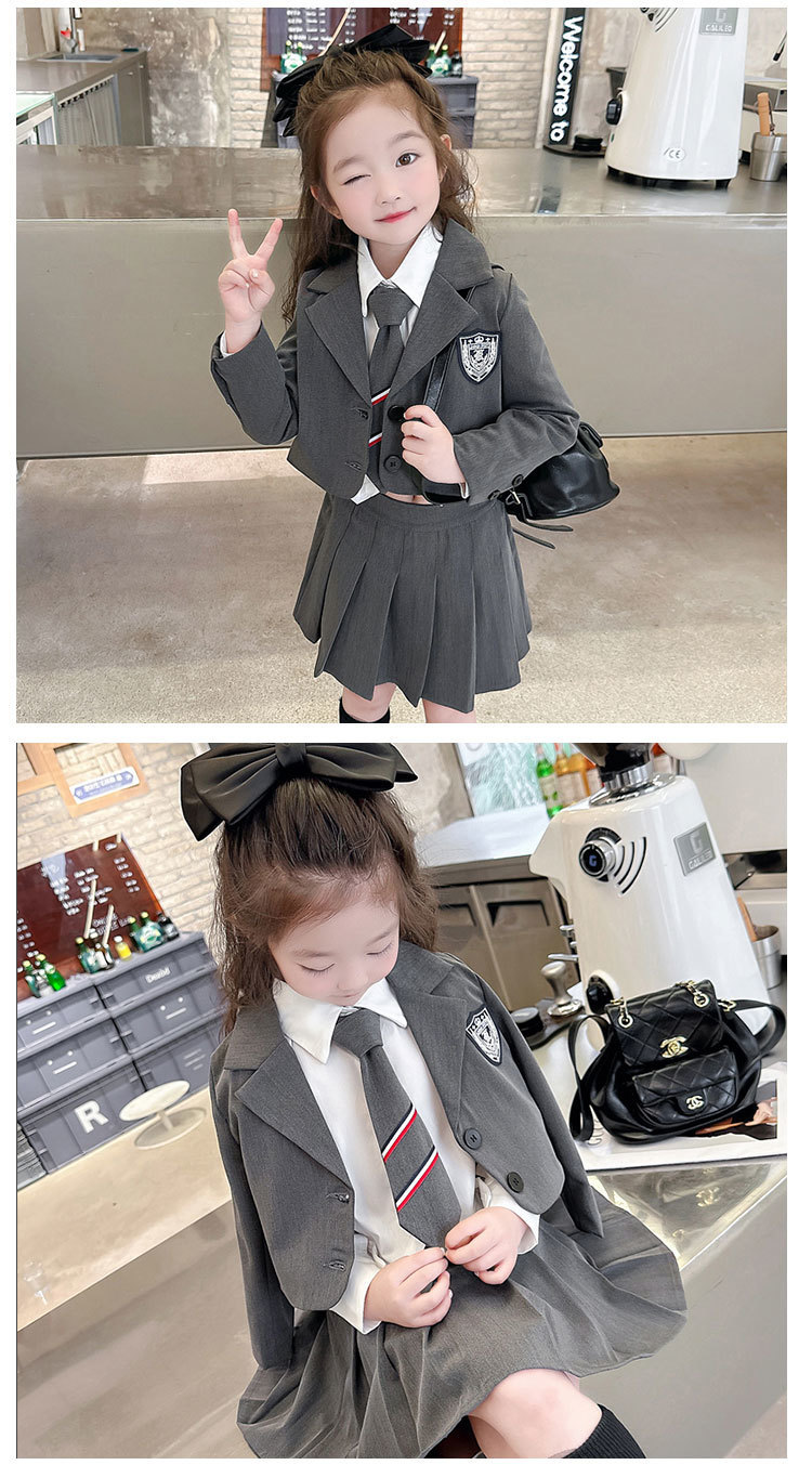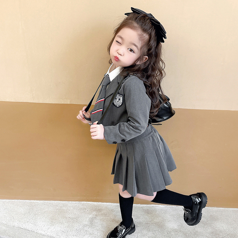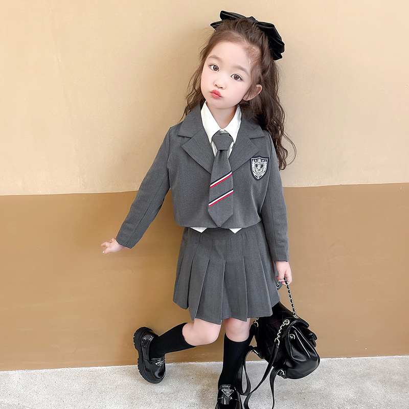 소녀 원피스 봄과 가을 2024 새로운 서양식 어린이 대학 스타일 세트 어린 소녀 봄 Jk 세트 치마스토어 가기