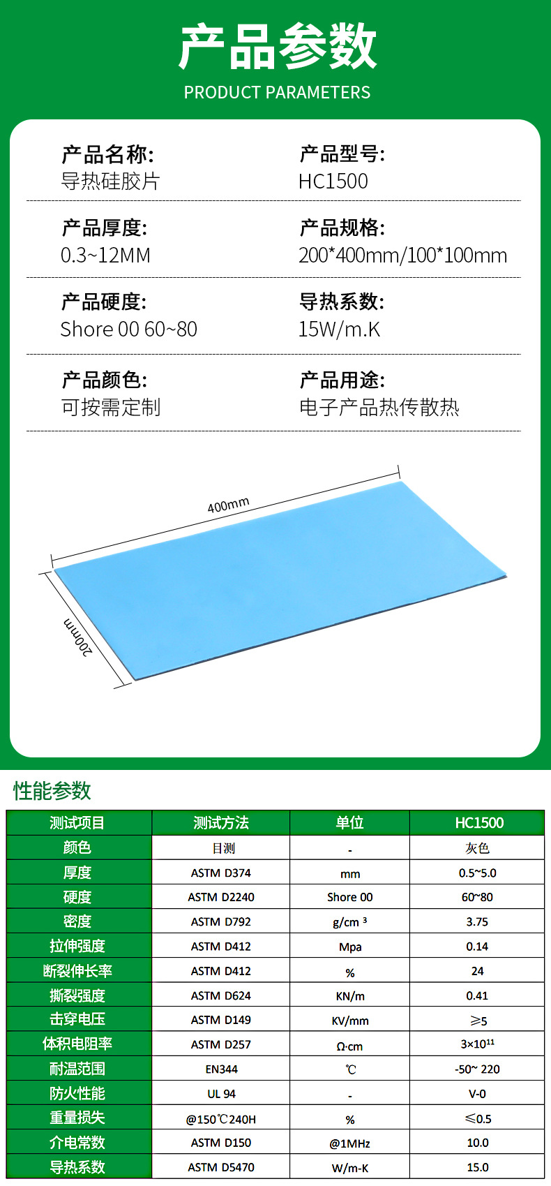 15W 초고 열전도성 실리콘 시트 자동차 레이더 방열판 난연 고출력 CPU 전력 충전 파일 절연 시트
