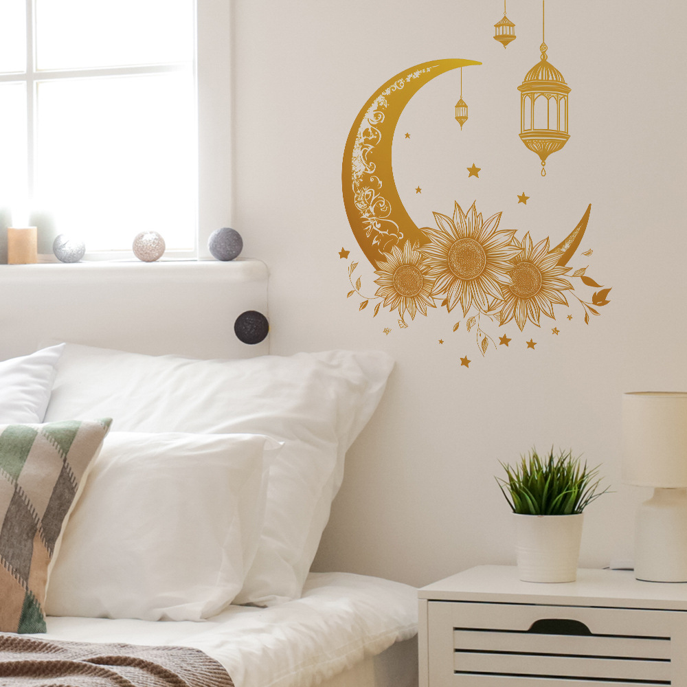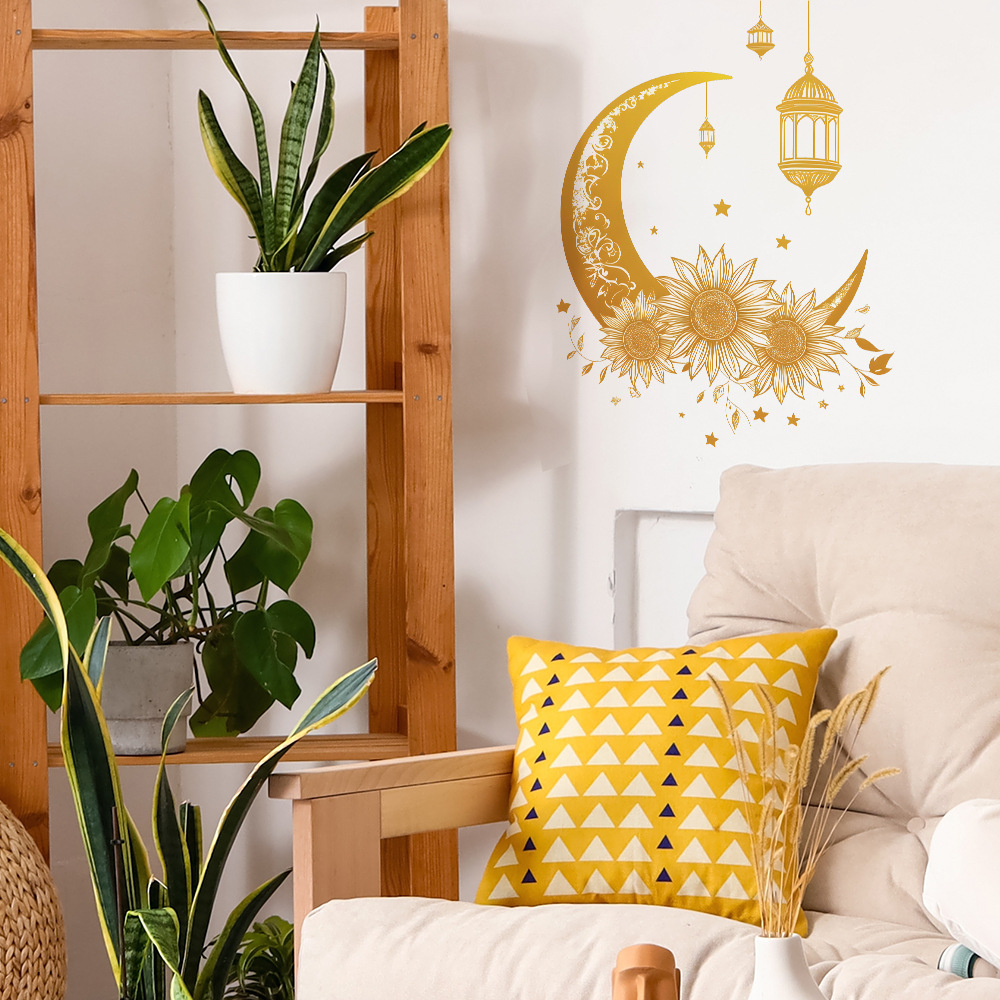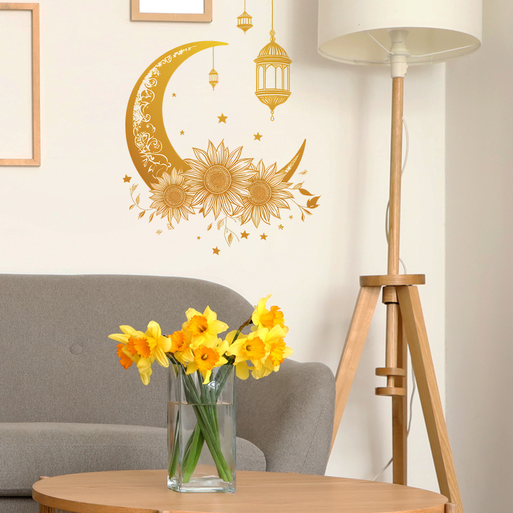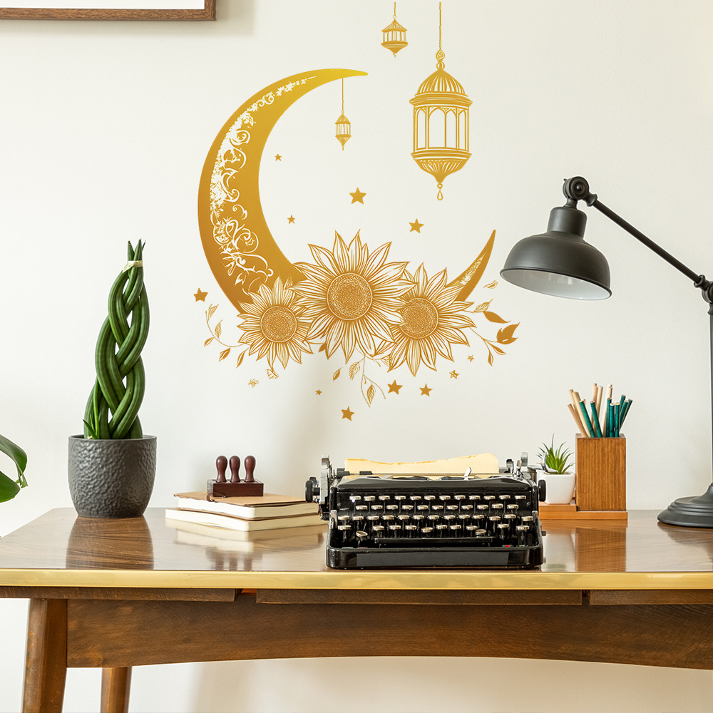 Fun-f518 무역 창조적 인 노란 달 꽃 침실 거실 배경 미화 장식 벽 스티커 도매스토어 가기