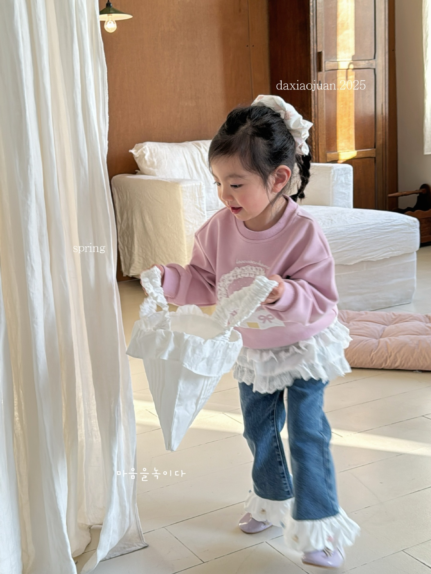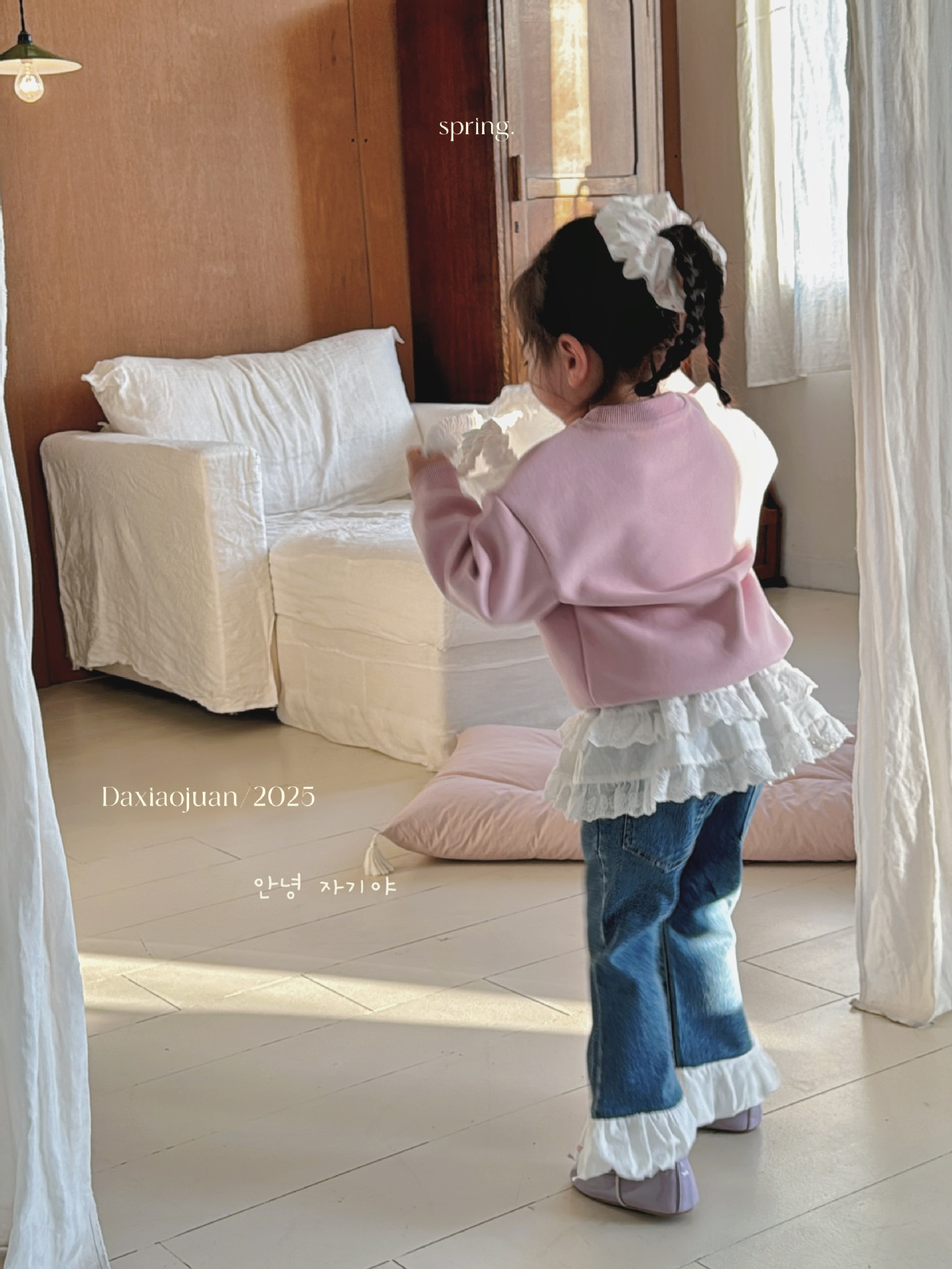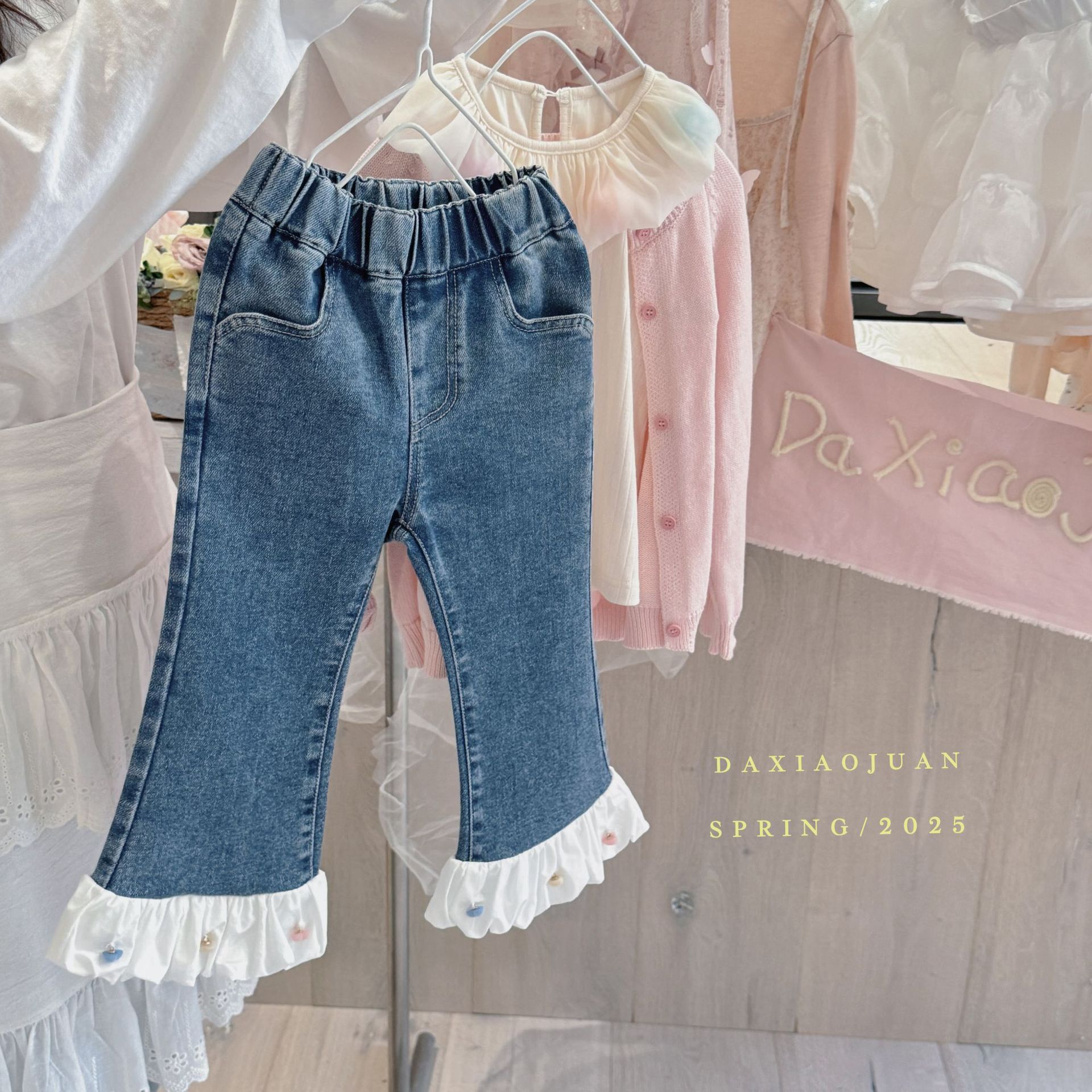 작고 큰 롤 소녀 새로운 사랑 버튼 25 한국 아동복 서양식 올 매치 유행 레이스 플레어 바지 청바지스토어 가기