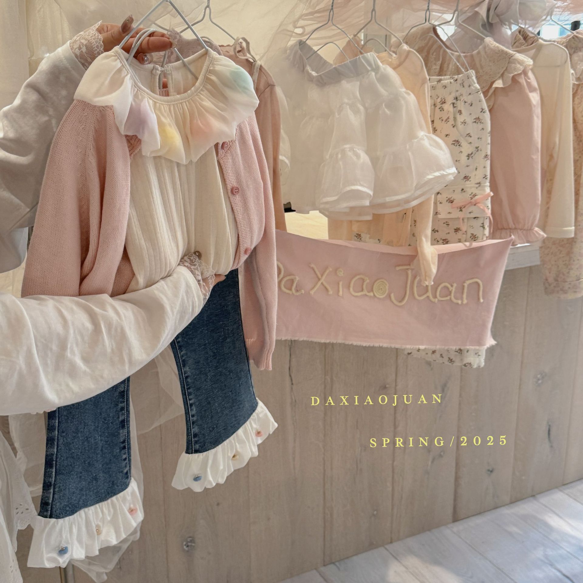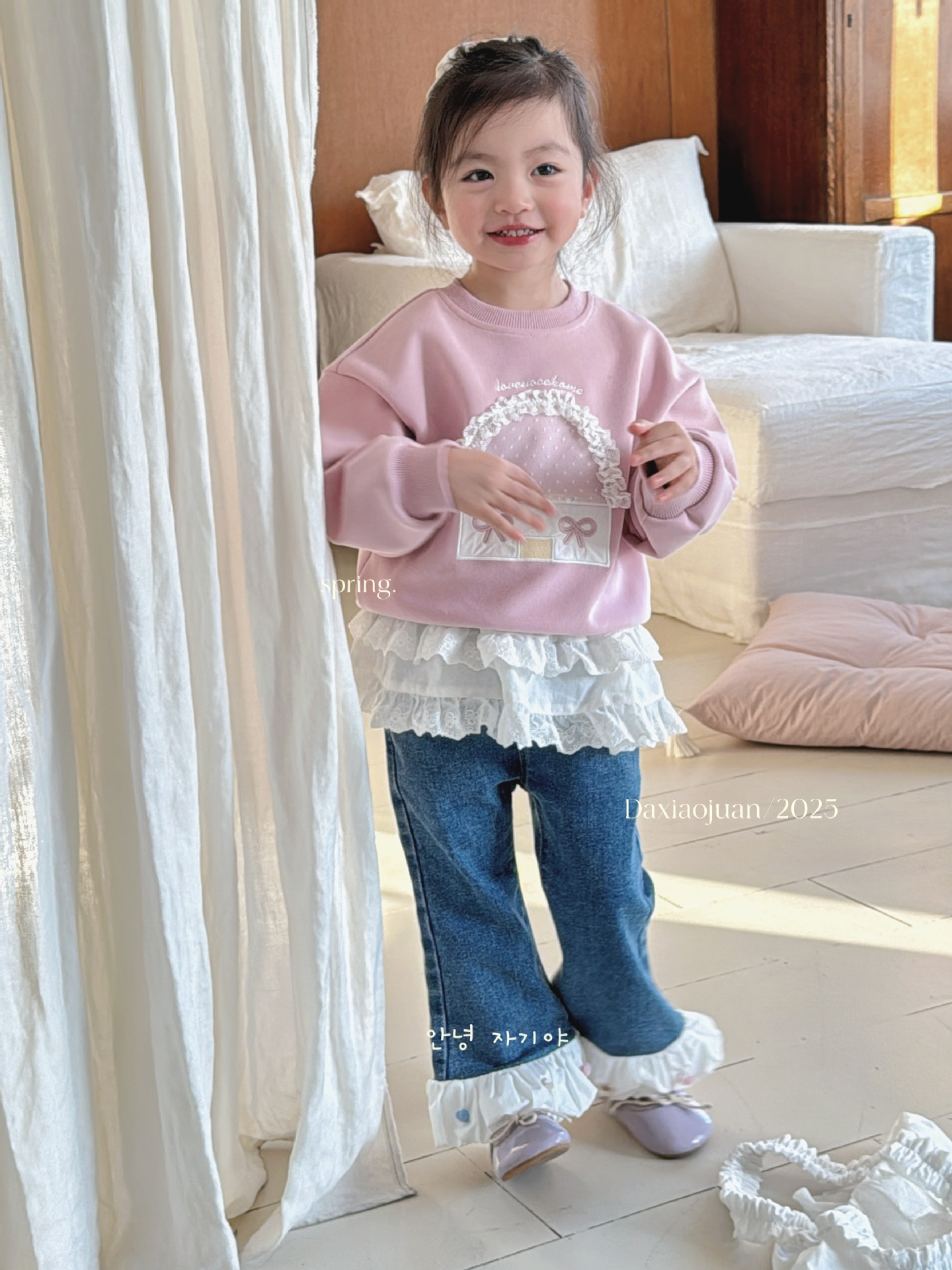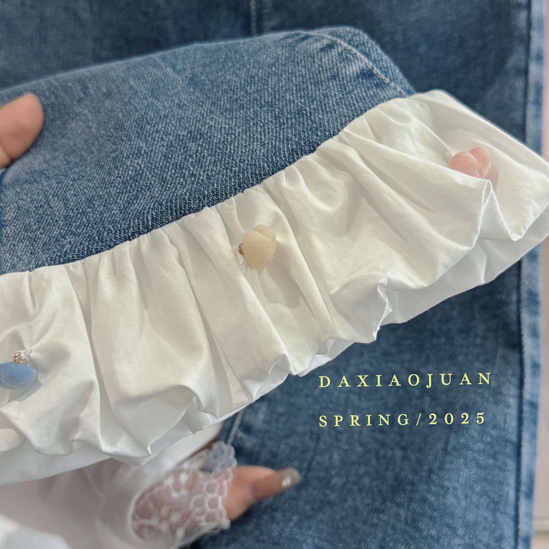 작고 큰 롤 소녀 새로운 사랑 버튼 25 한국 아동복 서양식 올 매치 유행 레이스 플레어 바지 청바지스토어 가기