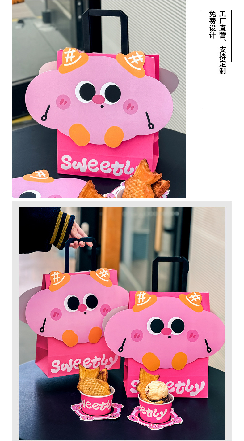 아이스크림 종이 그릇 그물 빨간 도미 구운 일회용 요구르트 상자 모양의 테이크 아웃 휴대용 종이 가방 상업 로고