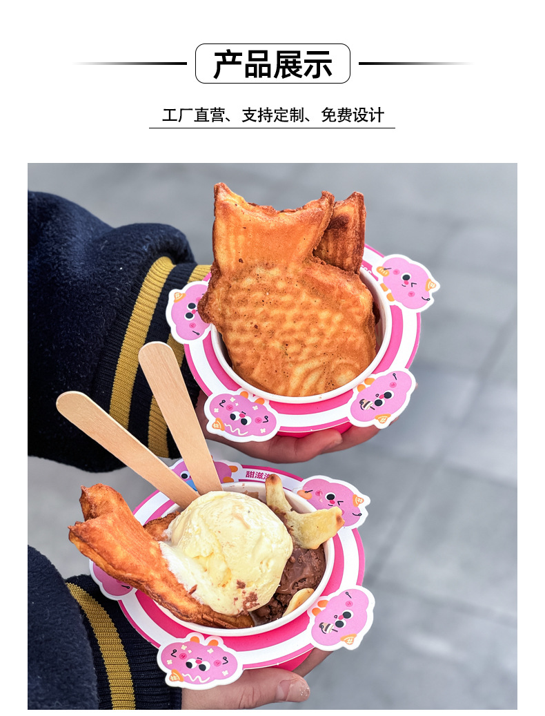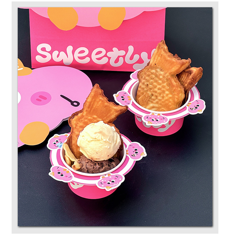 아이스크림 종이 그릇 그물 빨간 도미 구운 일회용 요구르트 상자 모양의 테이크 아웃 휴대용 종이 가방 상업 로고스토어 가기