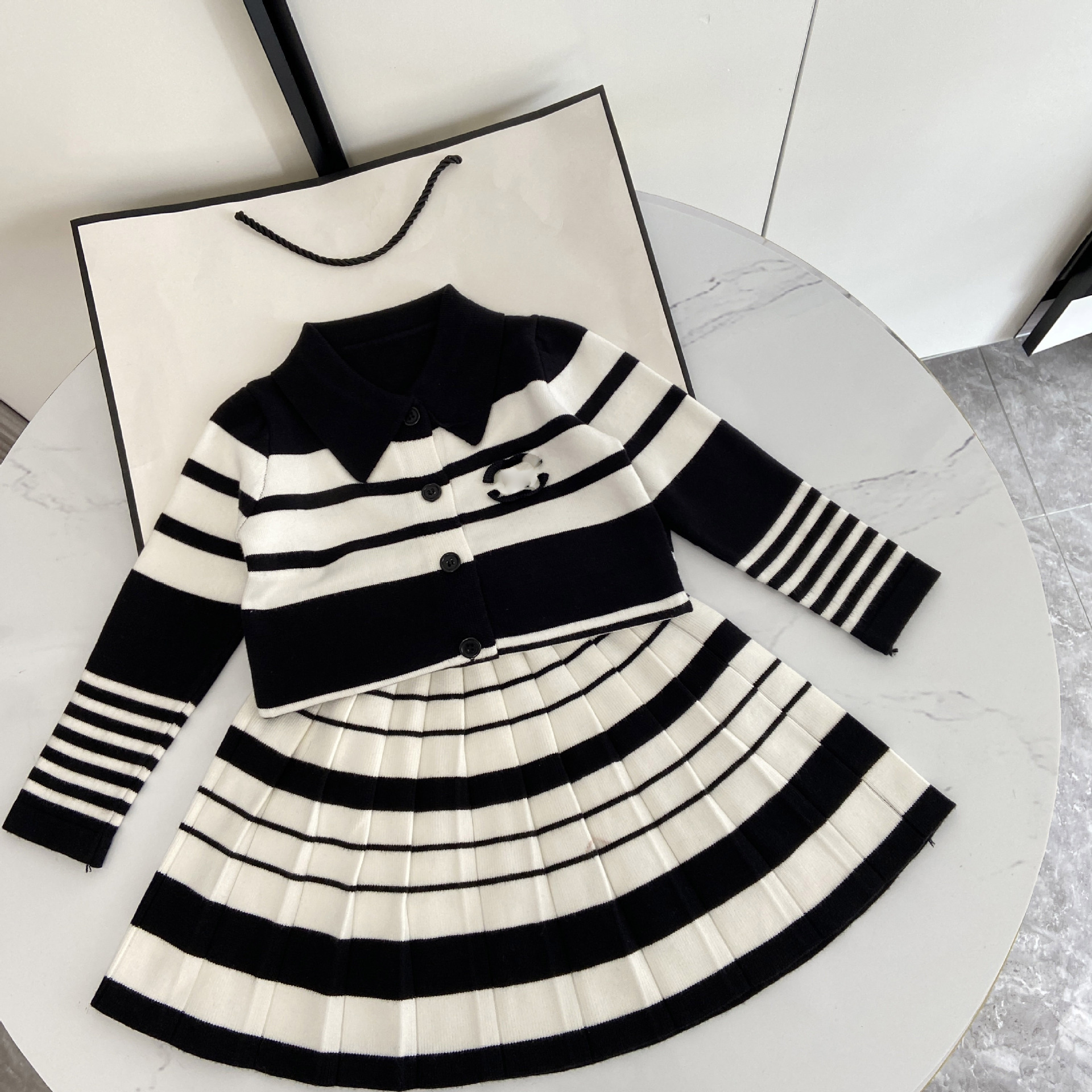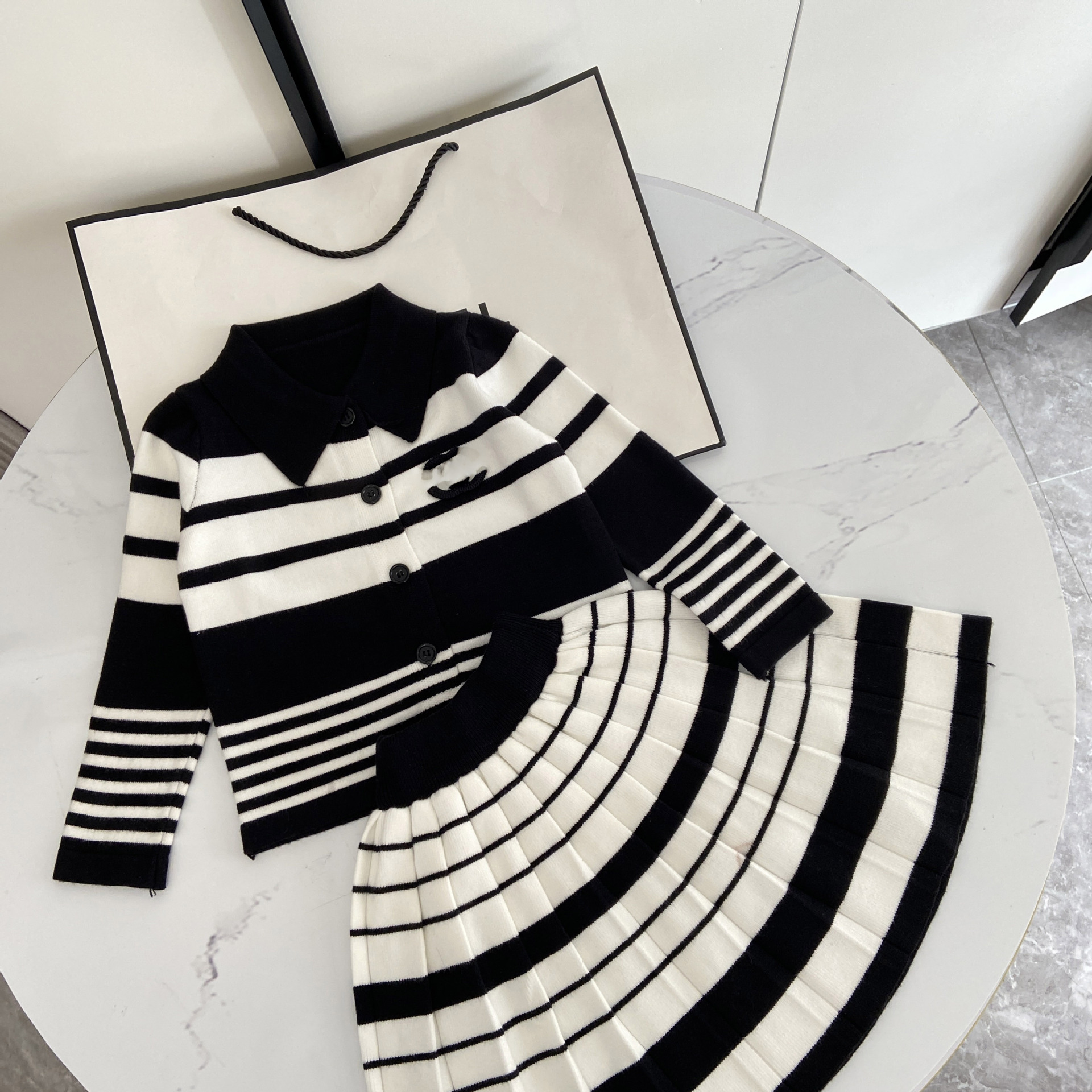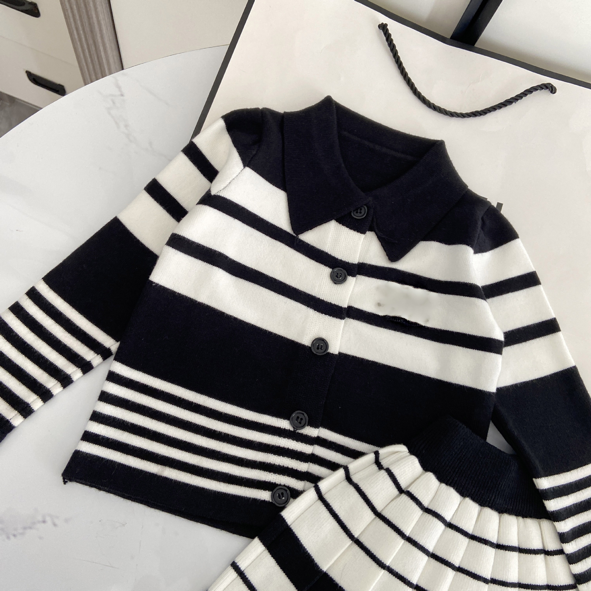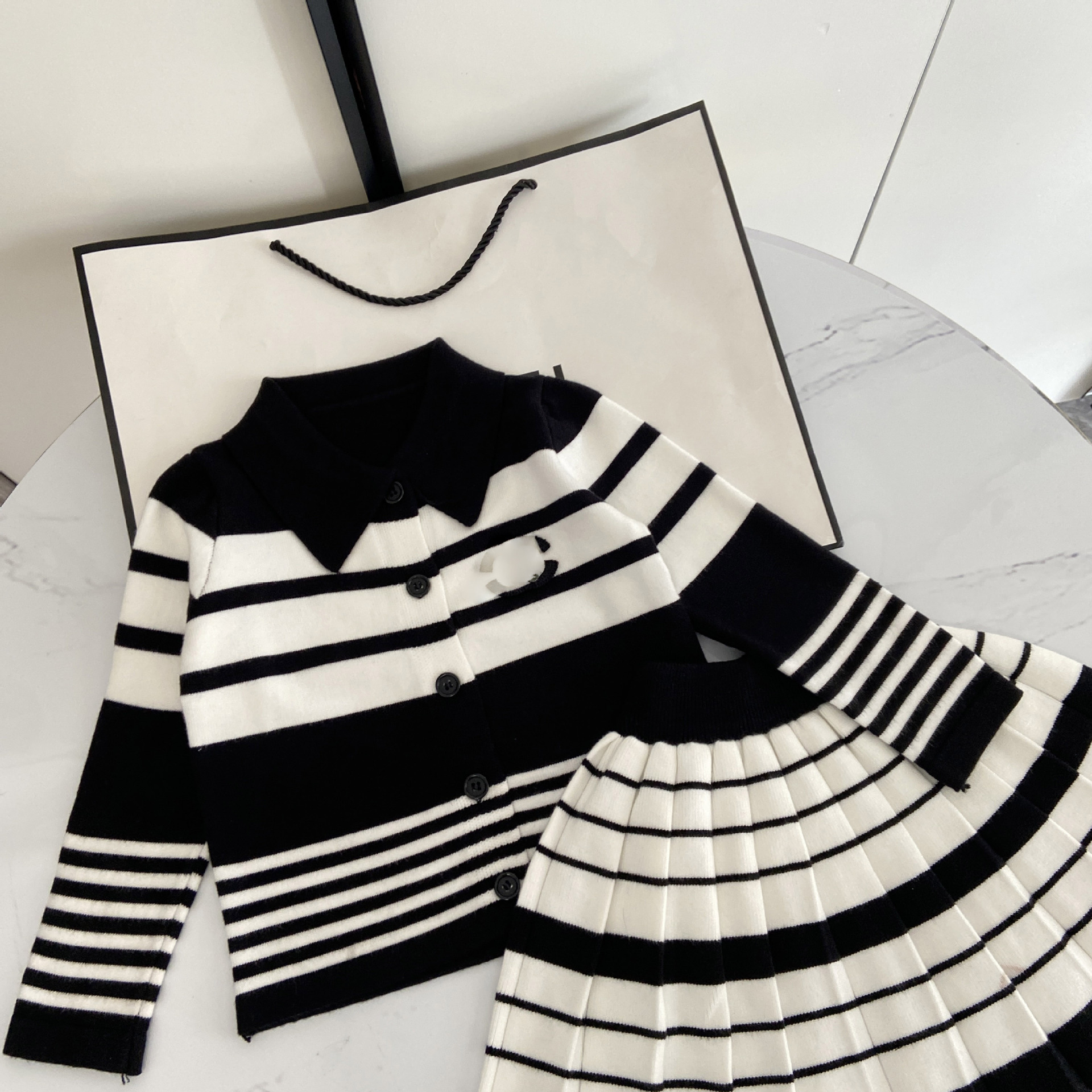 여아 스커트 슈트 2025 소프트 컬리지 플리츠 스커트 투피스 세트 봄, 가을 탑과 니트 스웨터