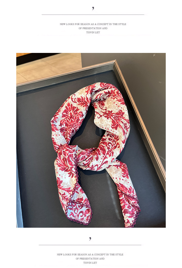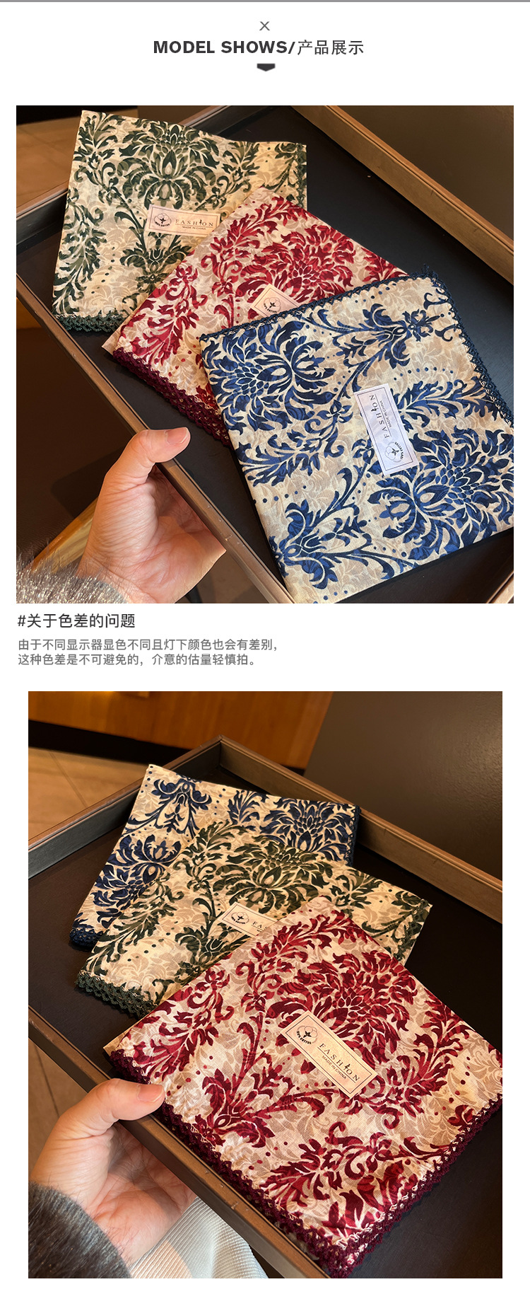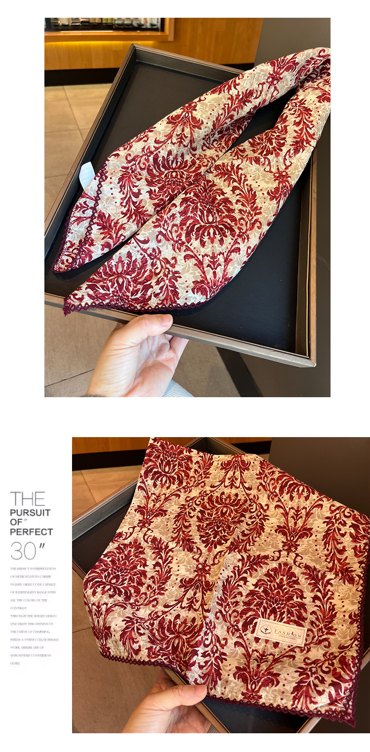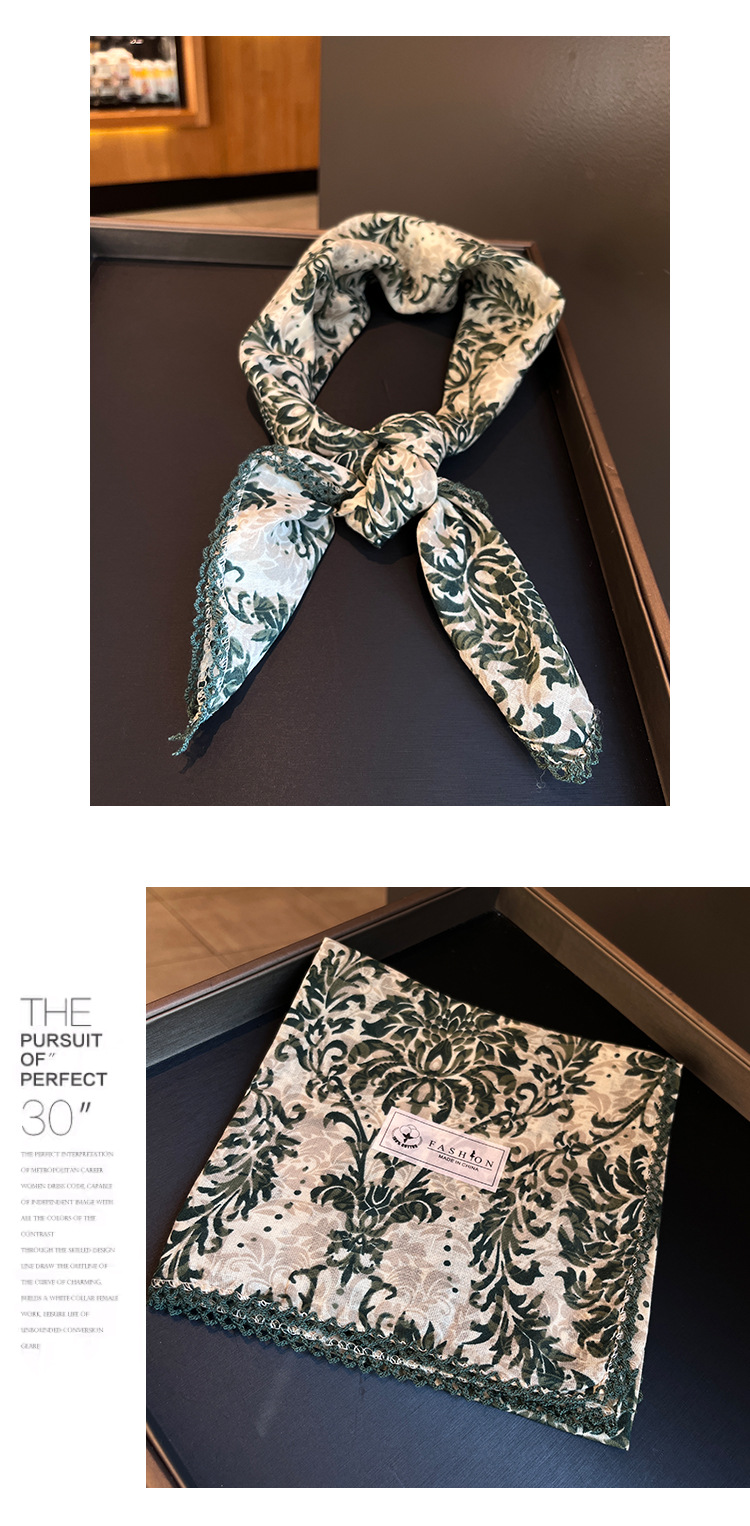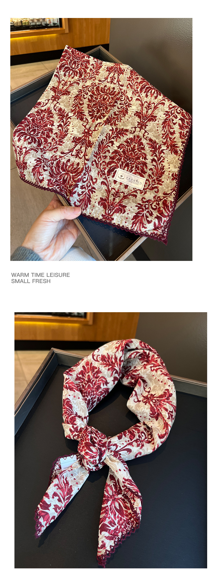 한국 스타일 신선한 스타일 꽃 올매치 작은 광장 스카프 여성 목가적 인 스타일 예술적 장식 스카프 헤드 스카프 봄면 및 리넨 스카프