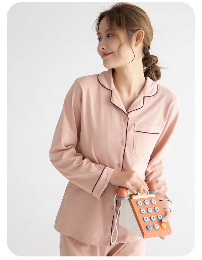 순면 잠옷 세트 여성 커플 잠옷 봄과 가을 긴 소매 카디건 단색 홈 옷 파자마스토어 가기