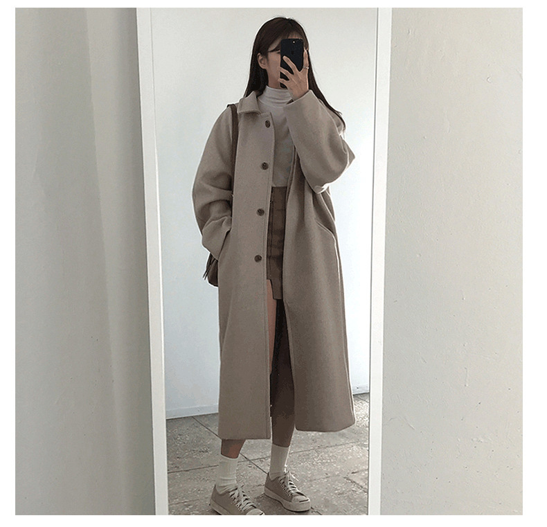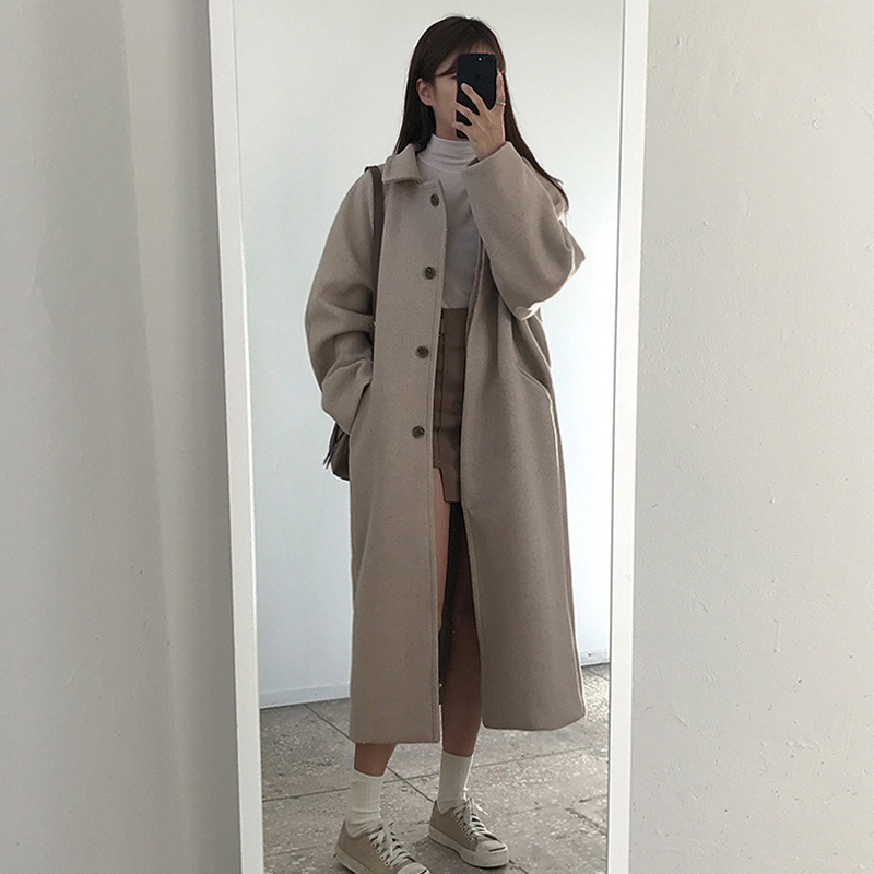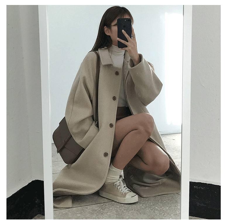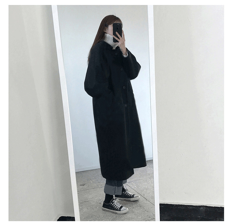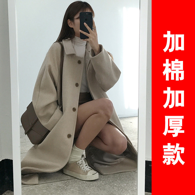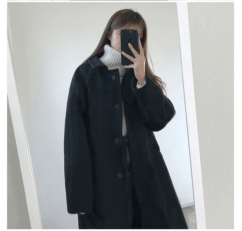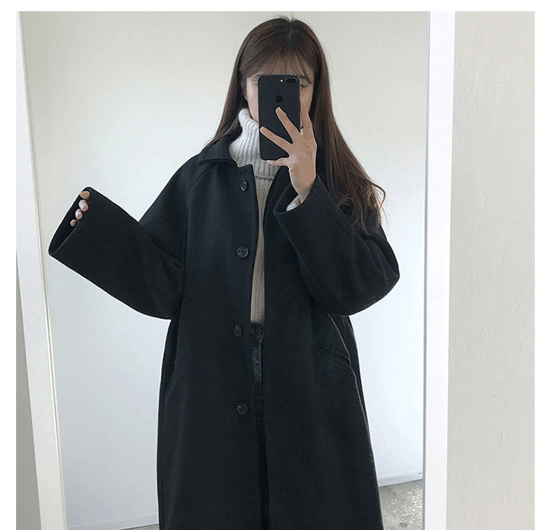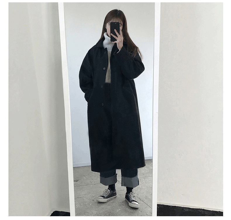 가을과 겨울 2024 새로운 한국식 면 두꺼운 싱글 브레스트 블랙 코트 모직 코트 여성 학생 중간스토어 가기