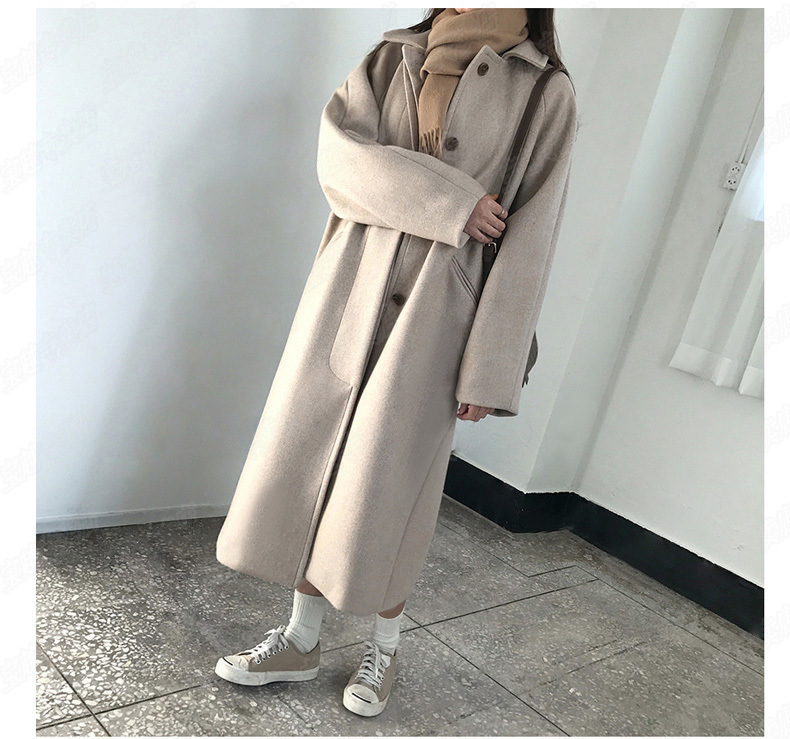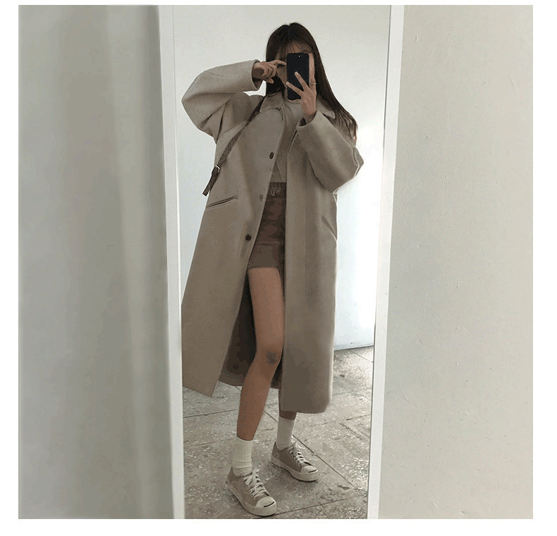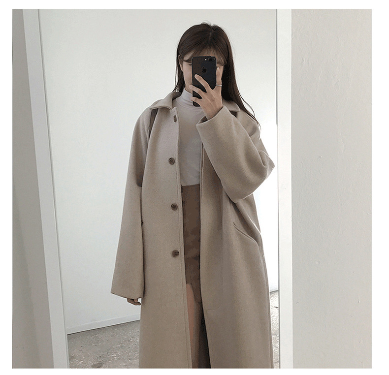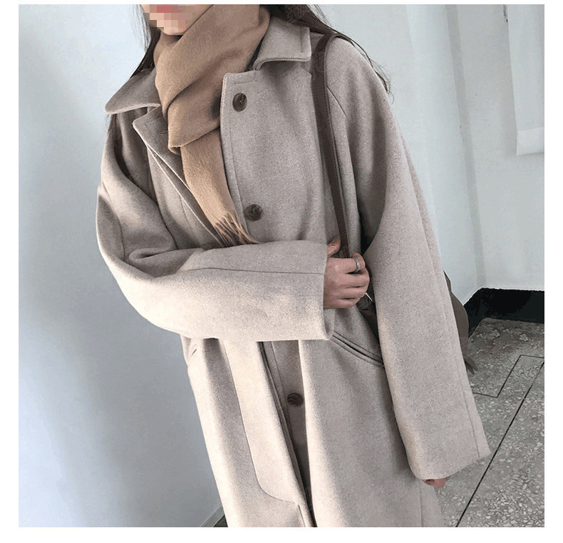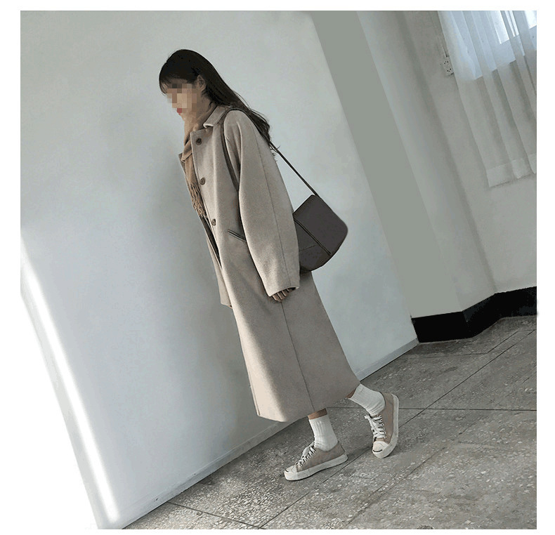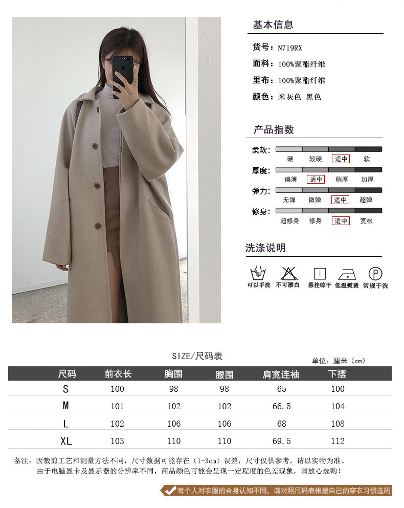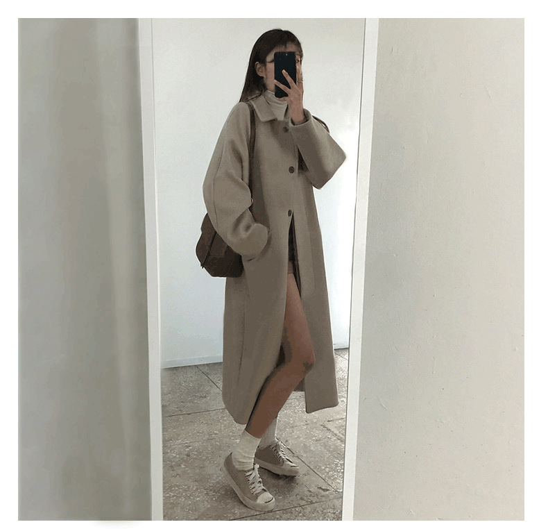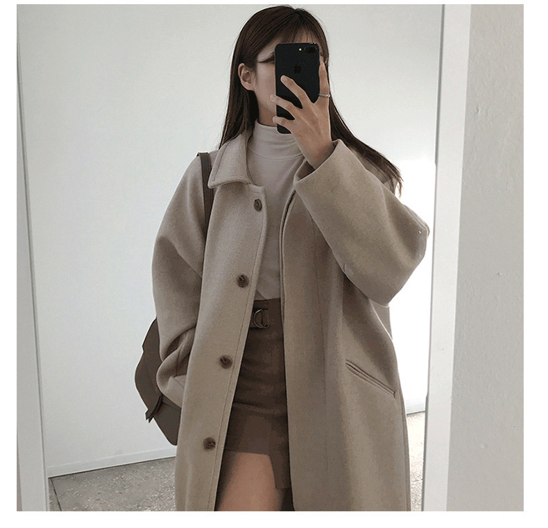 가을과 겨울 2024 새로운 한국식 면 두꺼운 싱글 브레스트 블랙 코트 모직 코트 여성 학생 중간스토어 가기