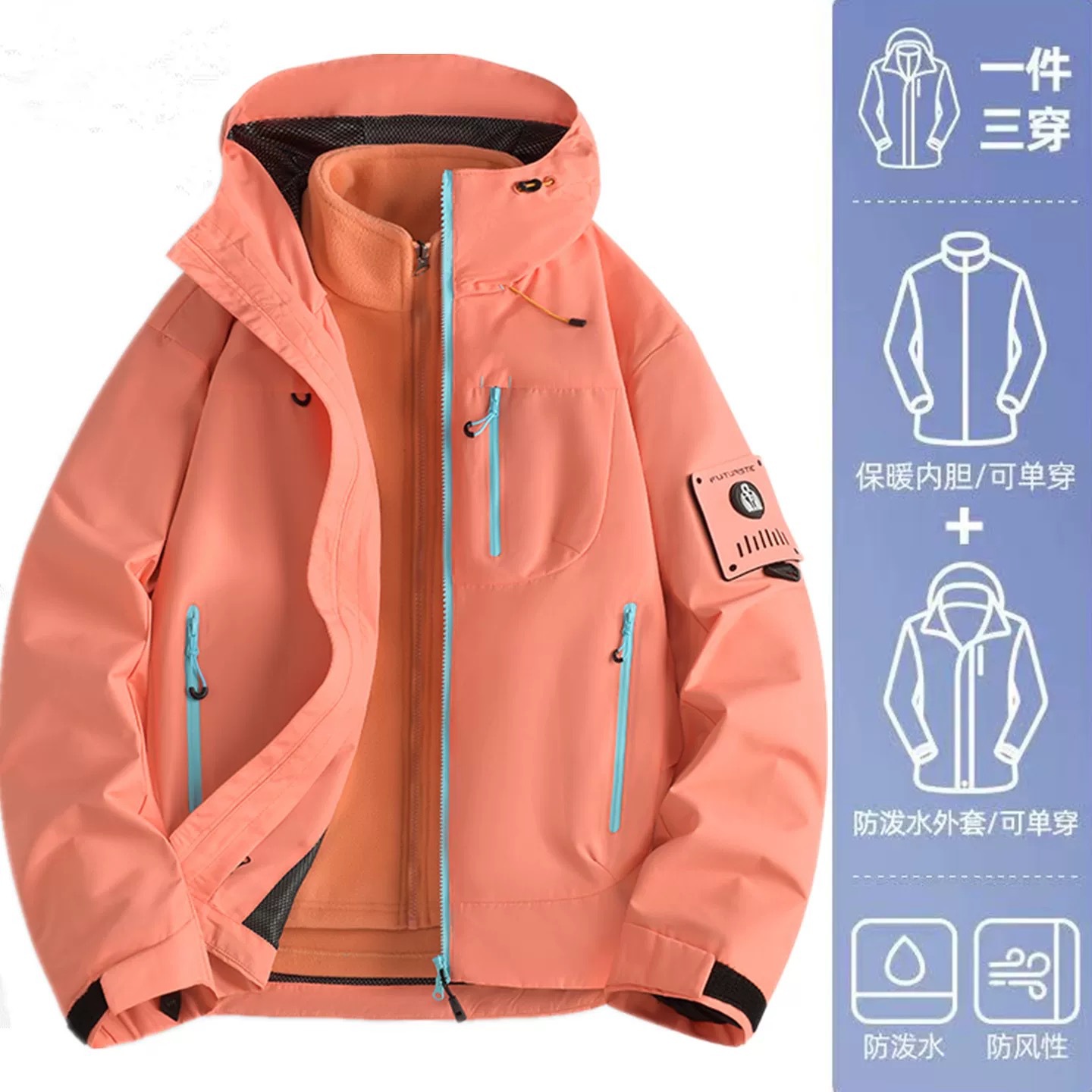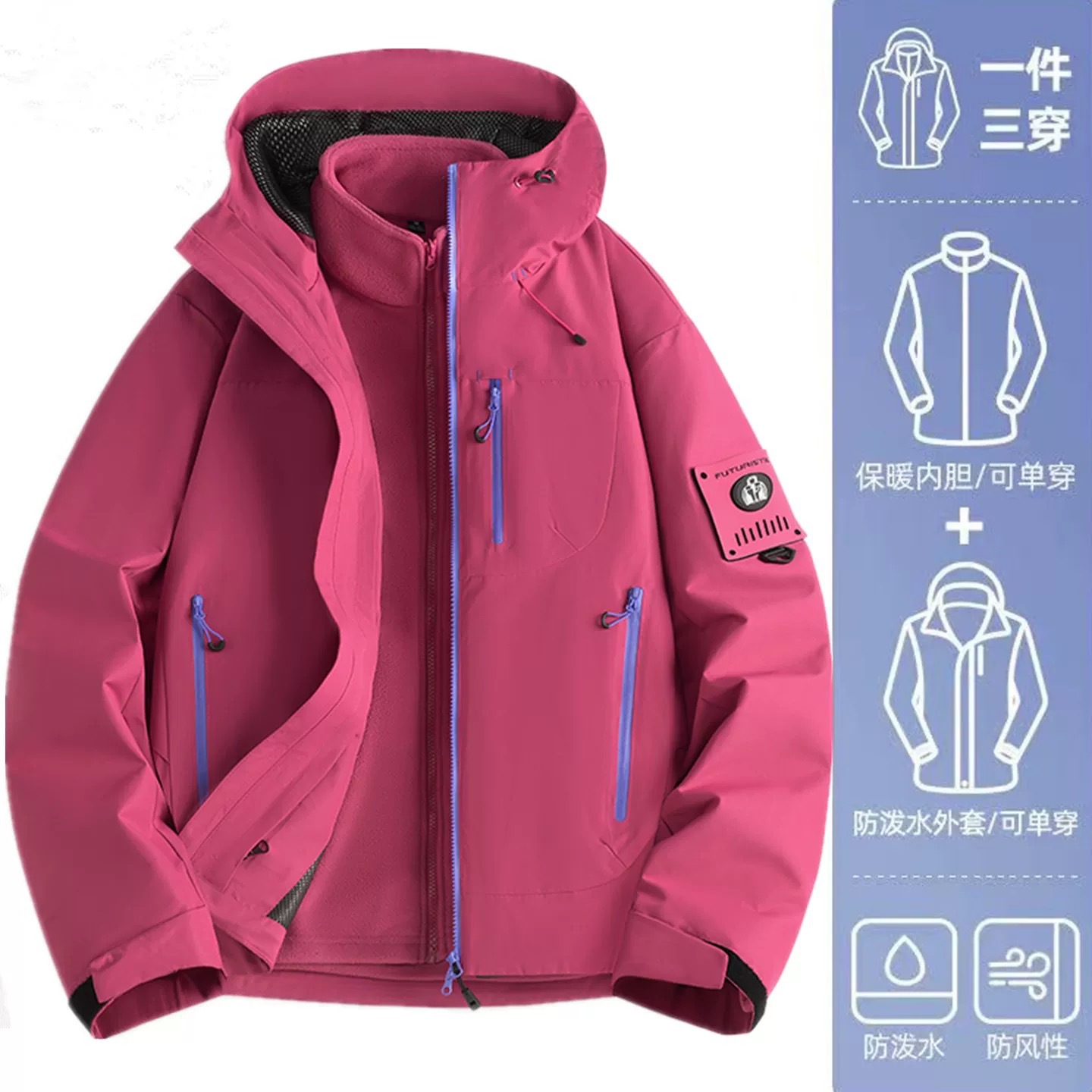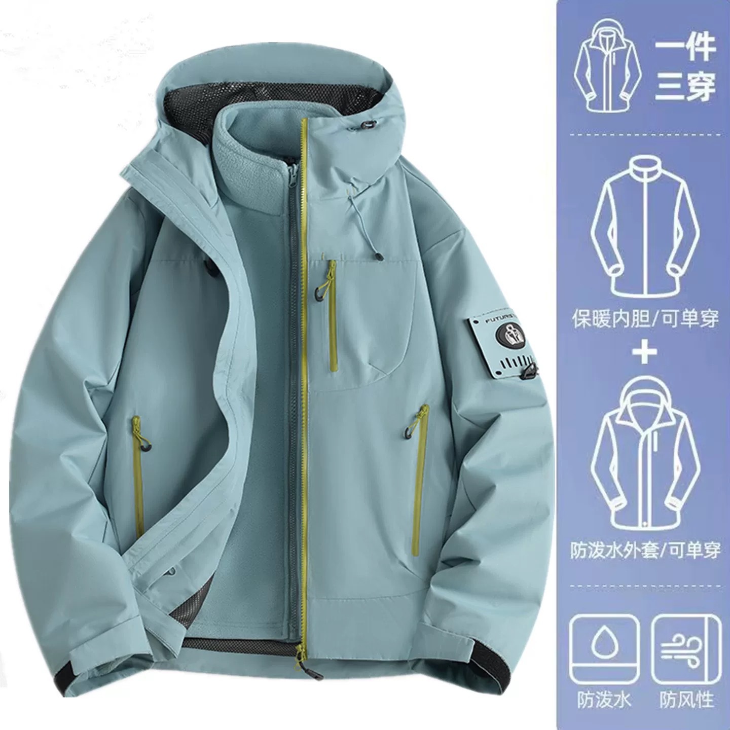 여성용 삼합일 후드 재킷 남성용 아웃도어 방풍 방수 패션 캐주얼 등산복 상의
