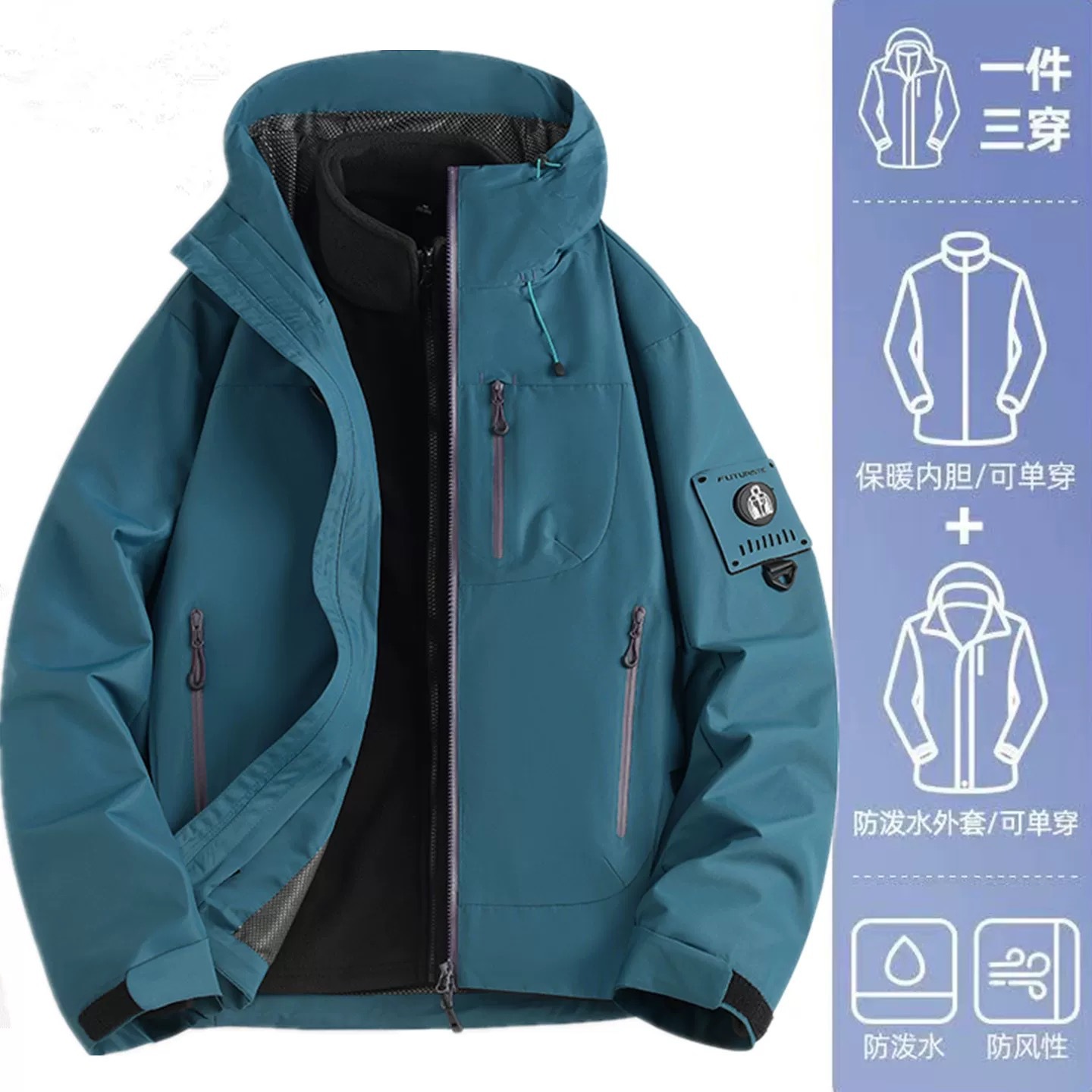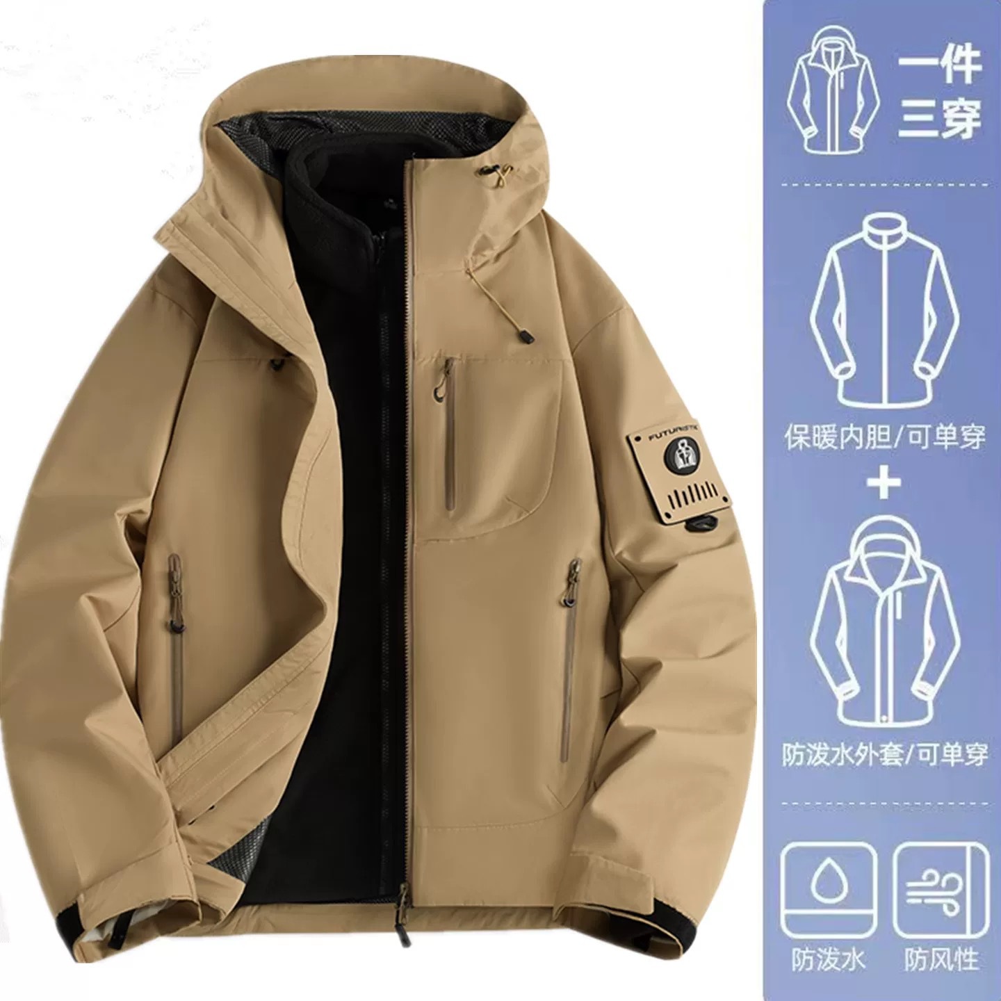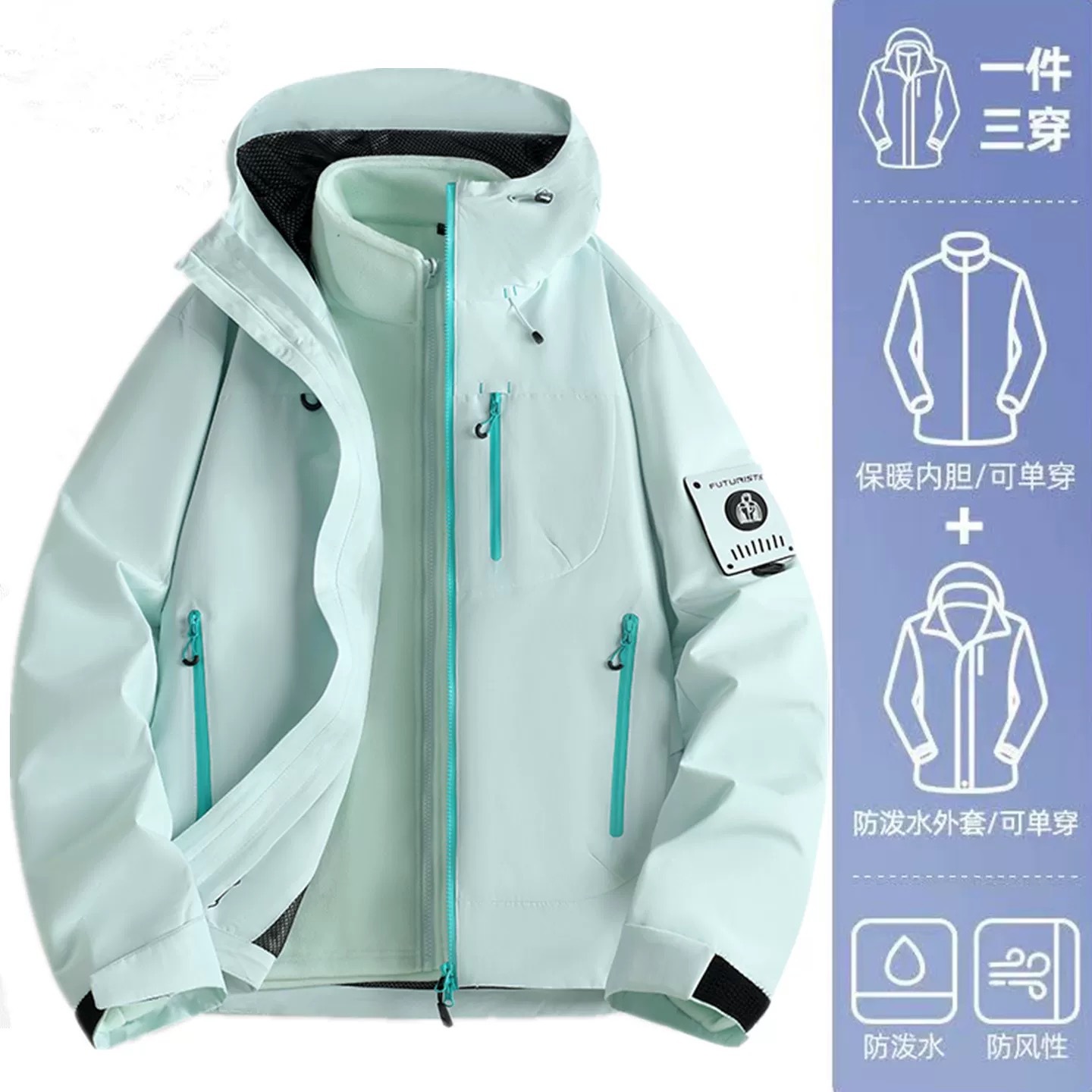 여성용 삼합일 후드 재킷 남성용 아웃도어 방풍 방수 패션 캐주얼 등산복 상의