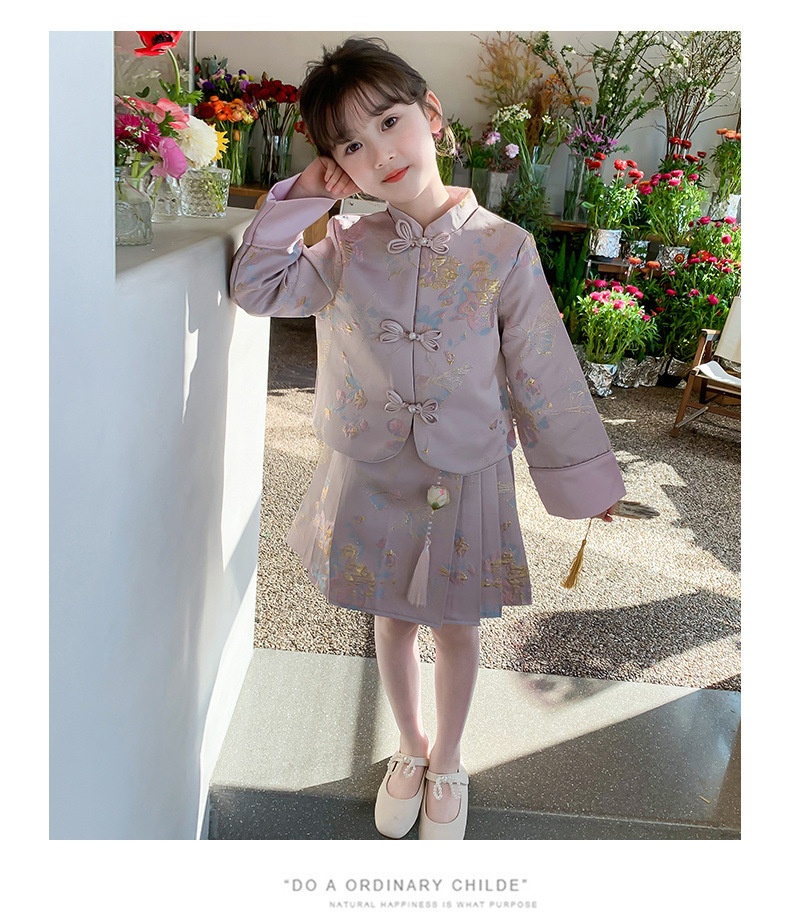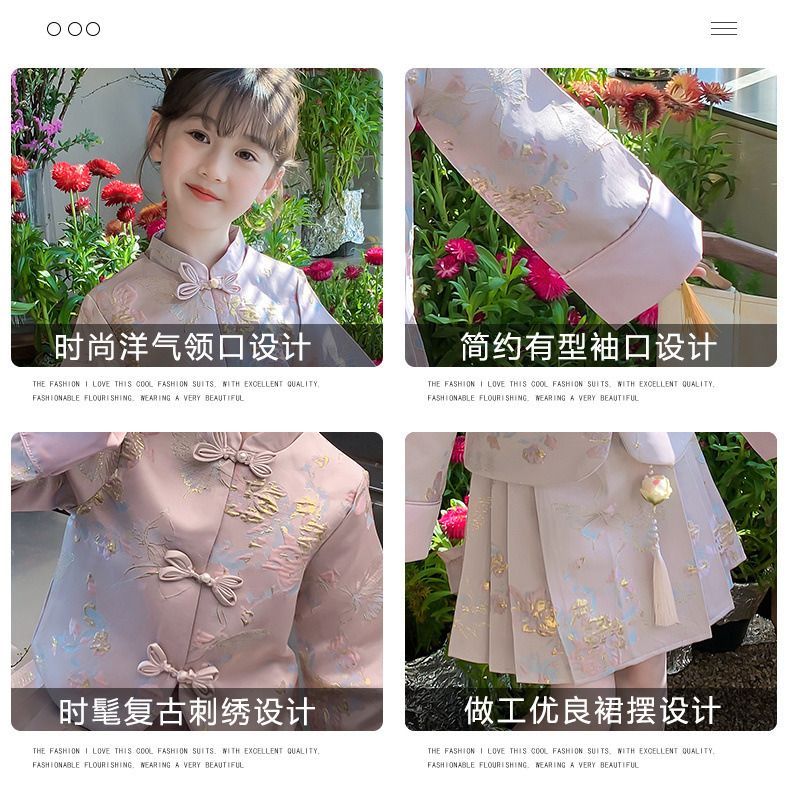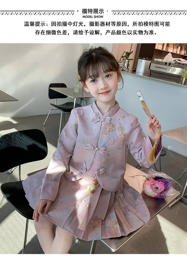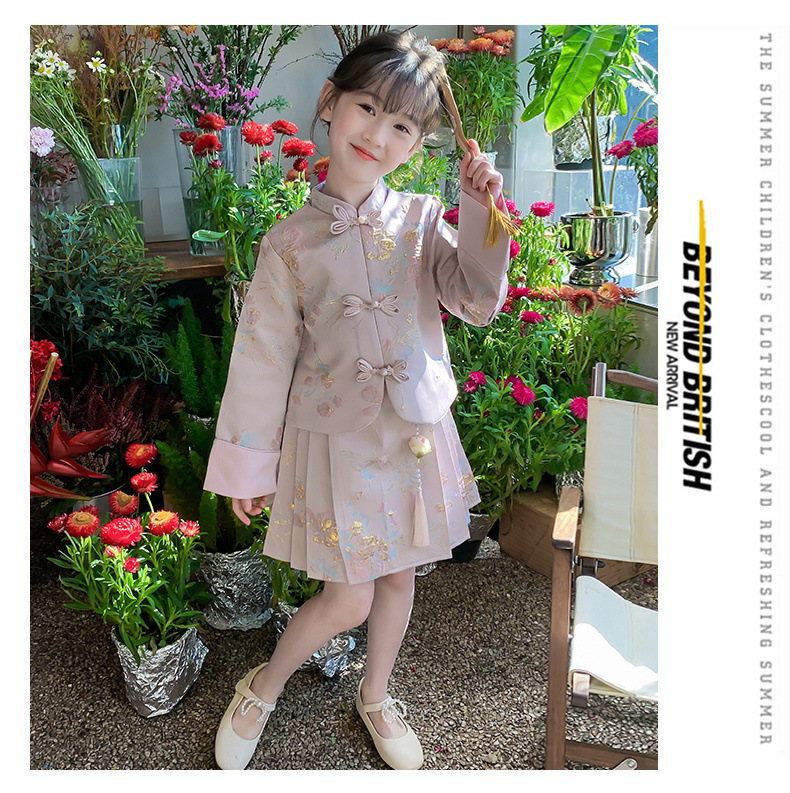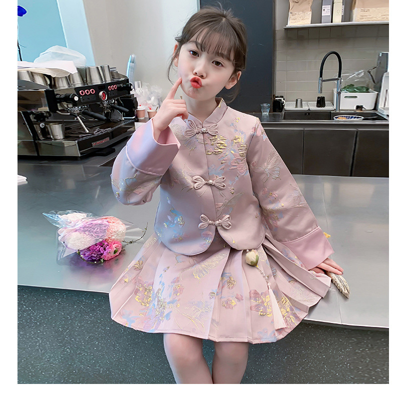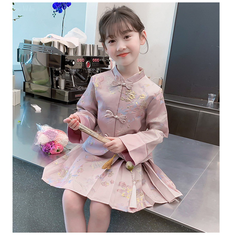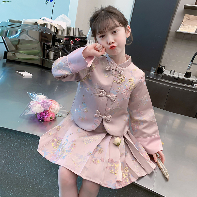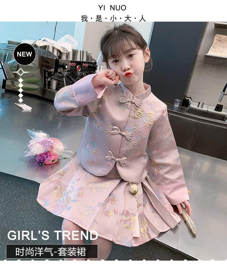 소녀의 봄 원피스 2024 새로운 원피스 어린이 한푸 새로운 중국 스타일 세트 어린 소녀들을위한 봄과 가을 원피스
