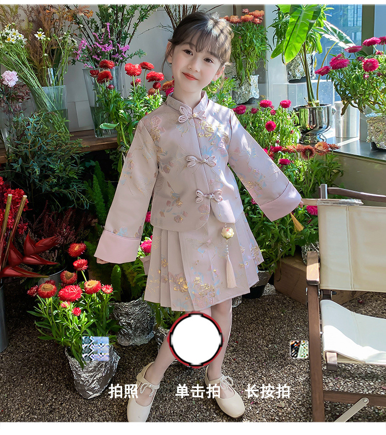 소녀의 봄 원피스 2024 새로운 원피스 어린이 한푸 새로운 중국 스타일 세트 어린 소녀들을위한 봄과 가을 원피스스토어 가기