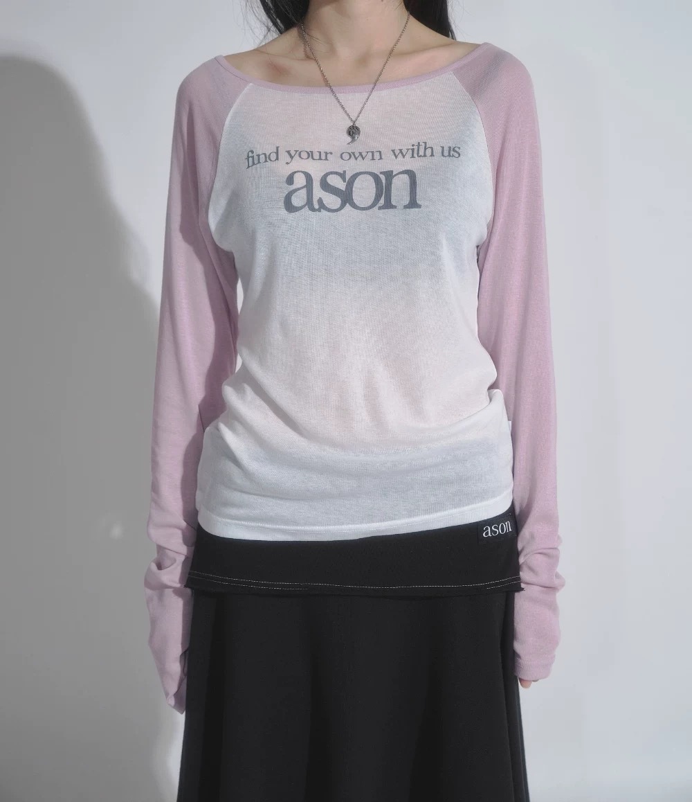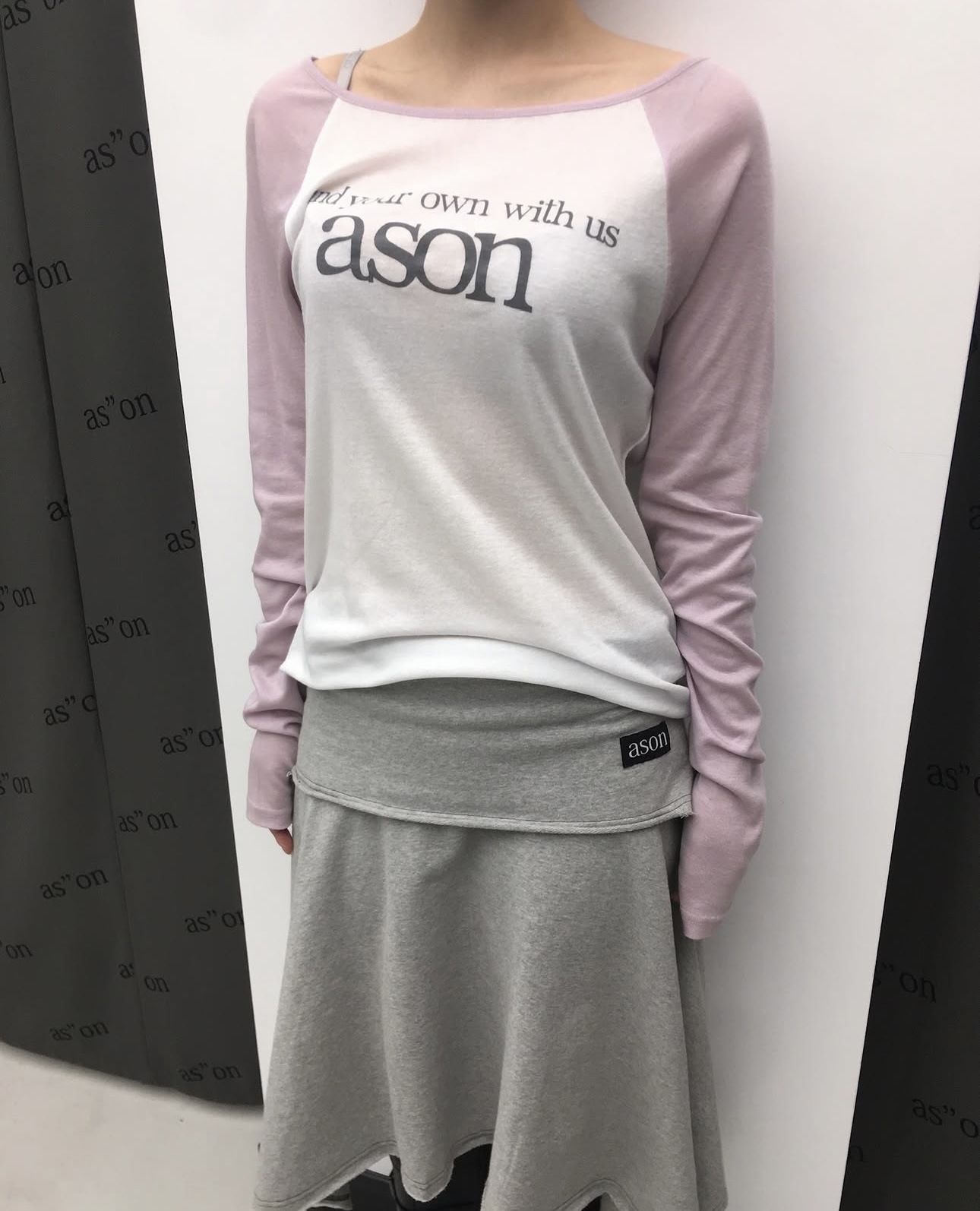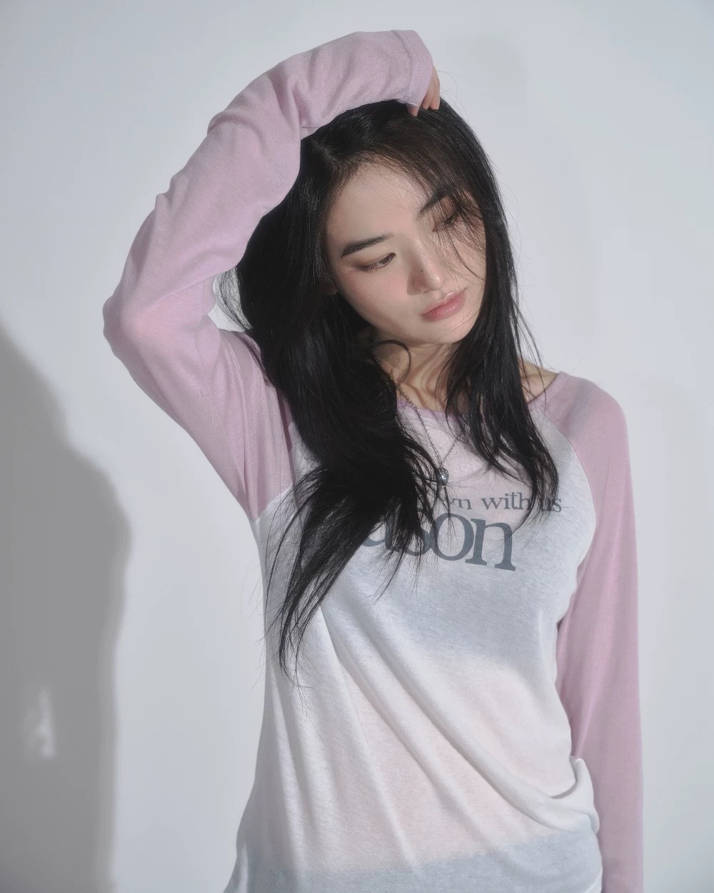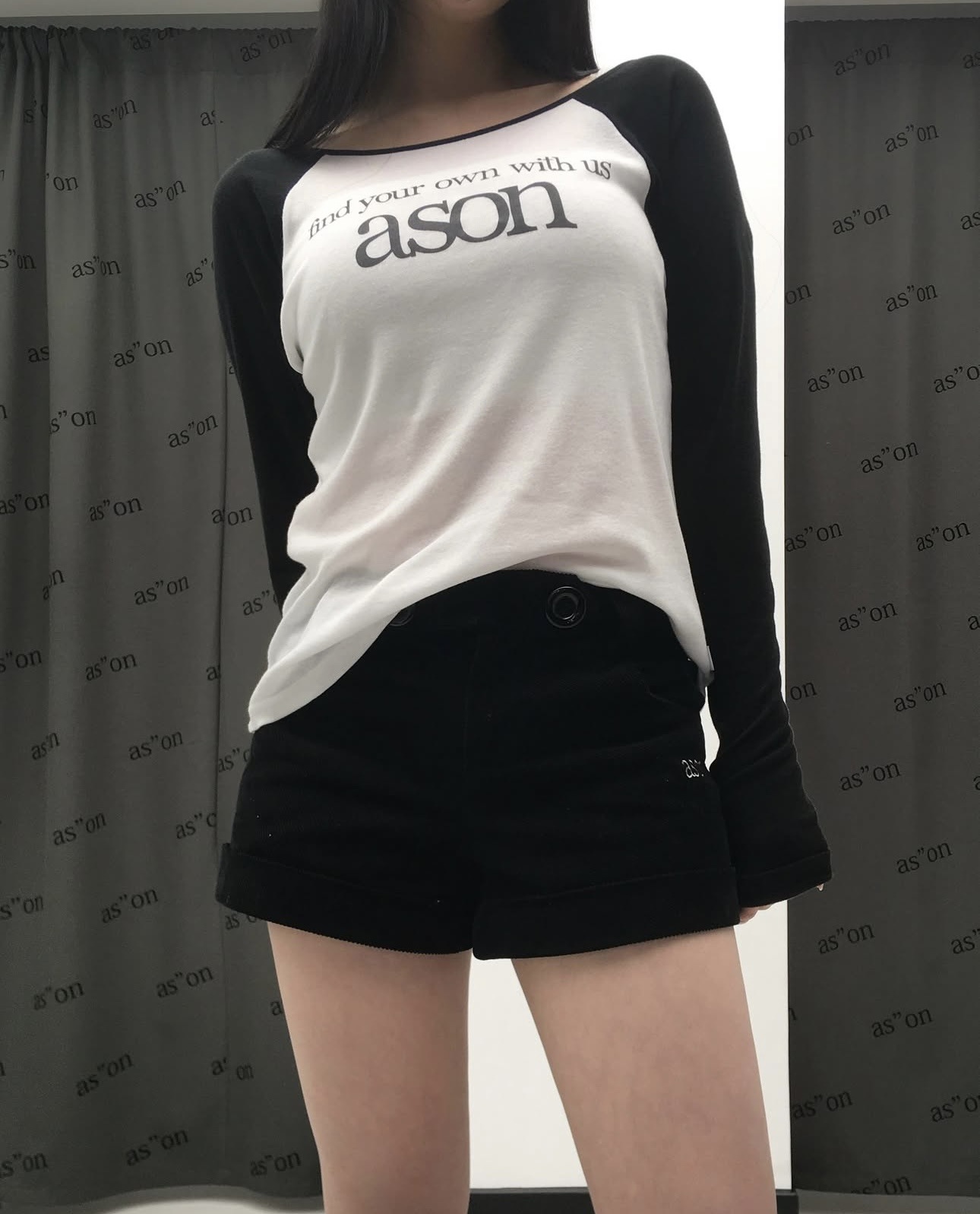 한국판/as*n 레터 프린트 텐셀 원단 배색 래글런 슬리브 라운드넥 베이직 긴팔 티셔츠 여성용