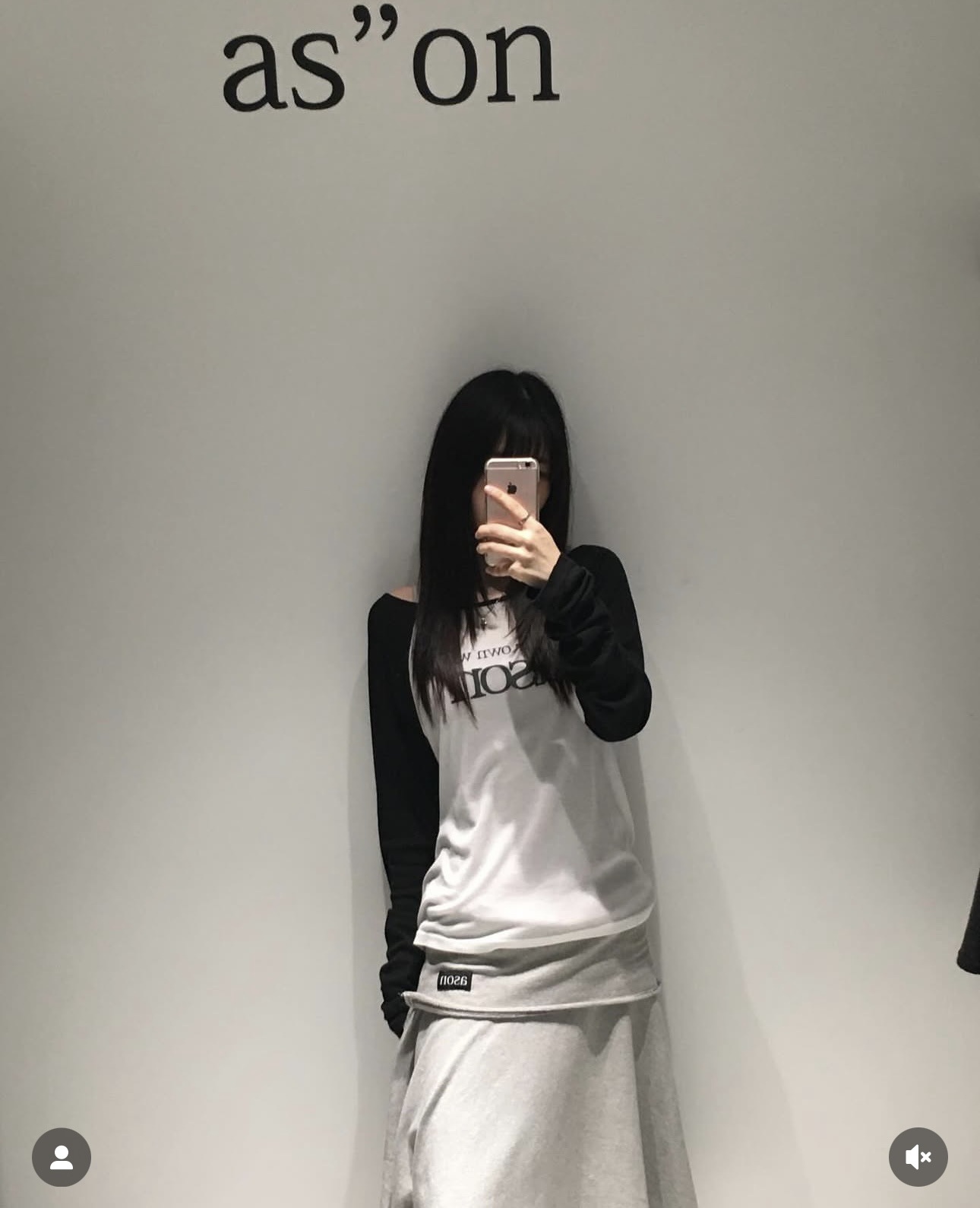 한국판/as*n 레터 프린트 텐셀 원단 배색 래글런 슬리브 라운드넥 베이직 긴팔 티셔츠 여성용스토어 가기