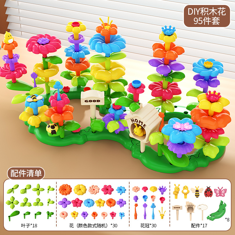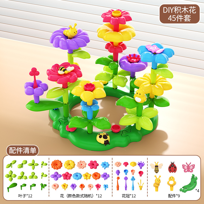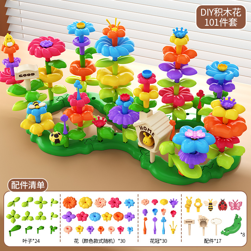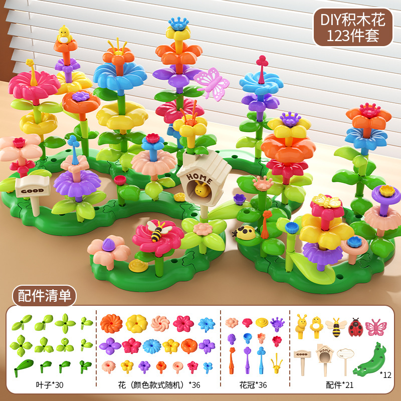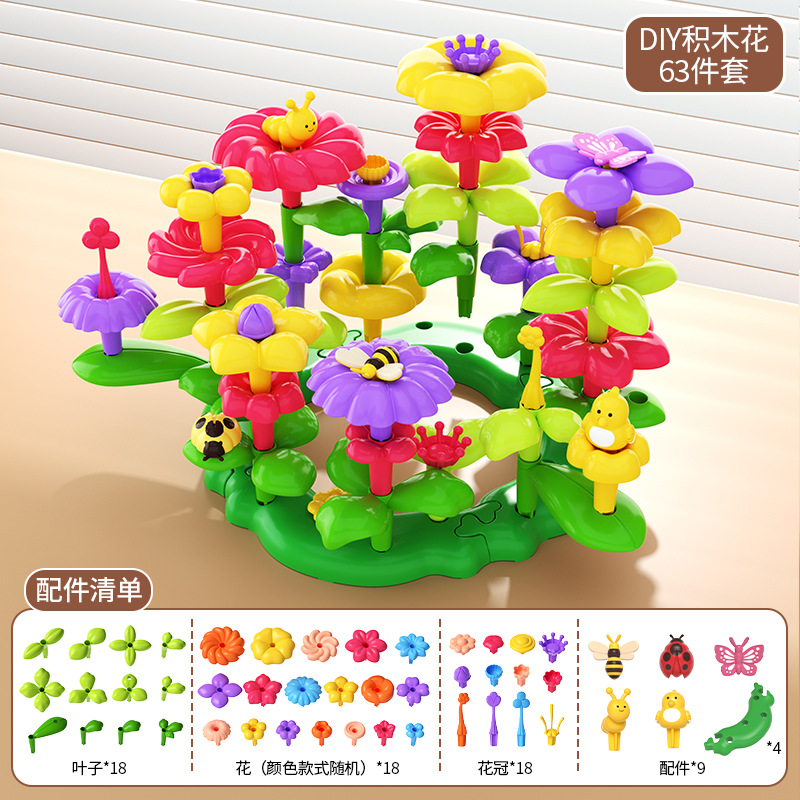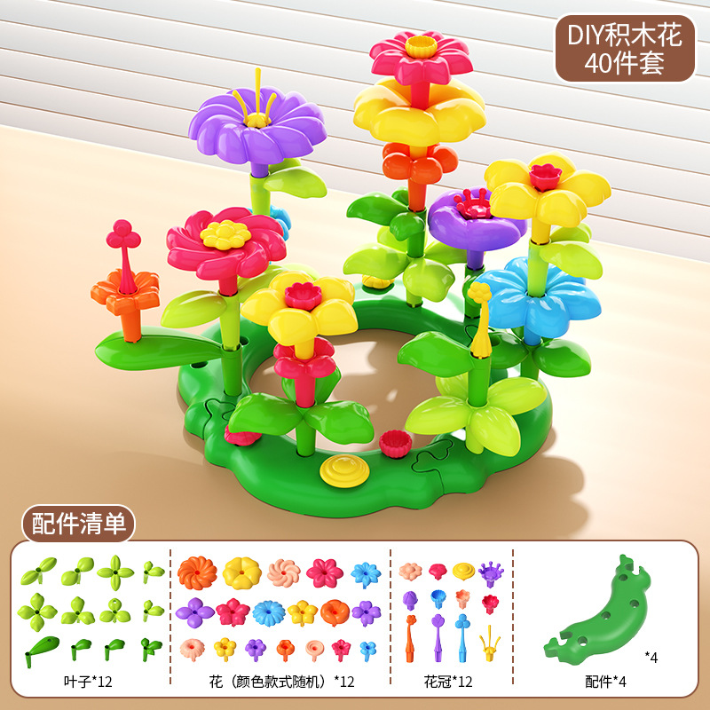 다양한 정원 건물 블록 꽃 조립 장난감 소녀 DIY 삽입 꽃 어린이 플라스틱인지 퍼즐 3-6 세 국경스토어 가기