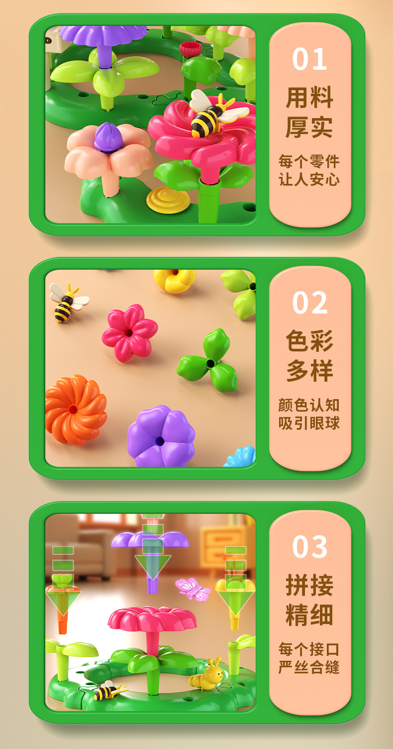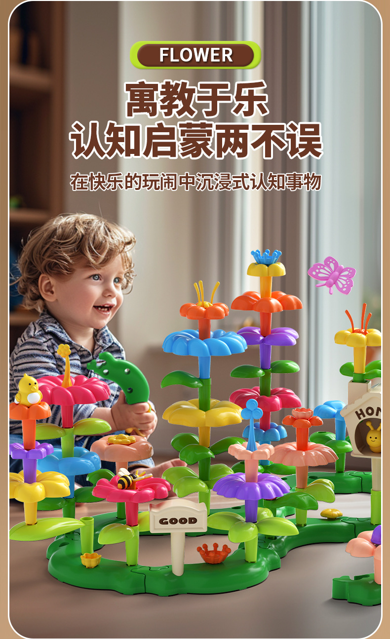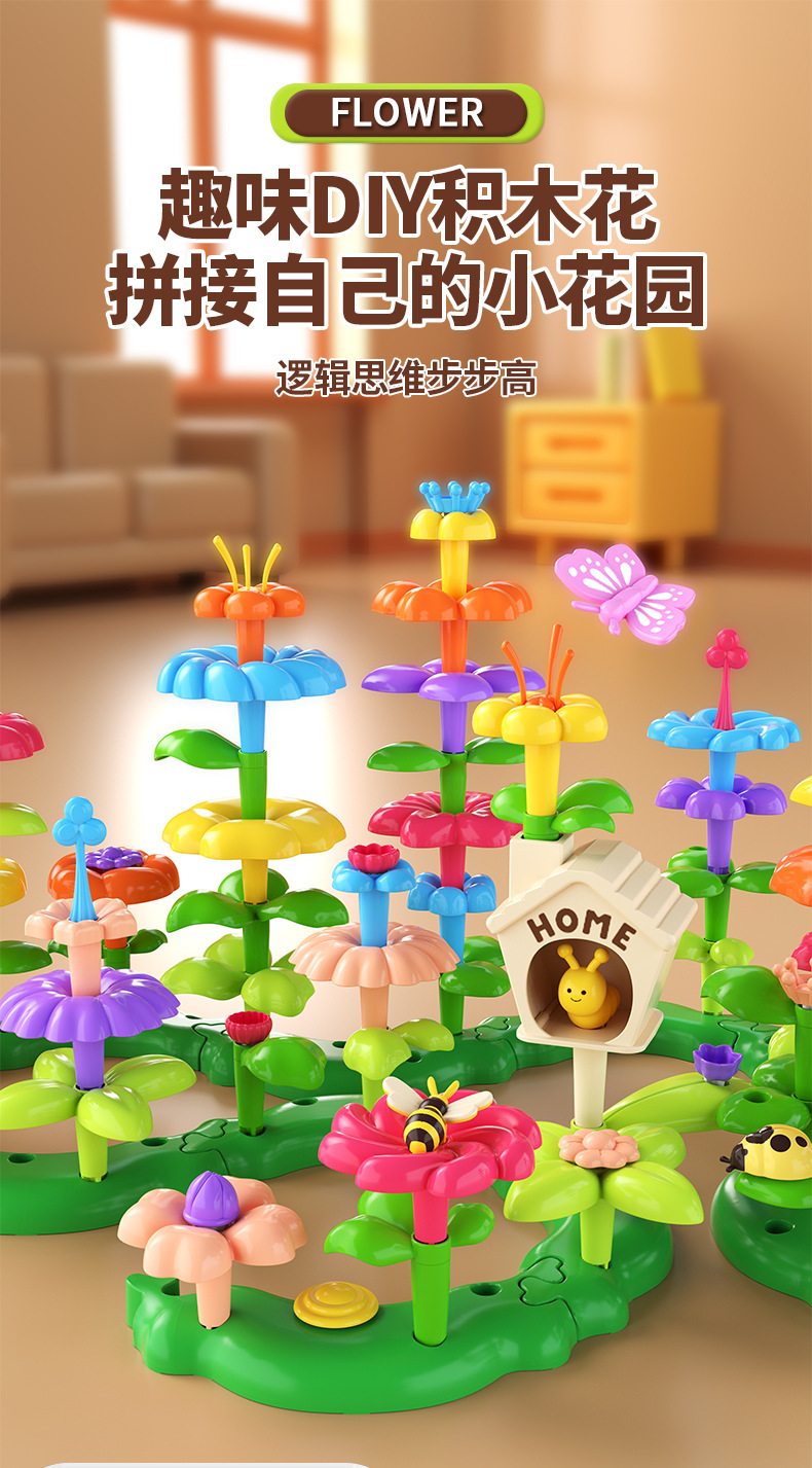 다양한 정원 건물 블록 꽃 조립 장난감 소녀 DIY 삽입 꽃 어린이 플라스틱인지 퍼즐 3-6 세 국경스토어 가기