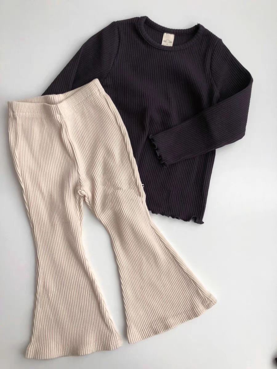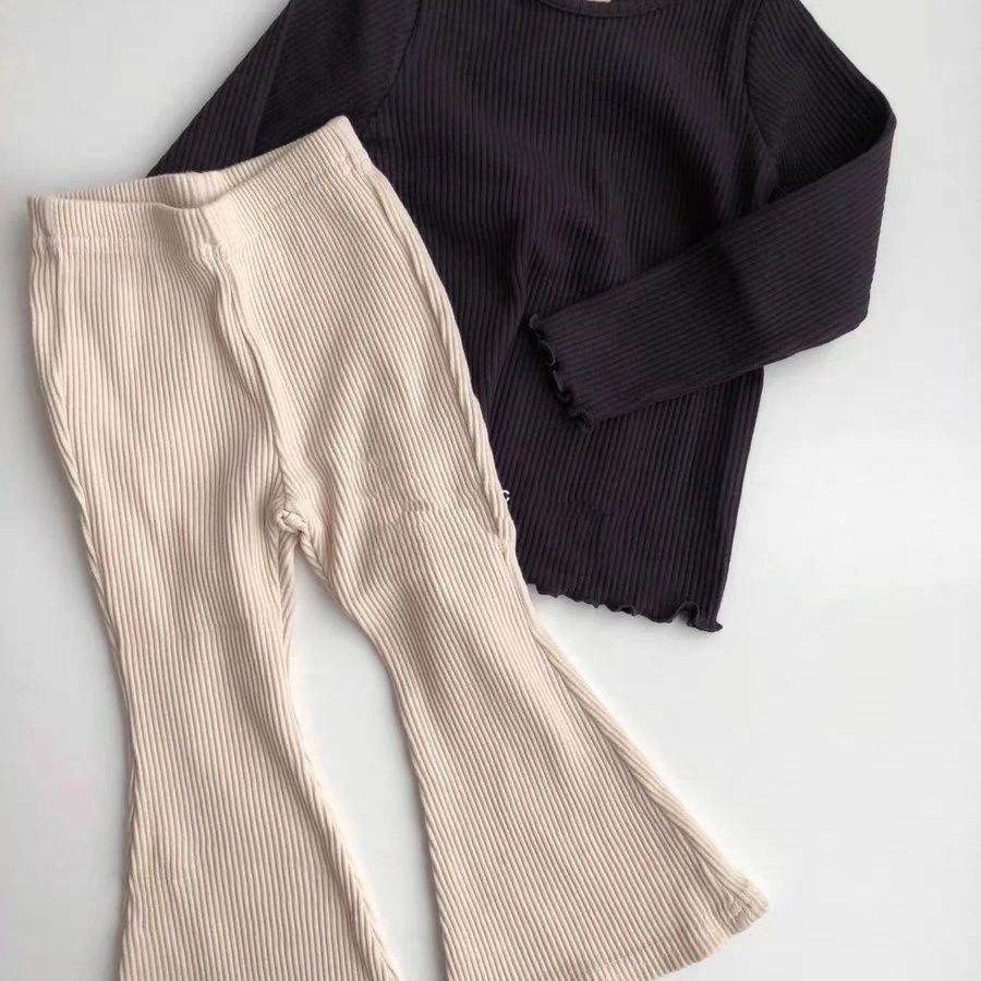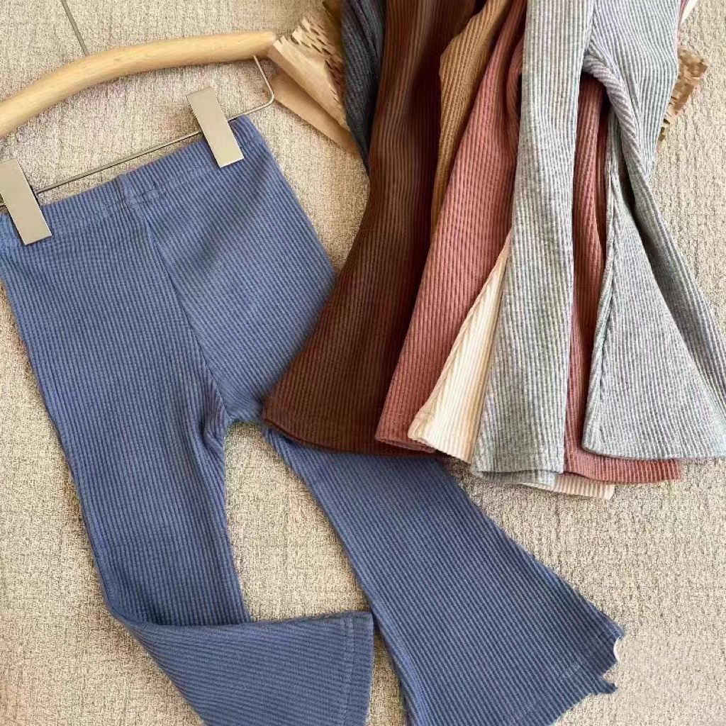 봄과 가을 여성 캐주얼 바지 아기 서양식 어린이 성격 유행 한국 스트레치 핏 단색 Bottoming Flared 바지스토어 가기