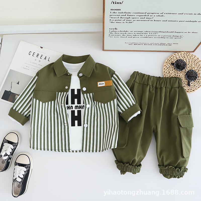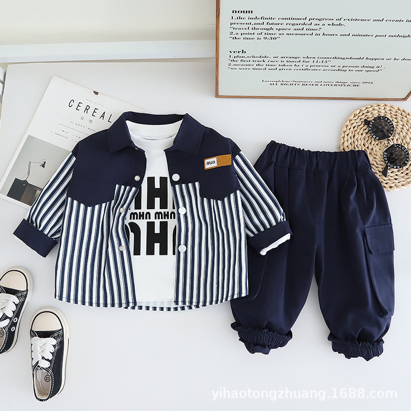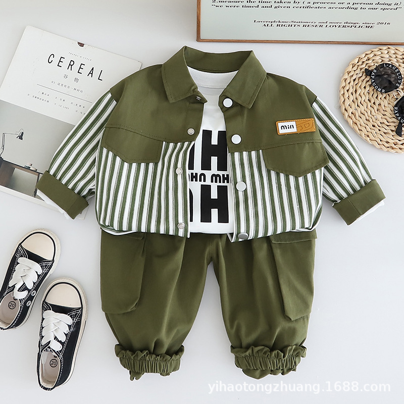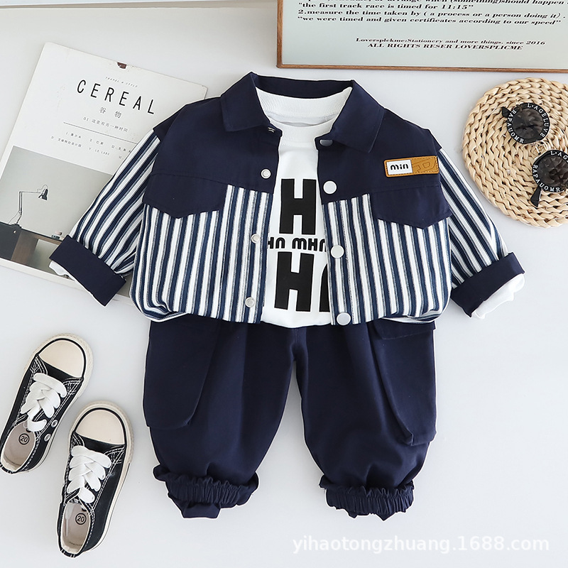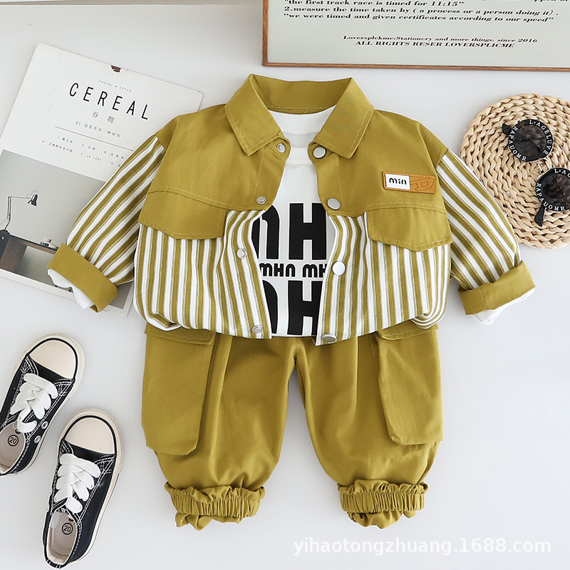 Yihao 아동 의류 소년 정장 새로운 캐주얼 스트라이프 작업복 코트 아동 정장 가을 아기 소년 옷