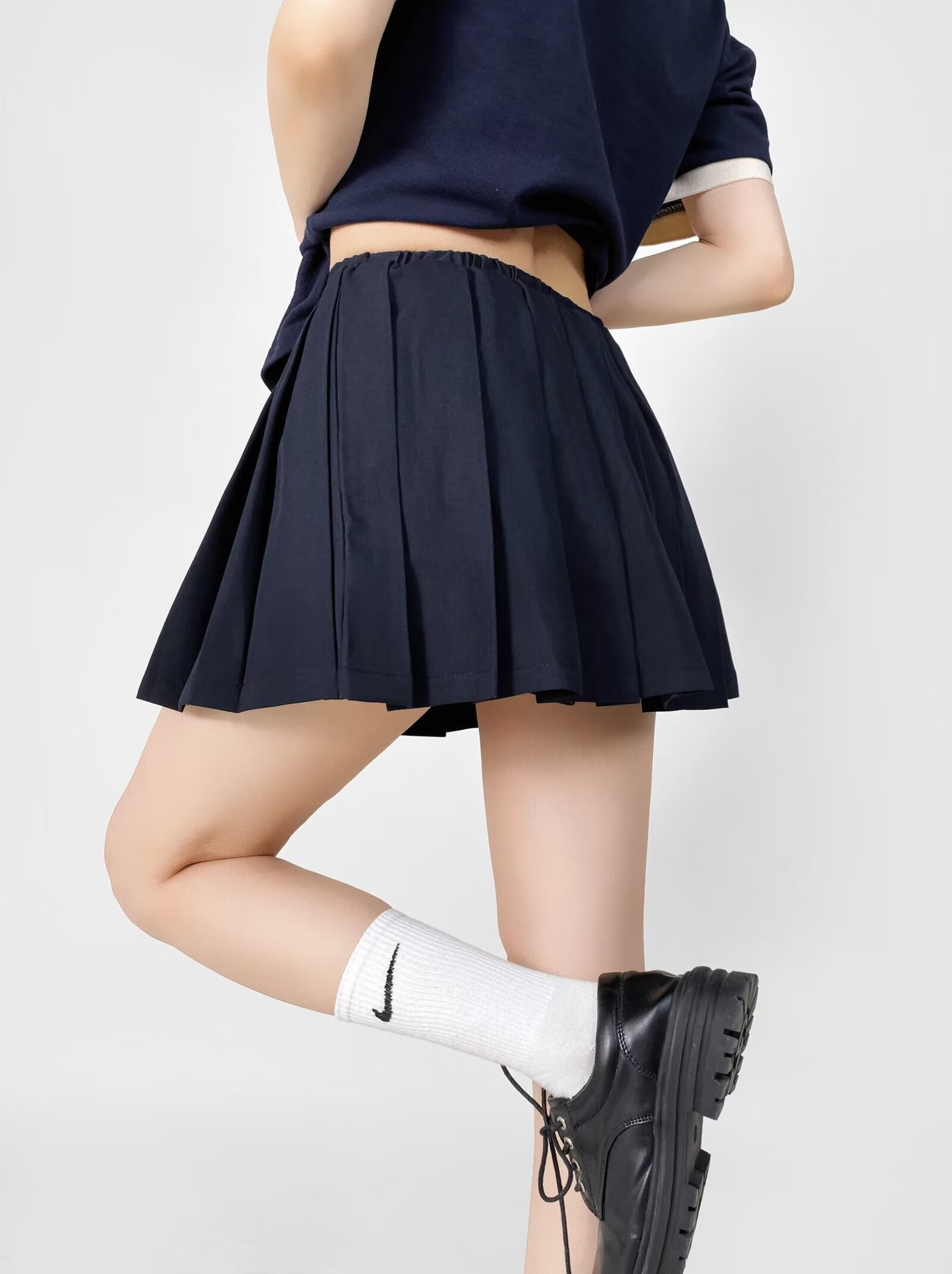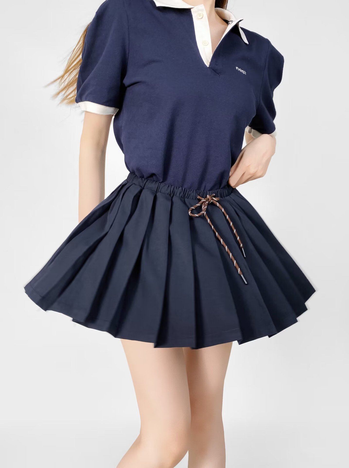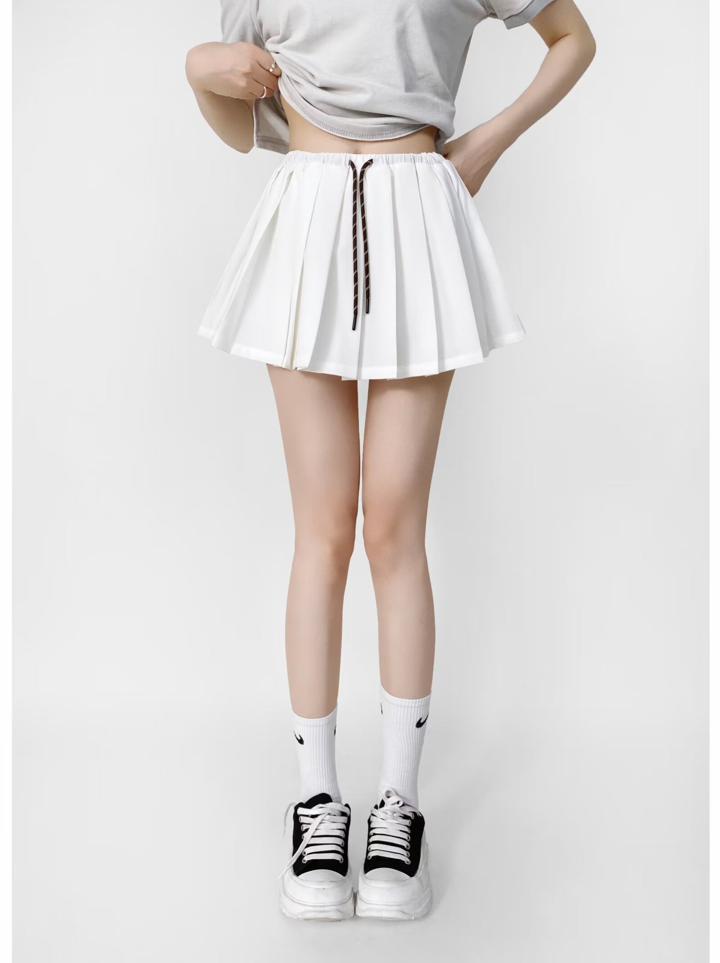 달콤하고 매운 낮은 허리 끈 주름 치마 스커트 여름 새로운 학술 스타일 안티 러닝 A 라인 쇼트 스커트 미니 스커트 여성스토어 가기