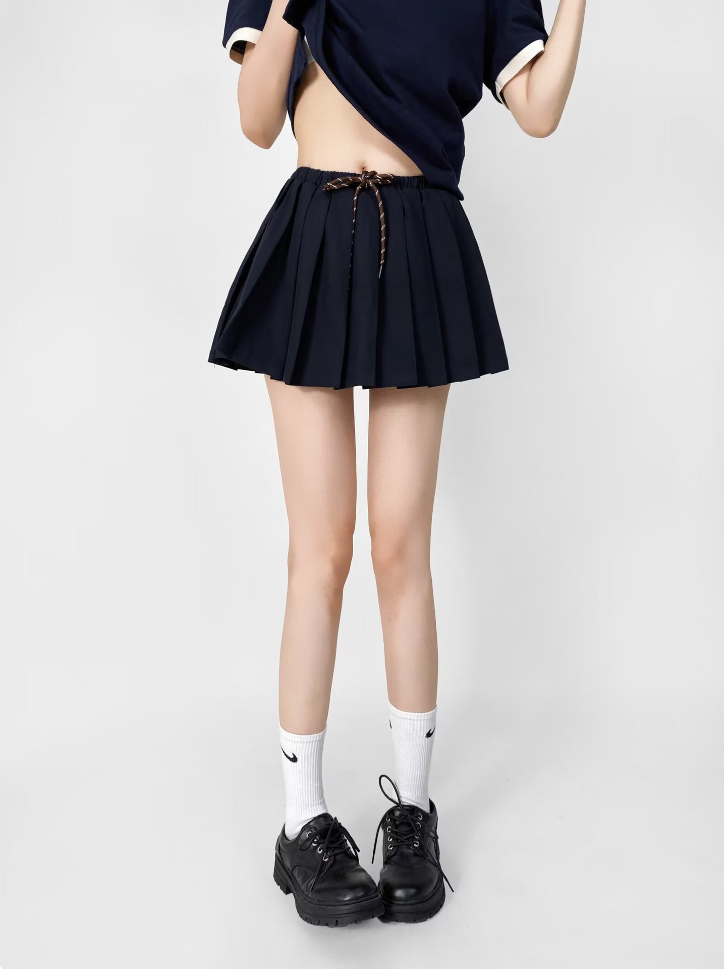 달콤하고 매운 낮은 허리 끈 주름 치마 스커트 여름 새로운 학술 스타일 안티 러닝 A 라인 쇼트 스커트 미니 스커트 여성
