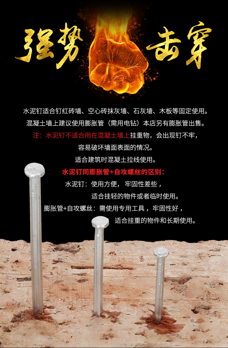 네일 작은 강철 손톱 미세 1.5 인치 세트 특수 에어컨 시멘트 네일 후크 목공 진흙 네일 해머 큰 머리 미세 손톱스토어 가기