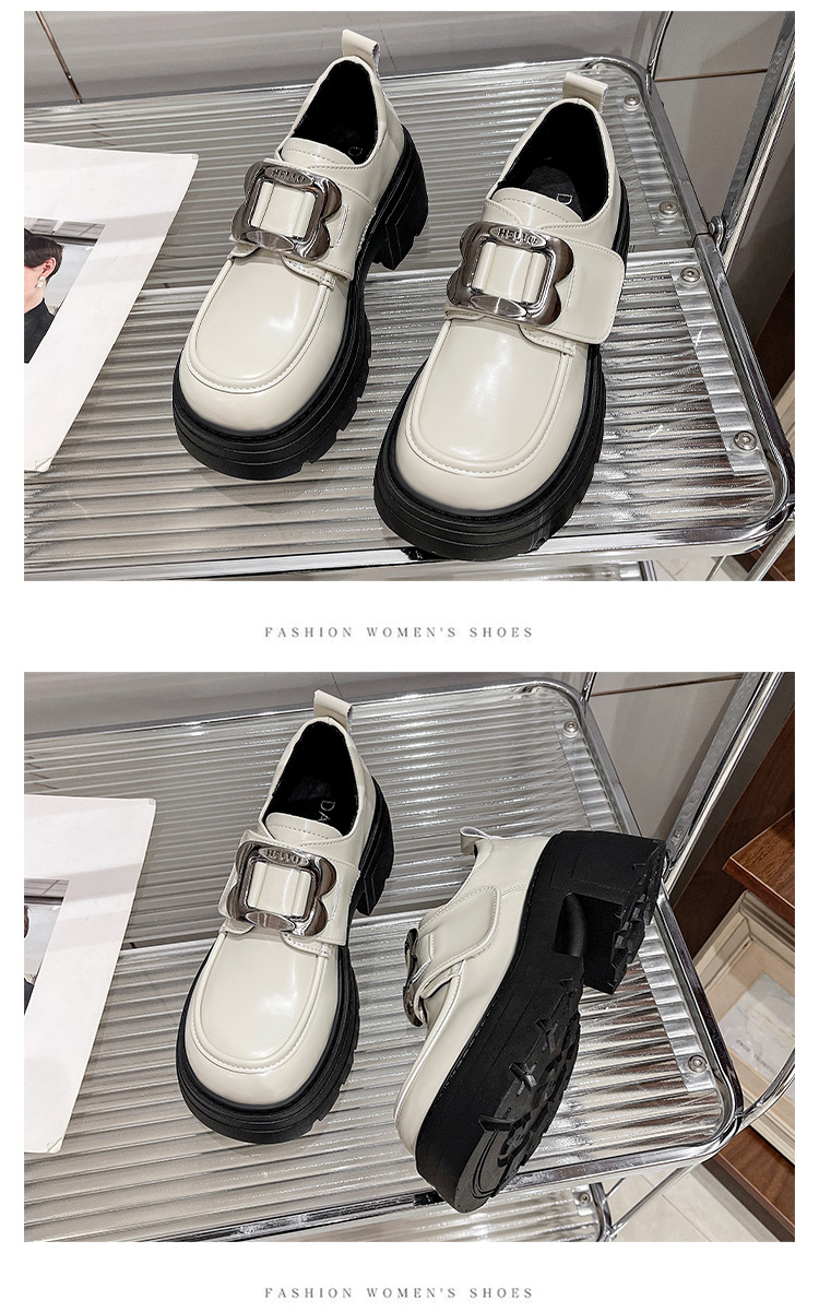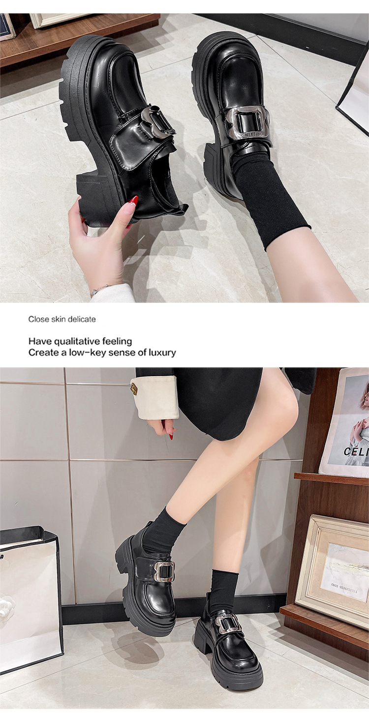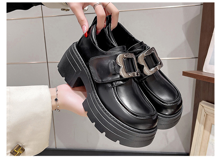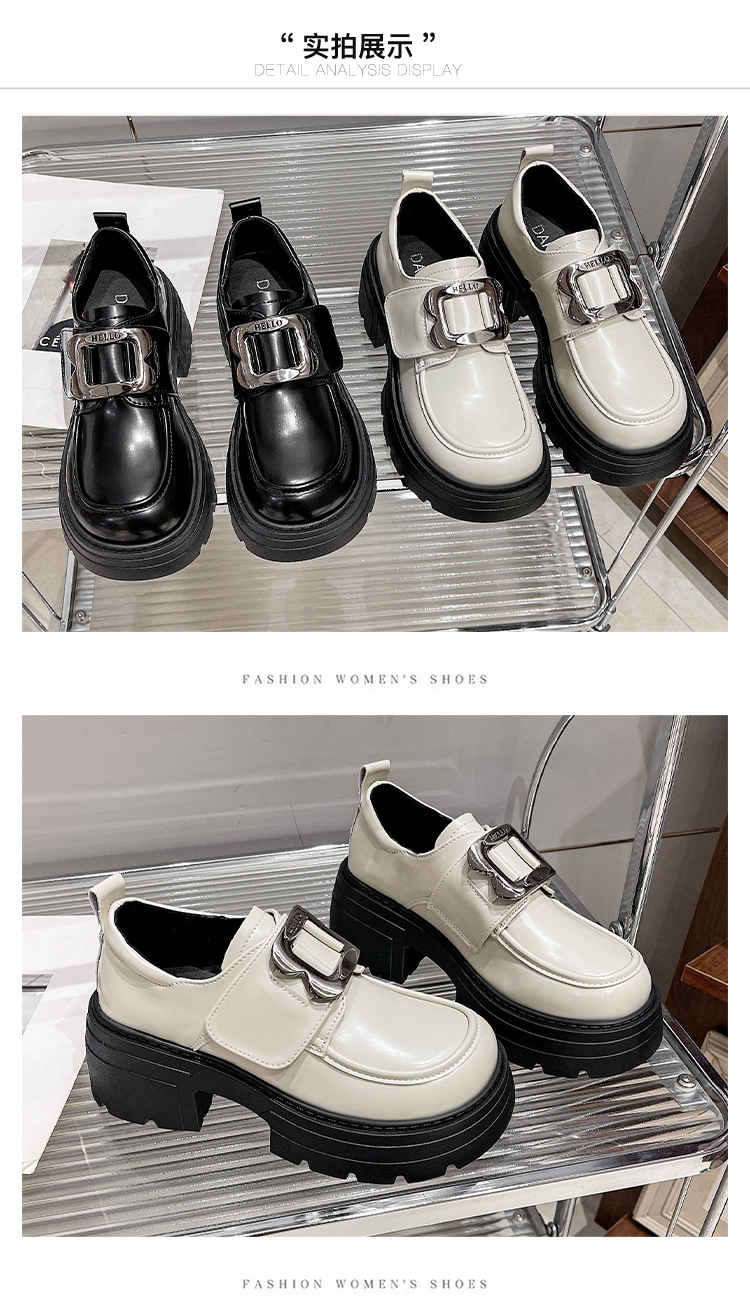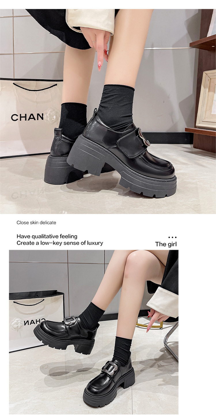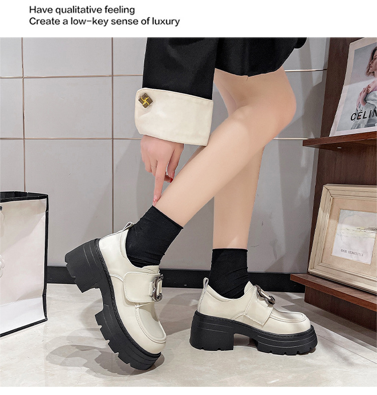 빈티지 영국 스타일 두꺼운 힐 두꺼운 바닥 가죽 신발 여성의 2025 새로운 봄과 가을 높이 증가 원피스 메리 제인 로퍼