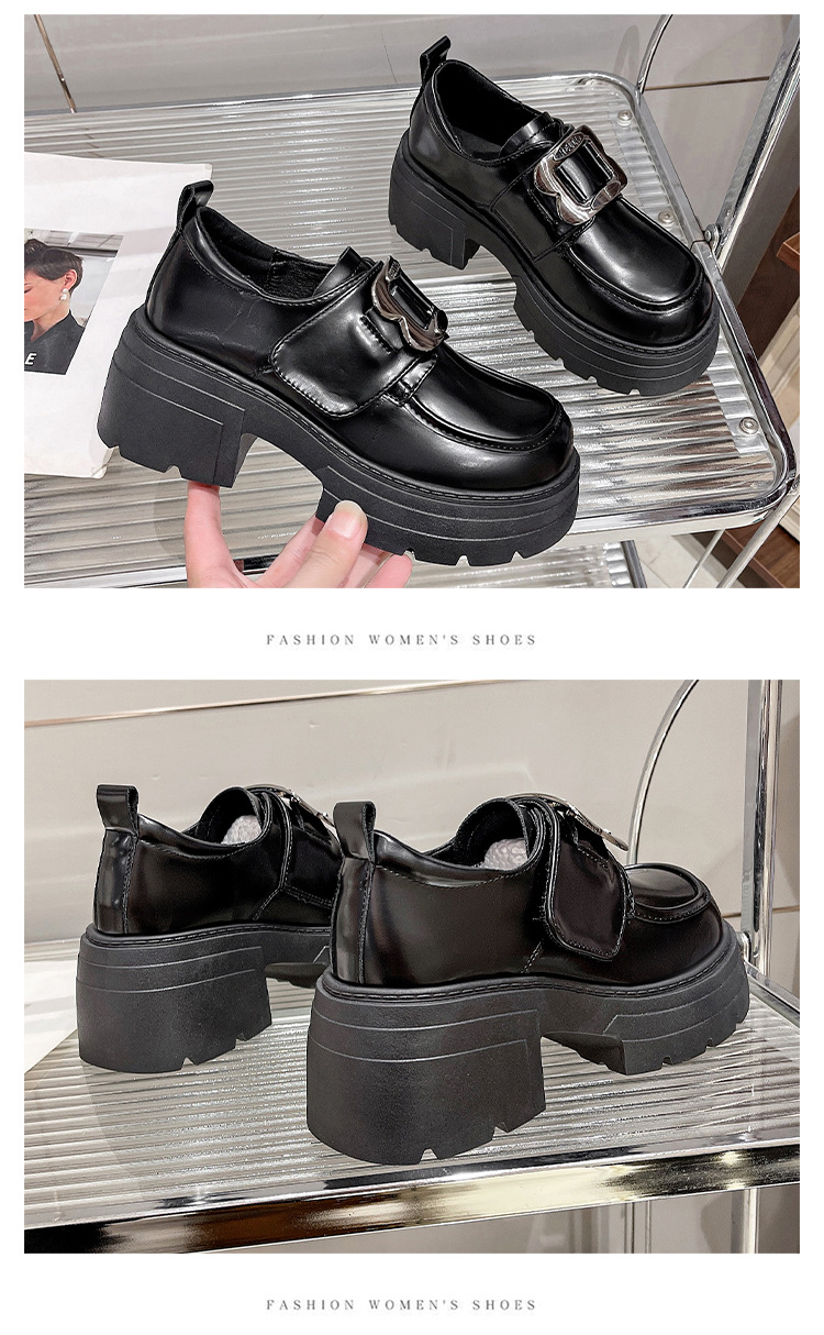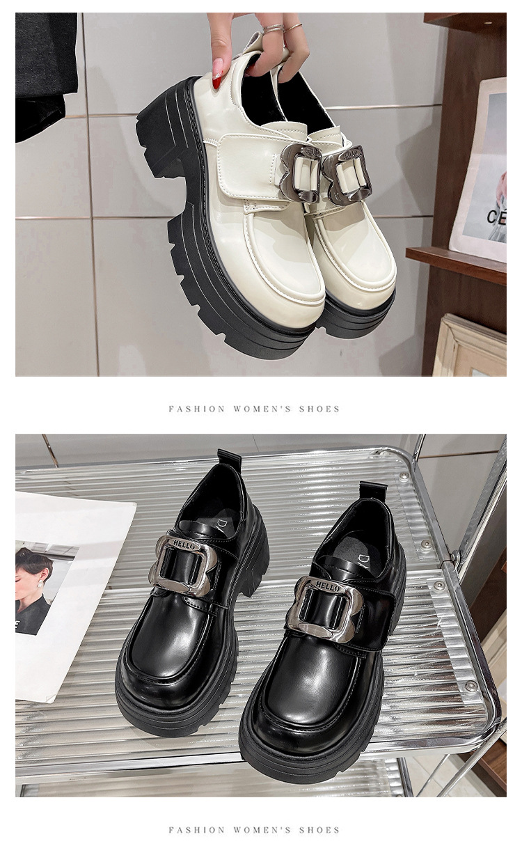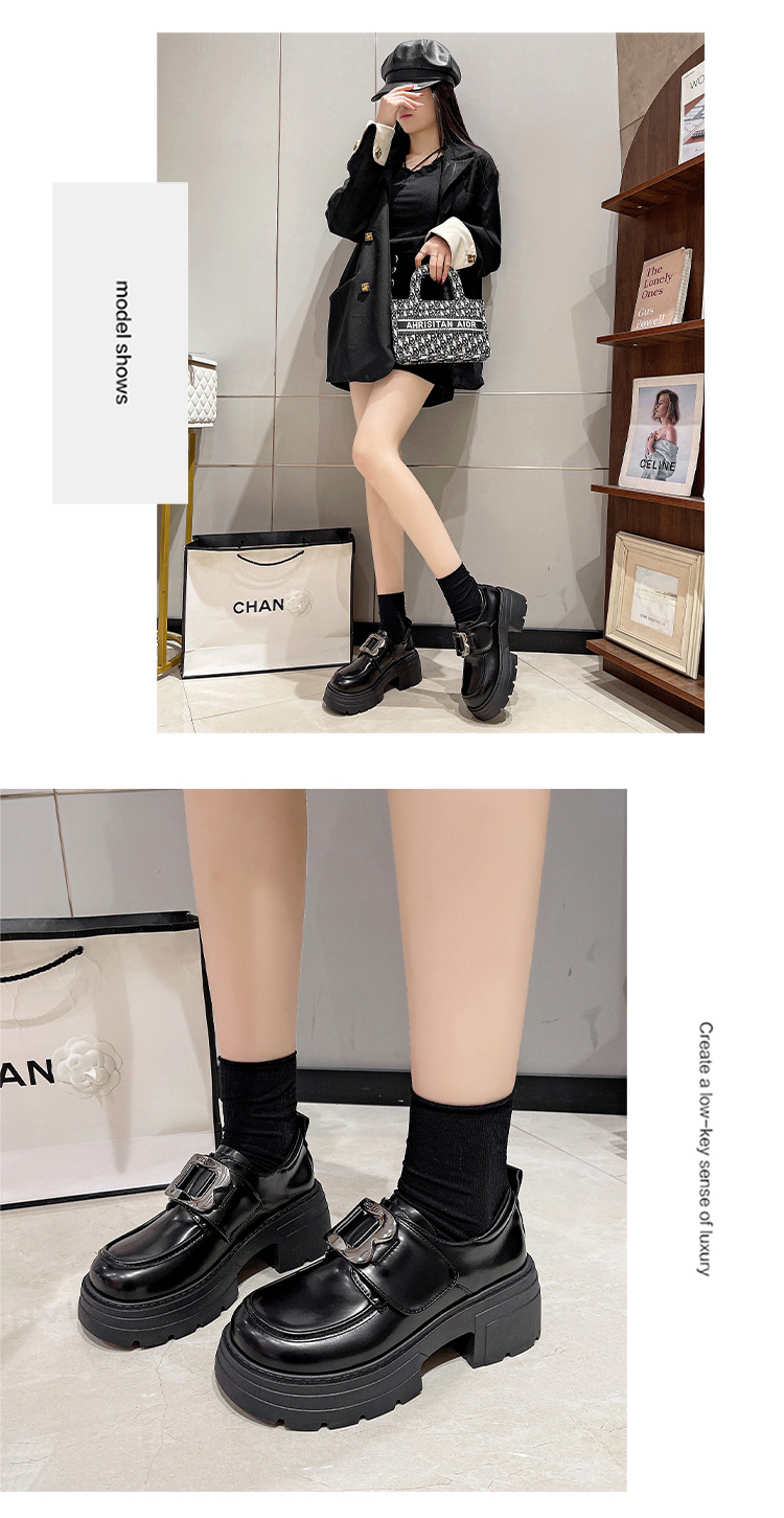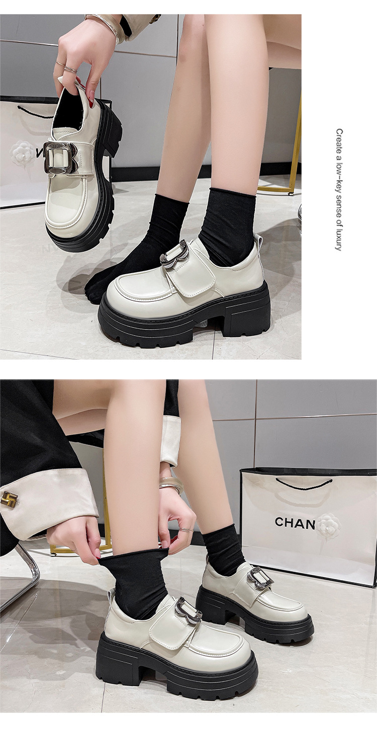 빈티지 영국 스타일 두꺼운 힐 두꺼운 바닥 가죽 신발 여성의 2025 새로운 봄과 가을 높이 증가 원피스 메리 제인 로퍼스토어 가기