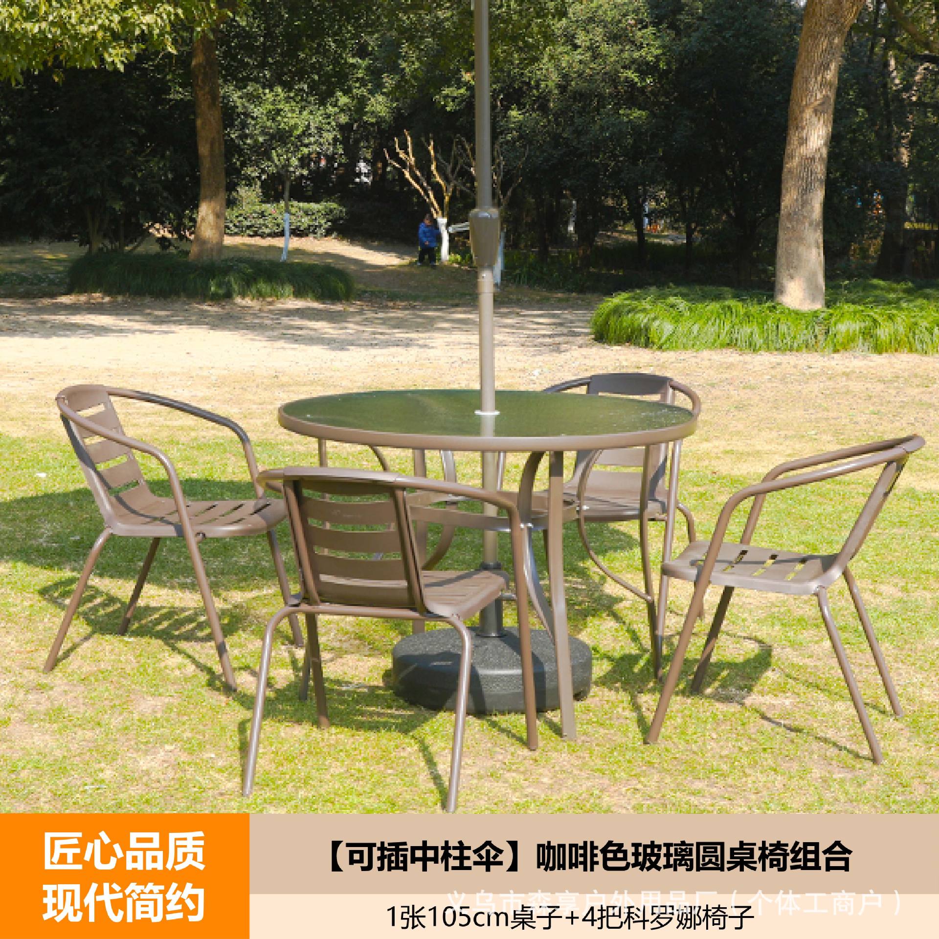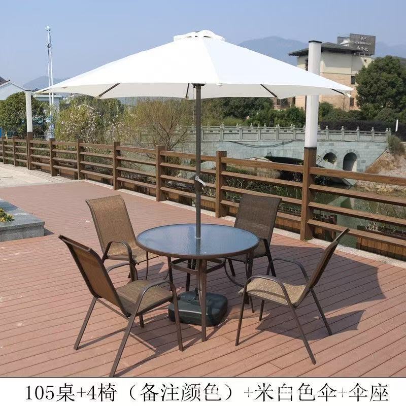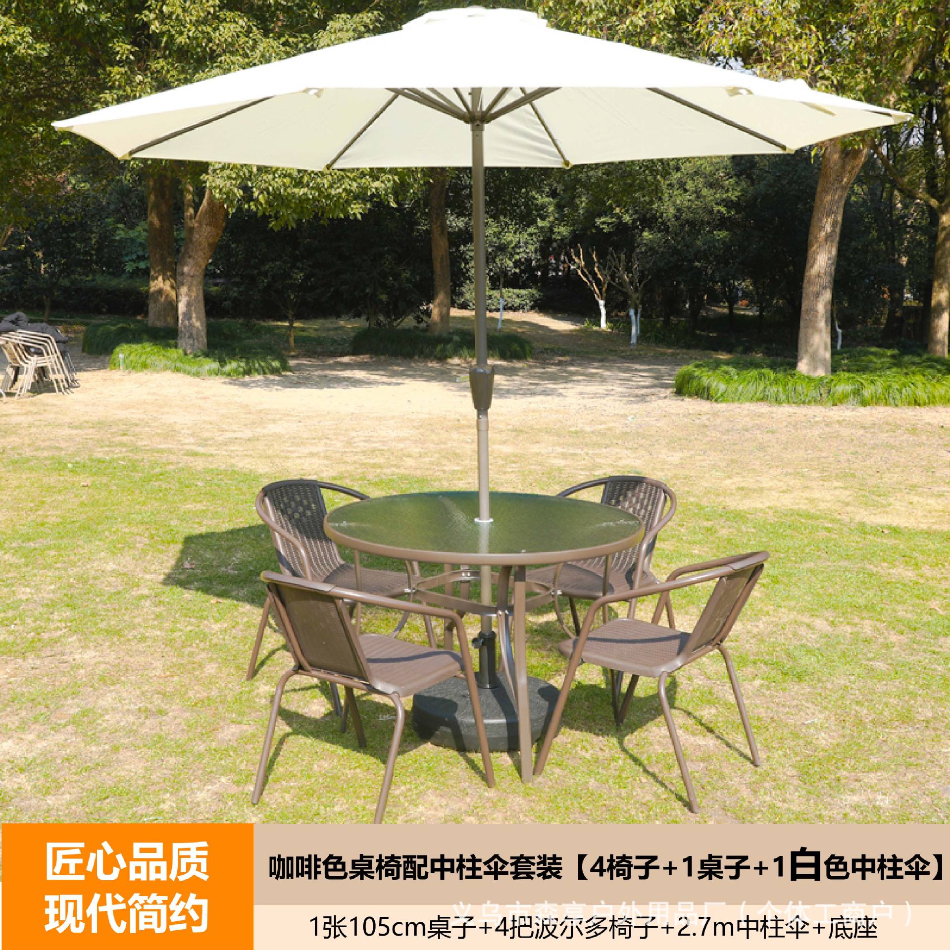 인기 있는 야외 안뜰 테이블과 의자 세트 방수 야외 정원 테이블과 의자(우산 조합 포함) 카페 외부 중앙 기둥 우산스토어 가기
